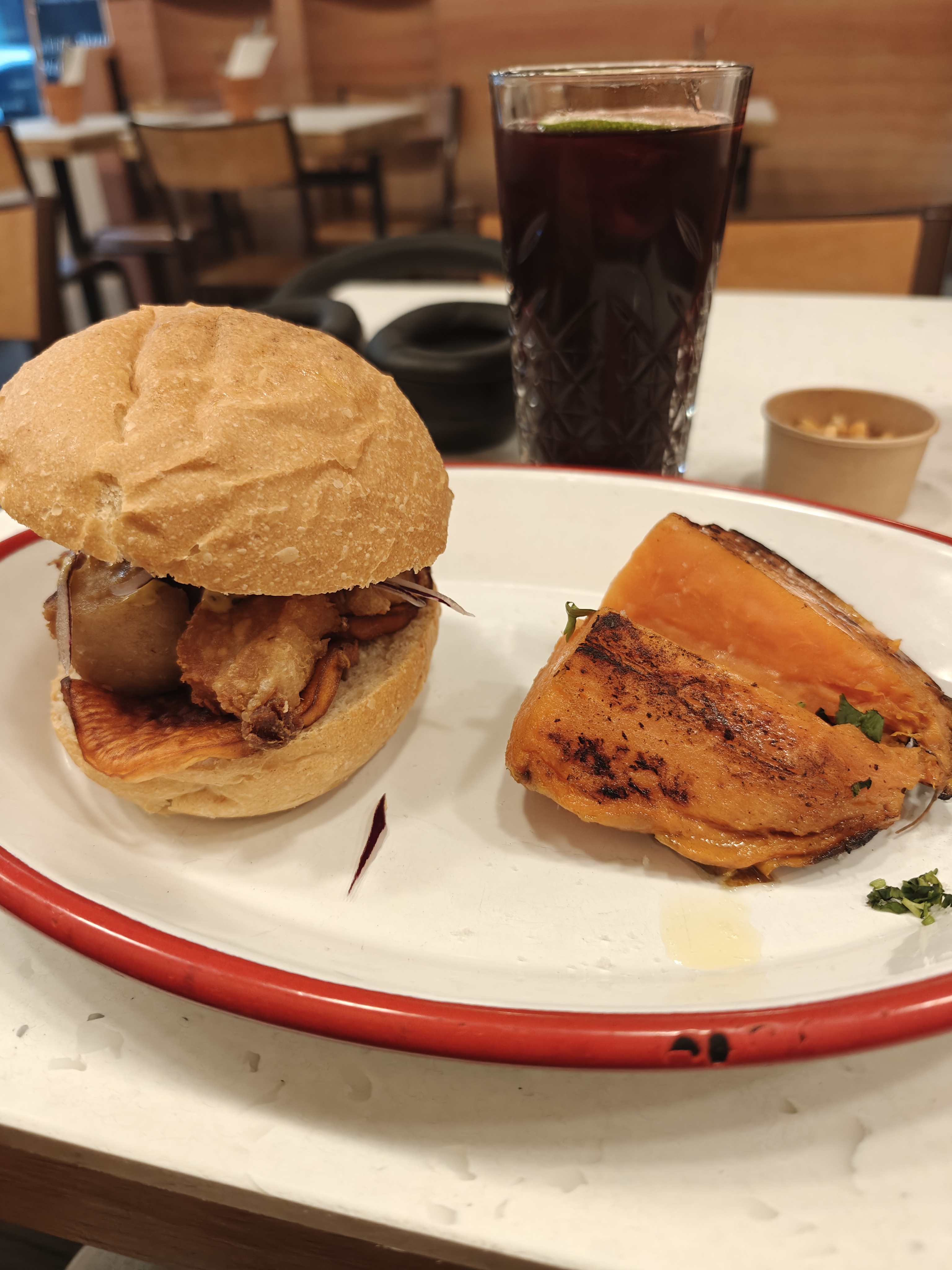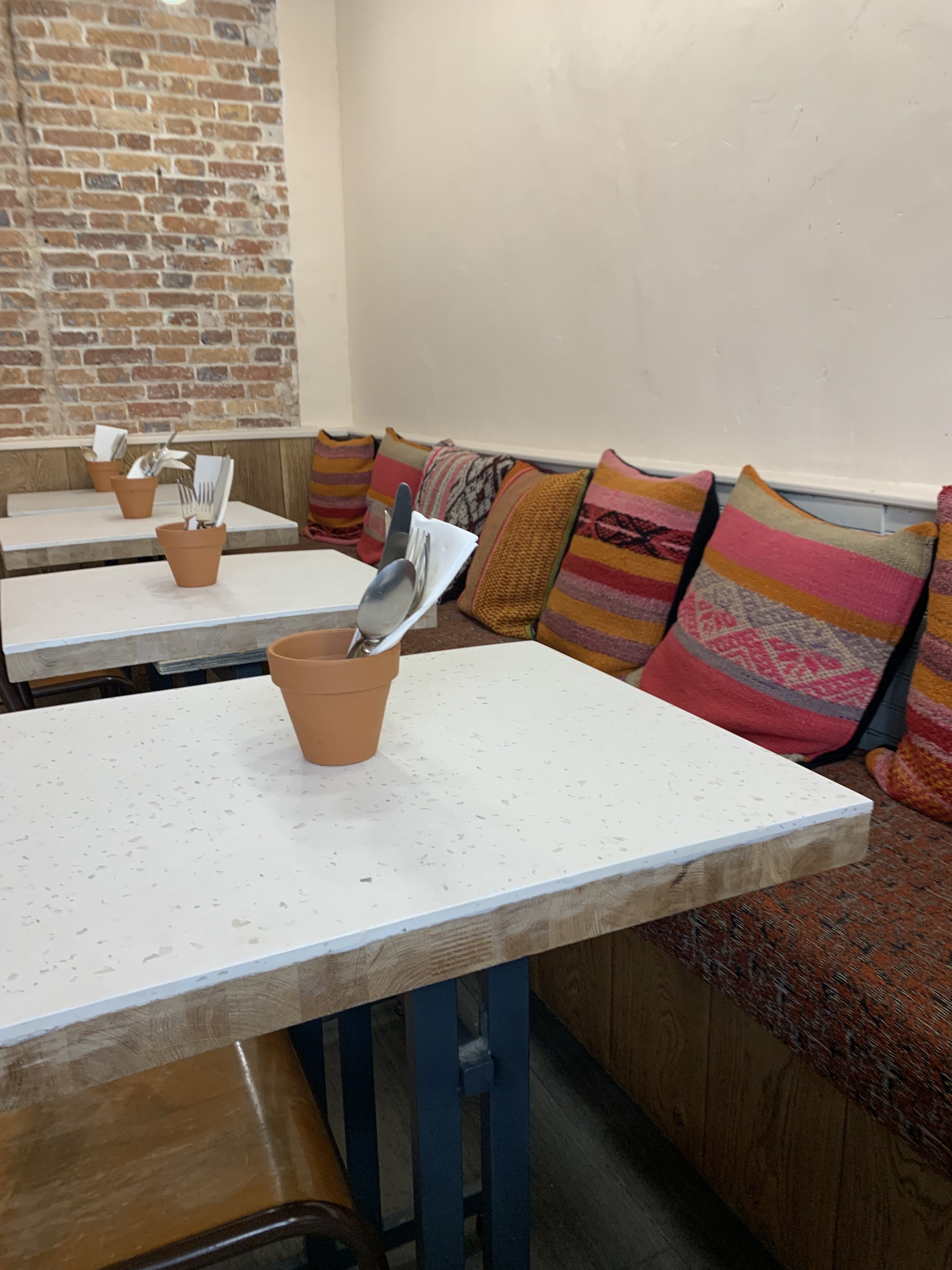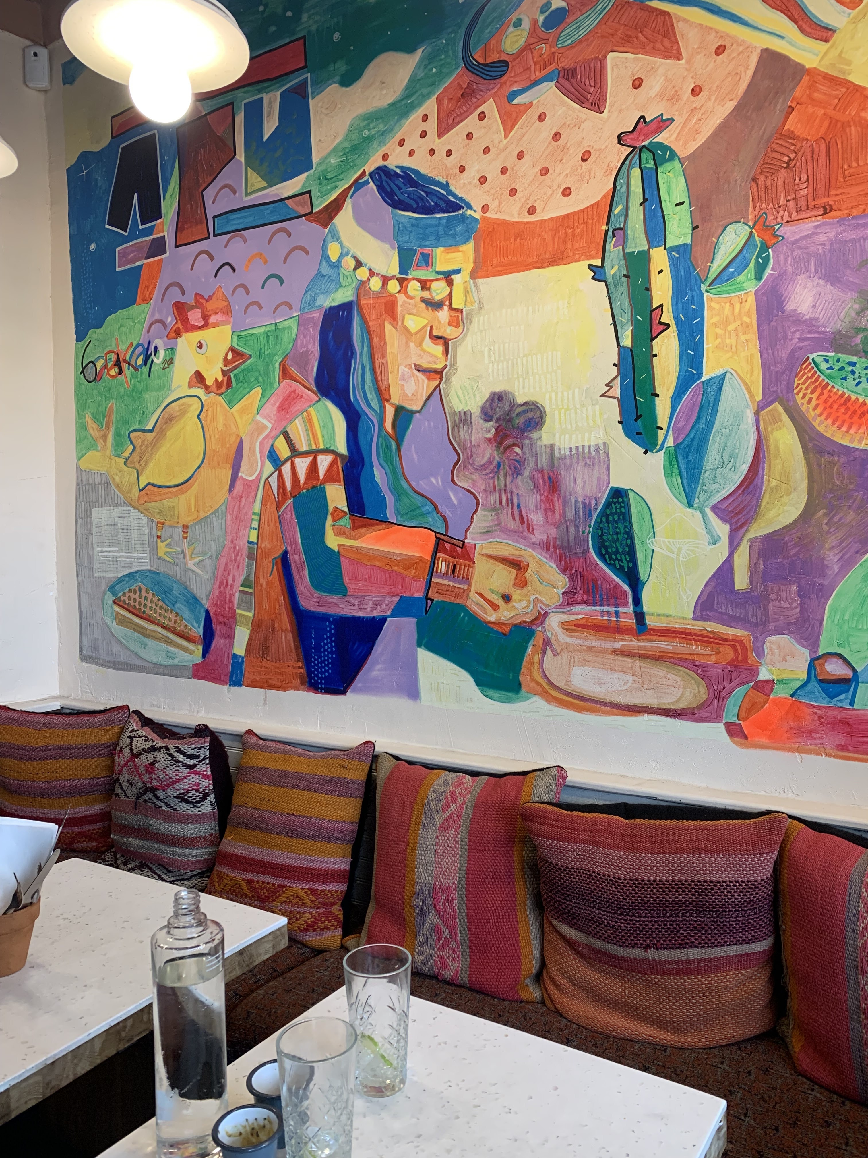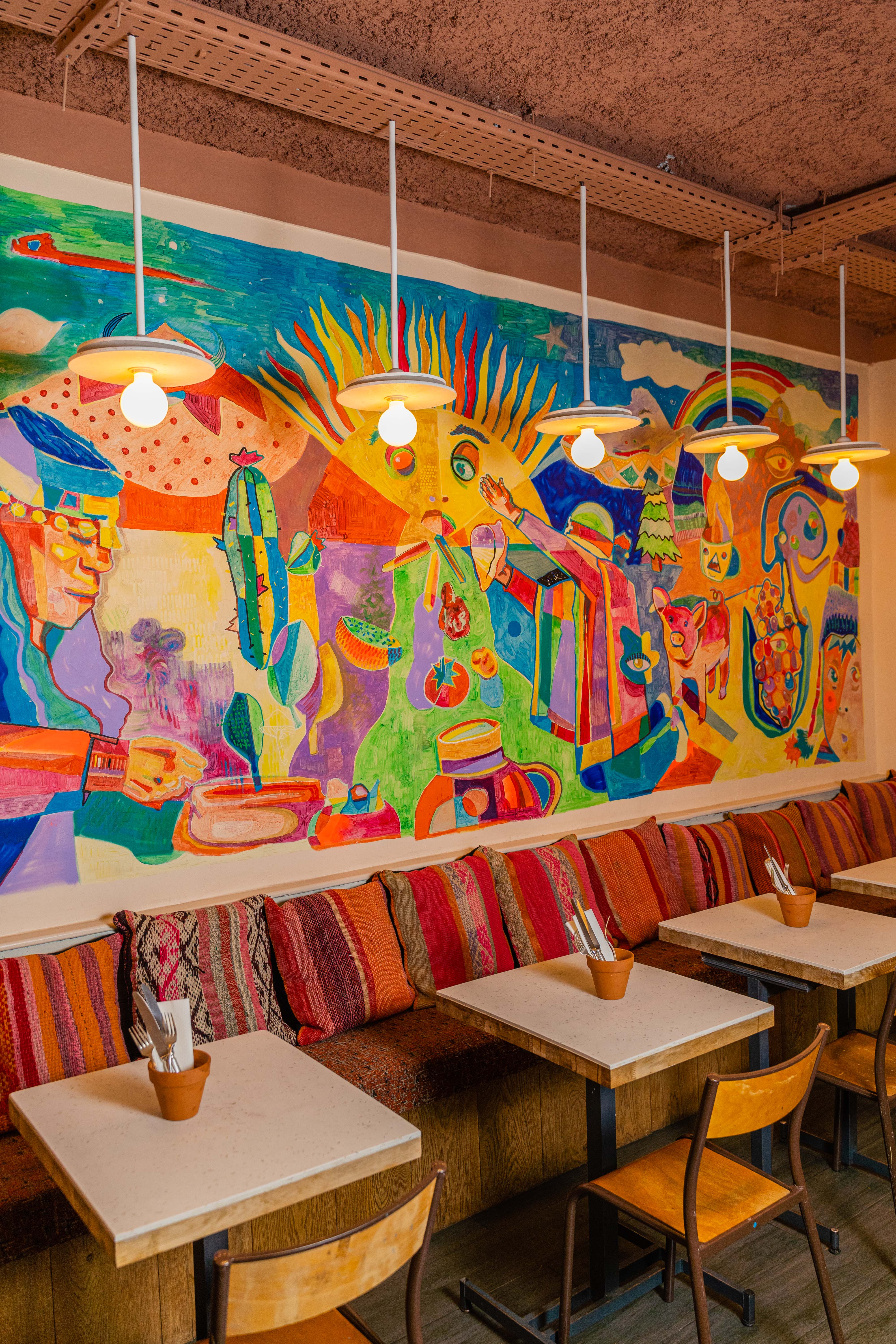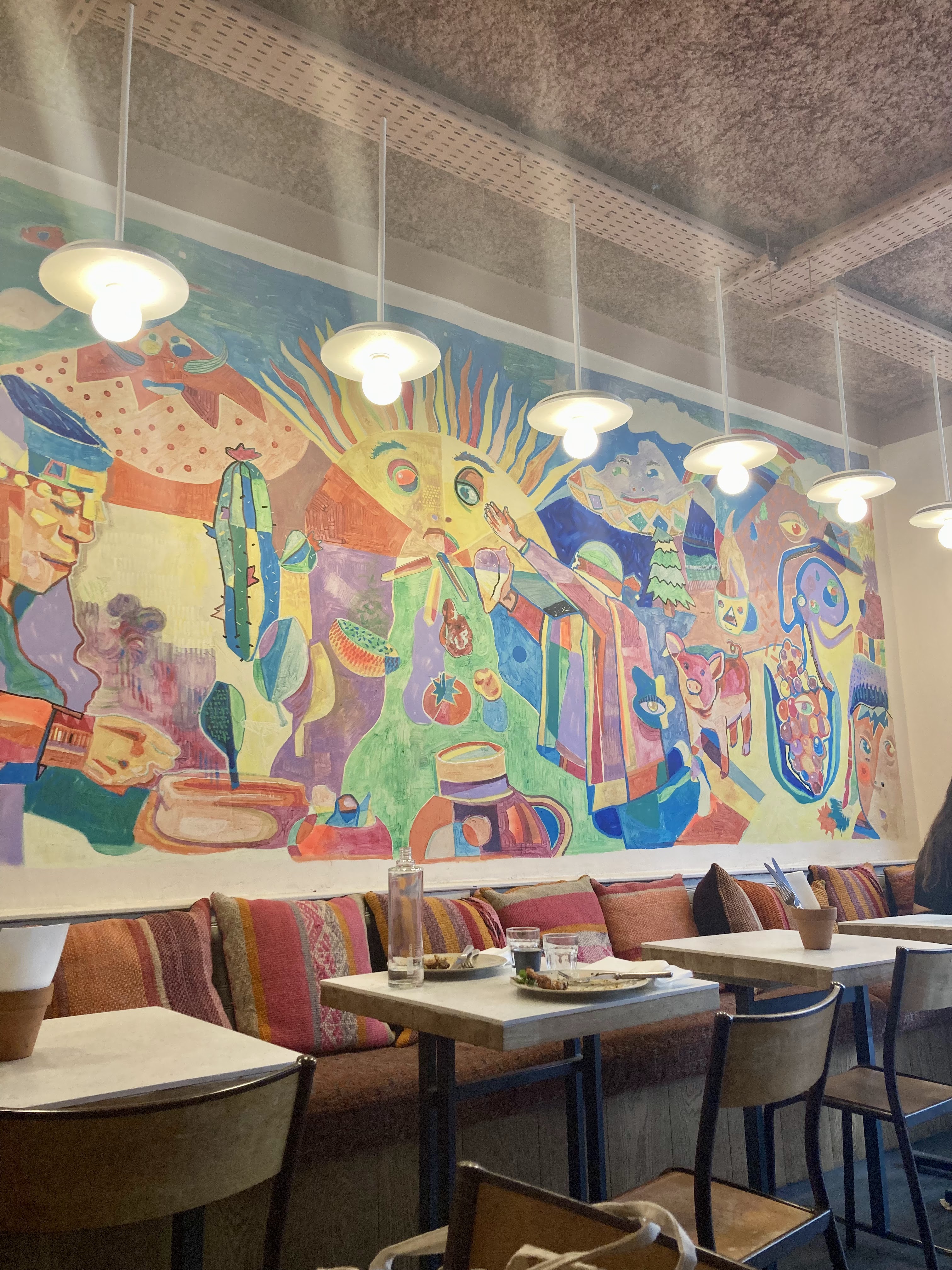Ambiance chaleureuse avec fond musical latino + déco au top (on se croirait presque au Pérou). Sanguche végé excellent. Service au top, rien à redire, je recommande !