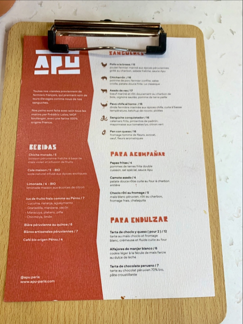 Je reccomande vraiment le sanguche chicharron. Je reviendrai surement chez Apu decouvrir le reste de la carte.