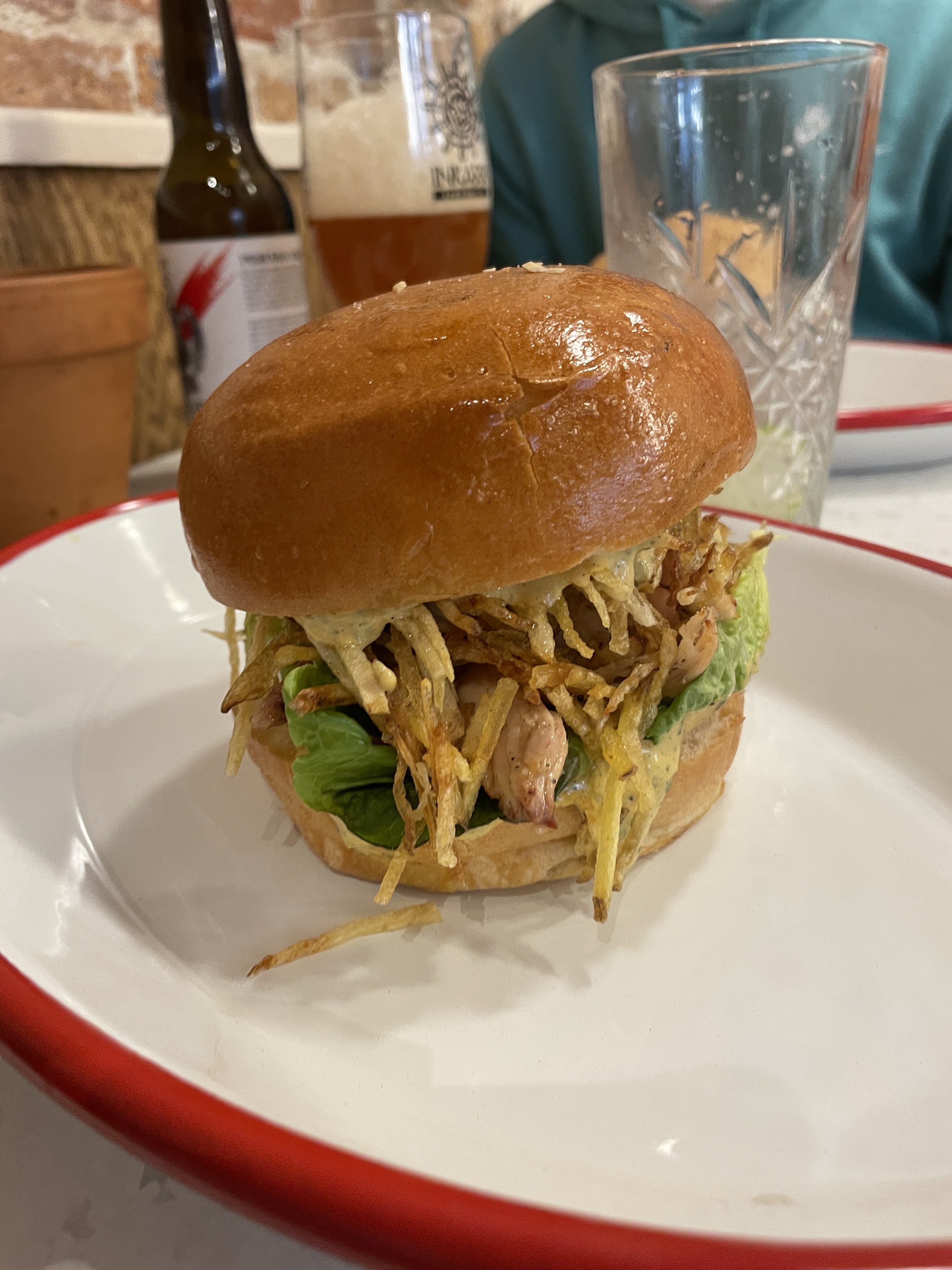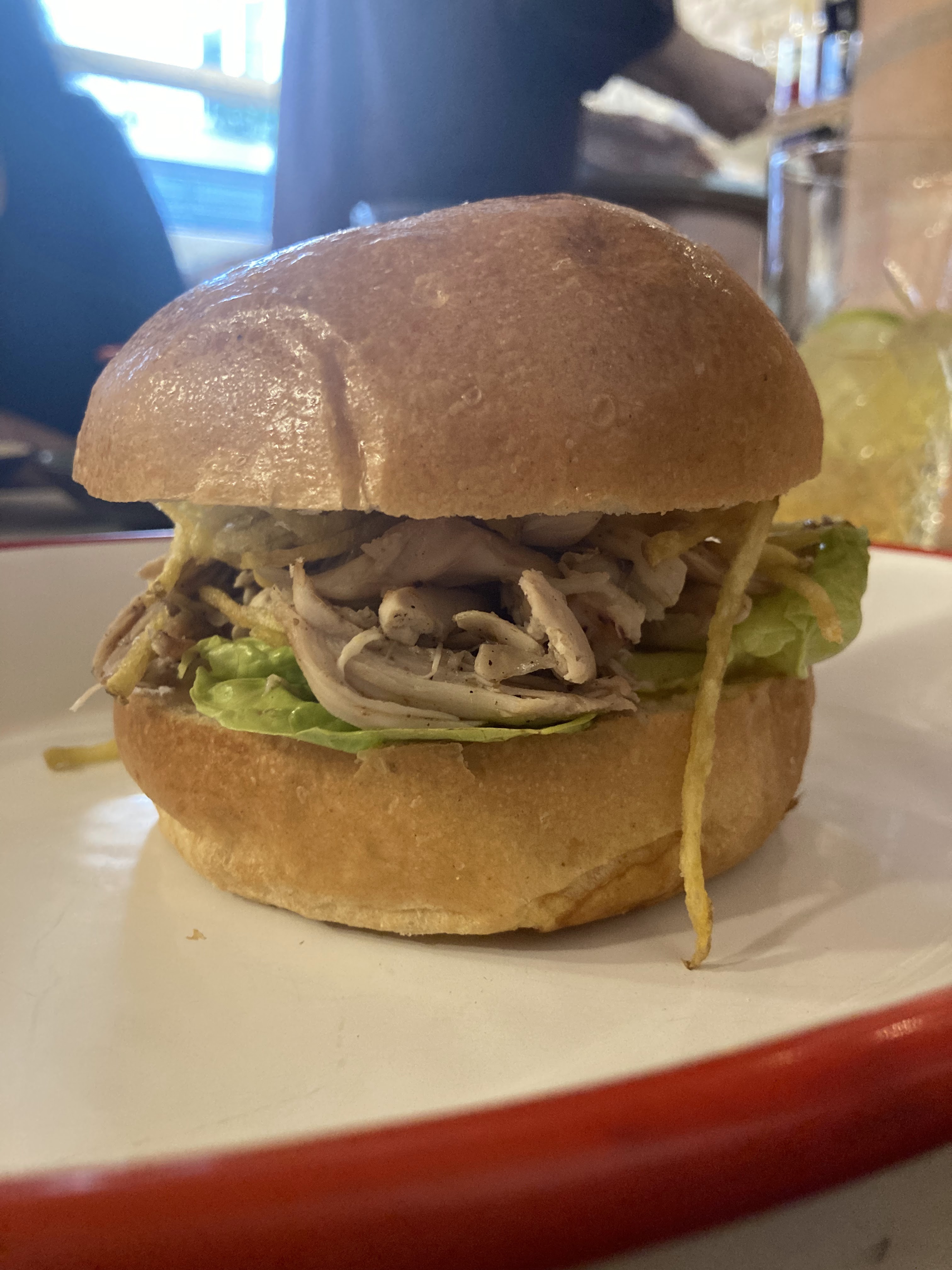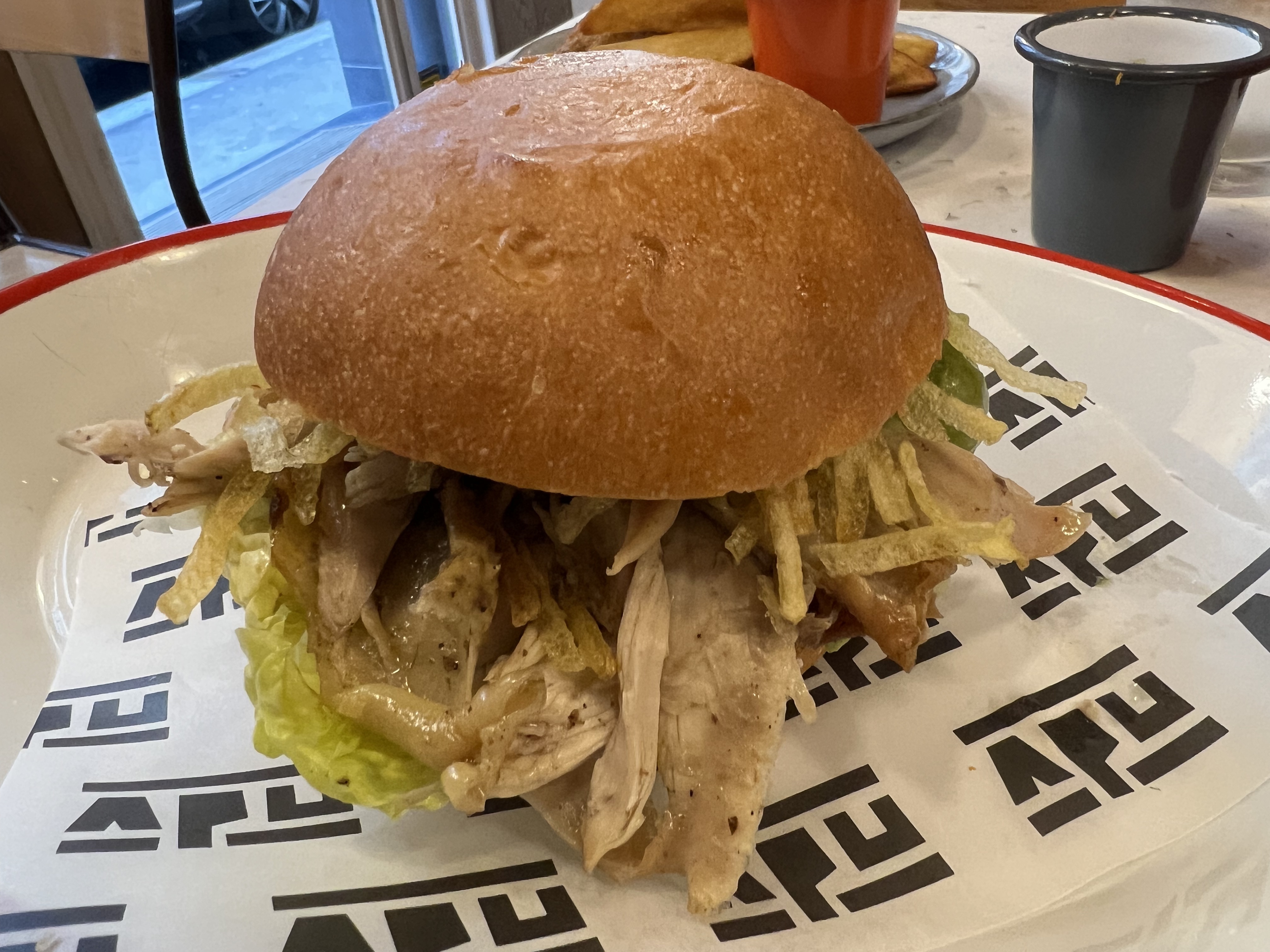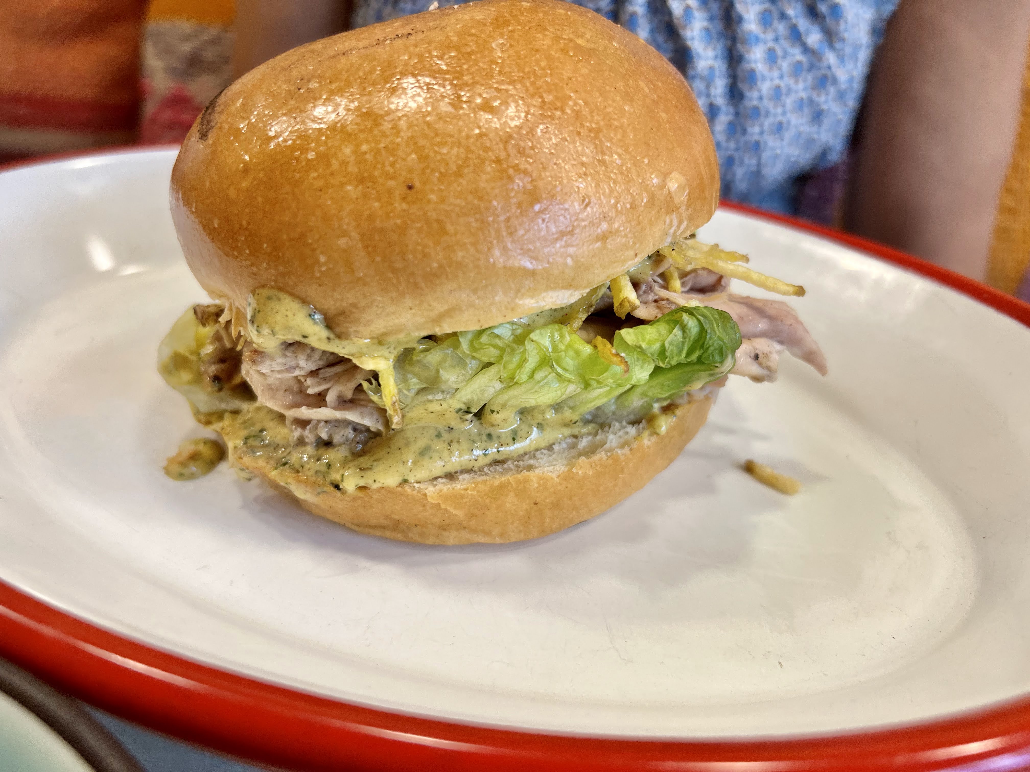 Un sandwich au poulet absolument exceptionnel, une viande tendre, une sauce délicieuse, un pain brioché moelleux et croquant ! Un régal !