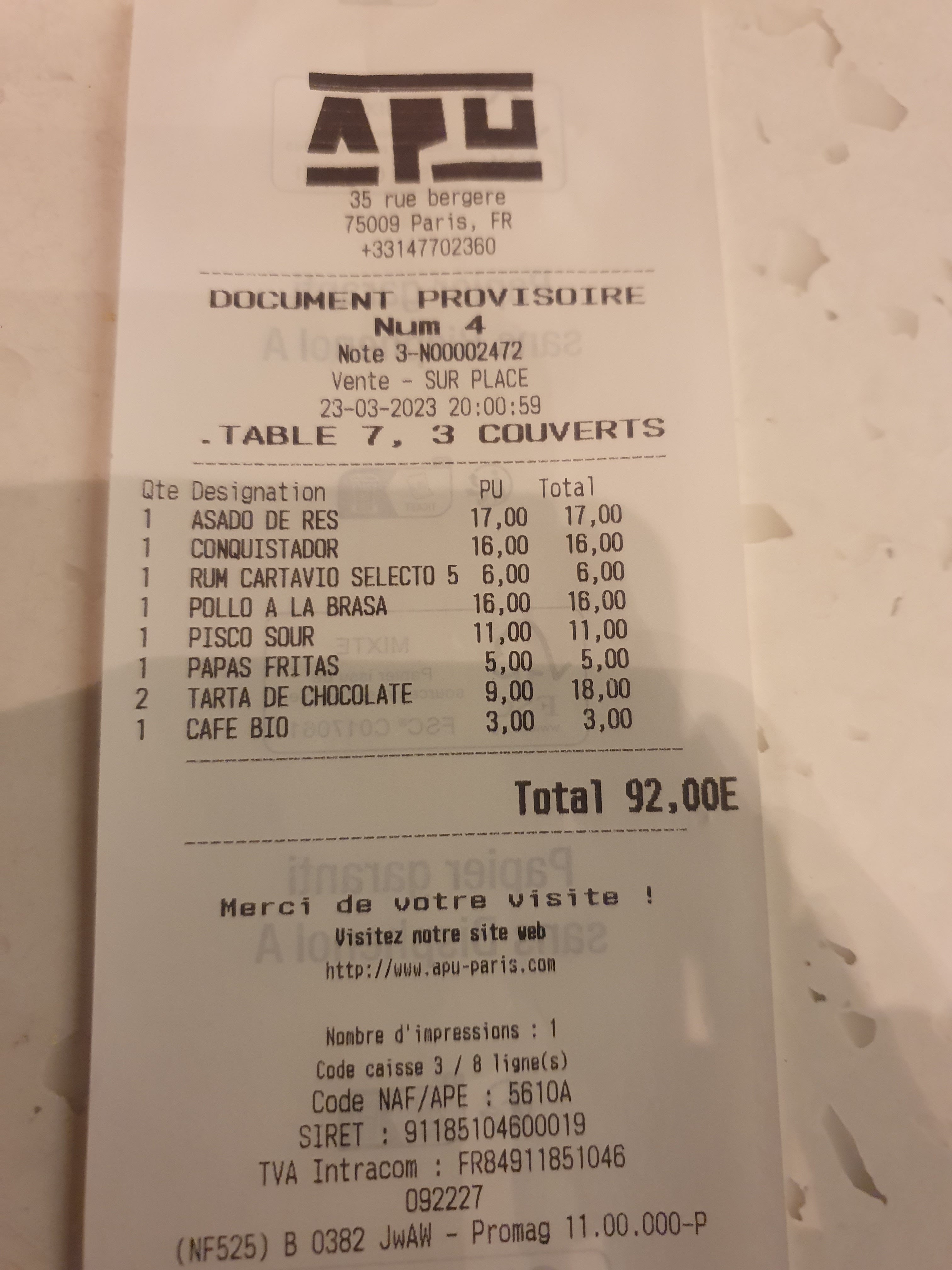 Hello Alexia, Muchas Gracias pour cette super note que vous venez de nous attribuer ! On est très heureux d'avoir été à vos côtés pour ce super moment. On espère vous revoir très vite près des Grands Boulevards à Paris 9. La team APU Sangucheria Peruana - peruvian restaurant