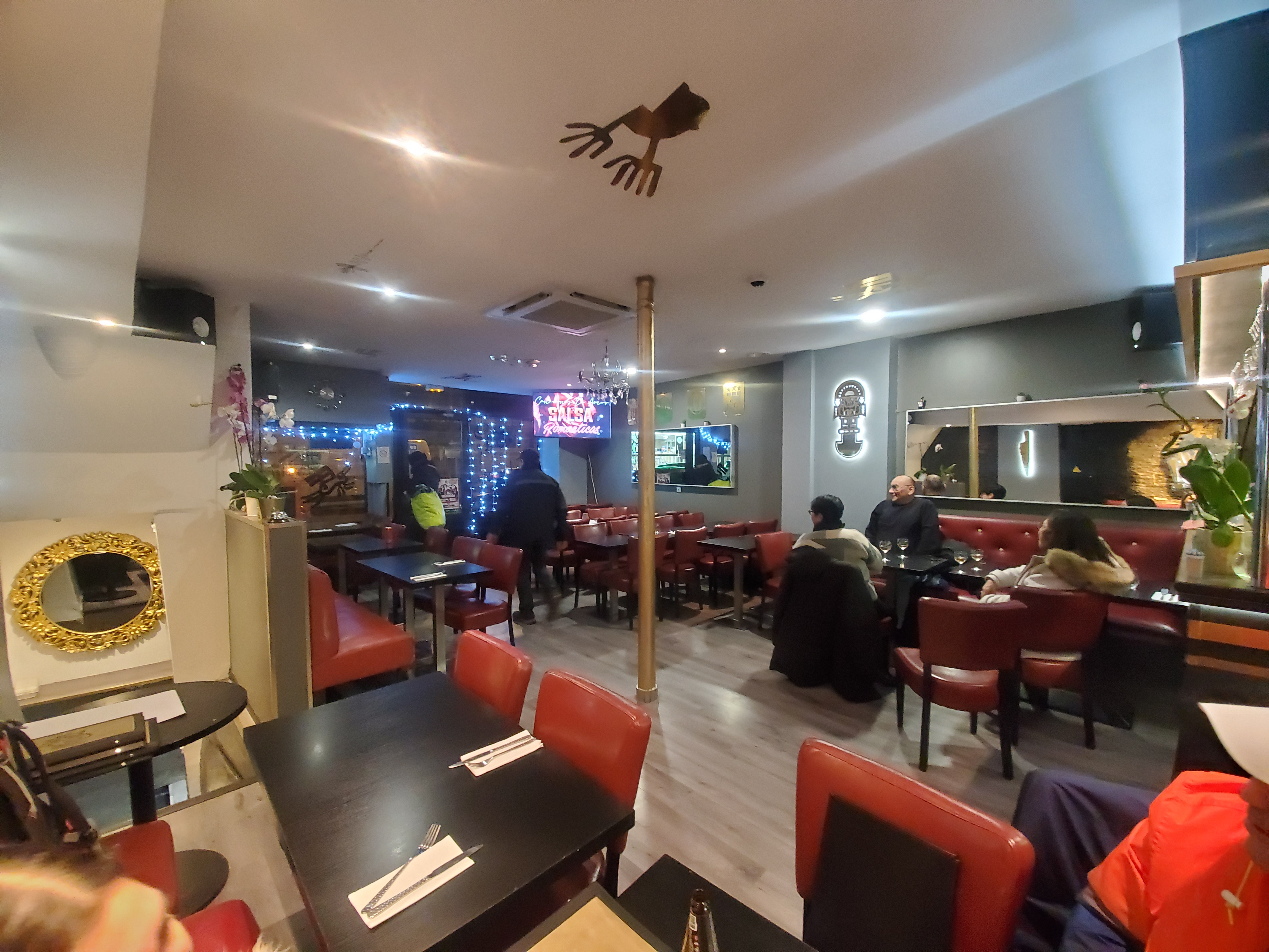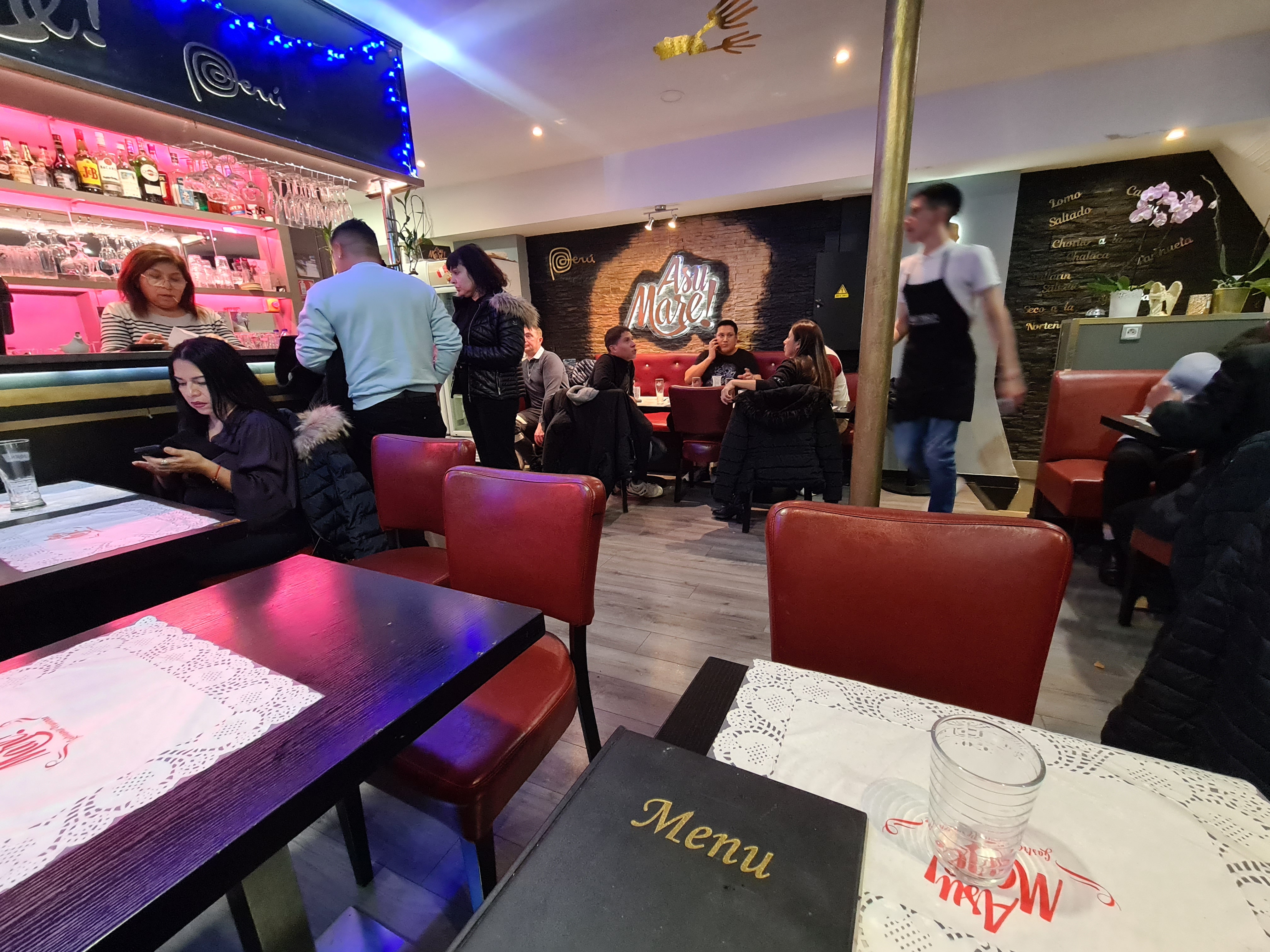 Nous avons été très bien accueilli 👍 j’ai demandé un ají de gallina et on a accepté très gentiment de me le préparer alors que ce plat n’est même pas sûr la carte. Pour ce qui est du bruit cela ne nous a pas dérangé car nous avons eu l’impression d’être au Pérou 🇵🇪 avec la musique latino ainsi que son ambiance avec des clients parlant péruvien et une petit fille qui s’amusait dans le restaurant. 😉 Nous avons pu emporter nos plats que nous n’avions pas pu finir car très copieux 👌 ce qui est très appréciable. Nous avons aimé la décoration et même les couverts. Pour ce qui est du prix nous sommes heureux de contribuer à faire travailler les commerces Péruviens en France 🇫🇷 par solidarité.