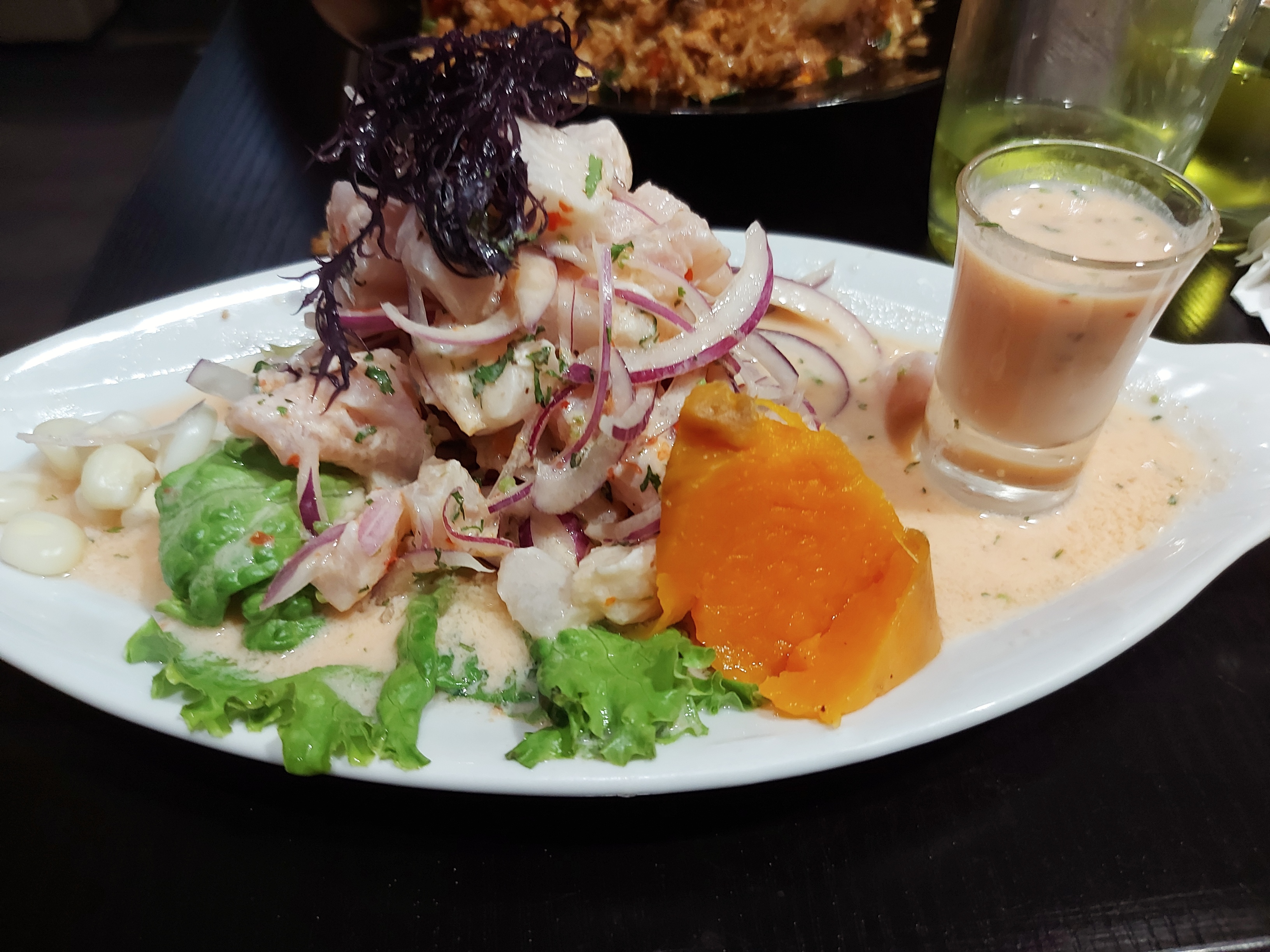 Trop bon j’ai goûté leche de tigre y el pollo a la brasa y pisco. Le service excellent et bon ambiance.