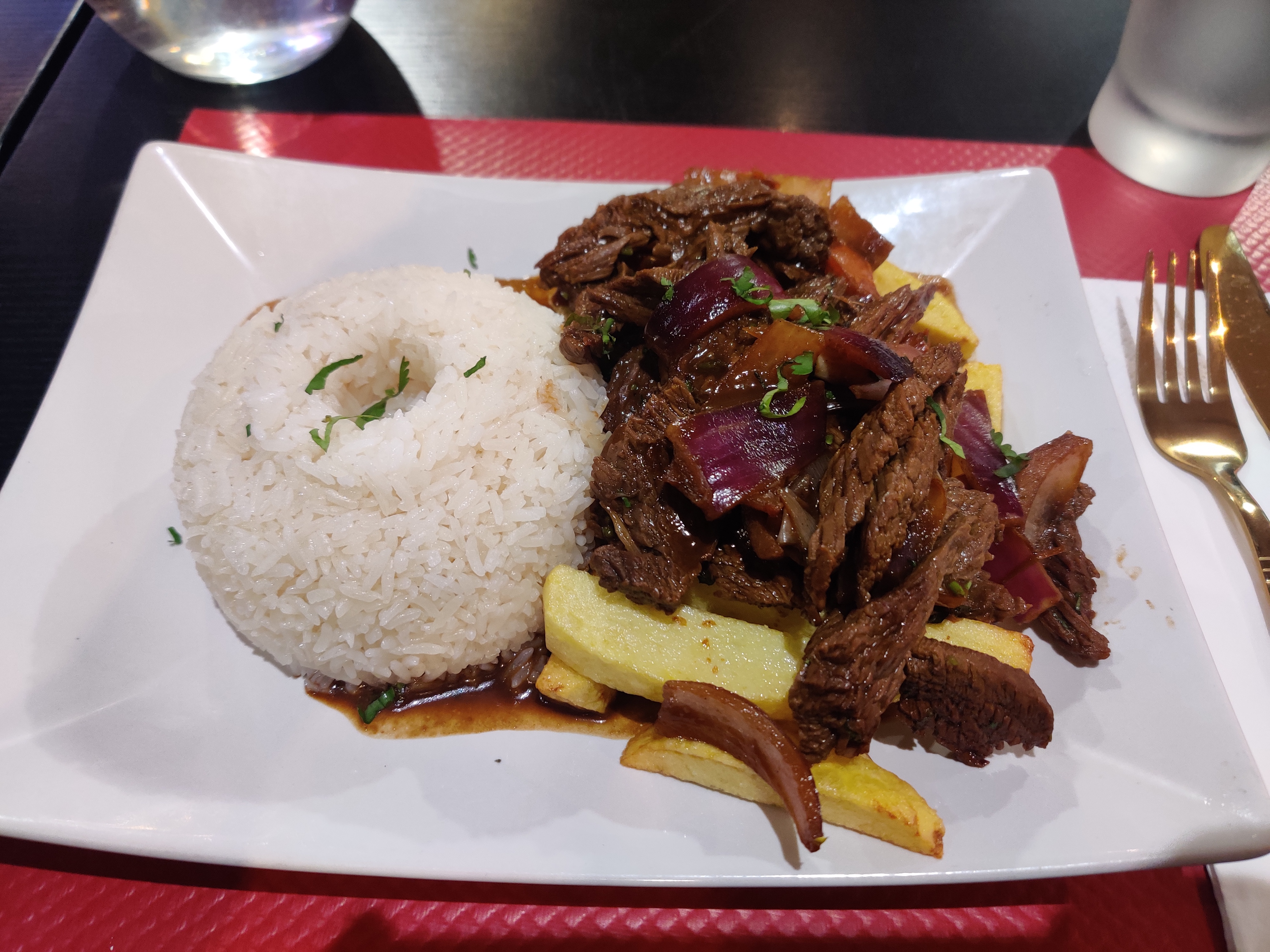 Le lomo saltado était mal préparé, la viande était trop cuite et la saveur était étrange. Le reste était bon.