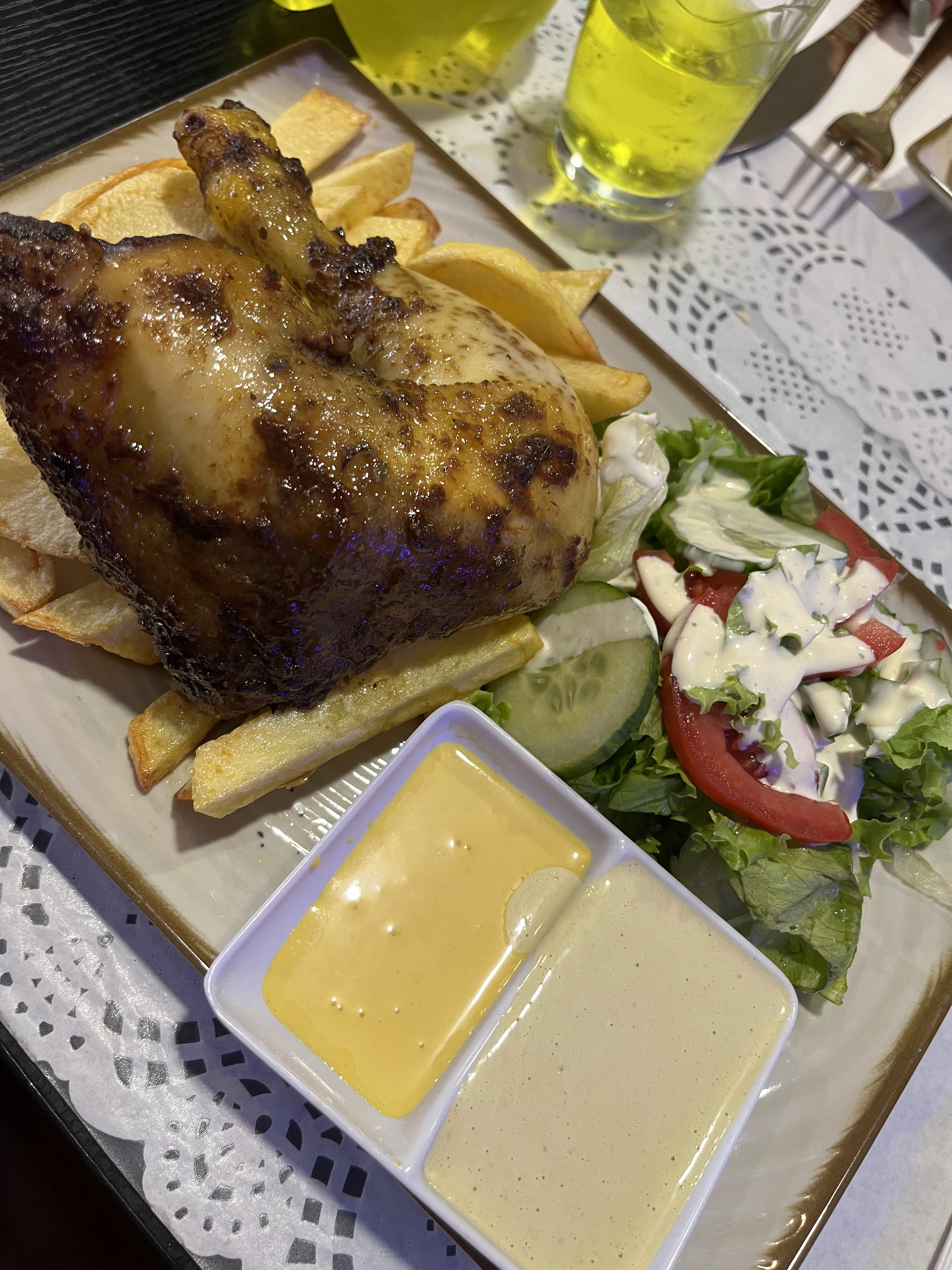 Délicieux !!!! Un poulet grillé comme au Pérou ! Une attention super sympathique, des prix corrects pour les envies de nourriture péruvienne !!! Je le recommande totalement :)