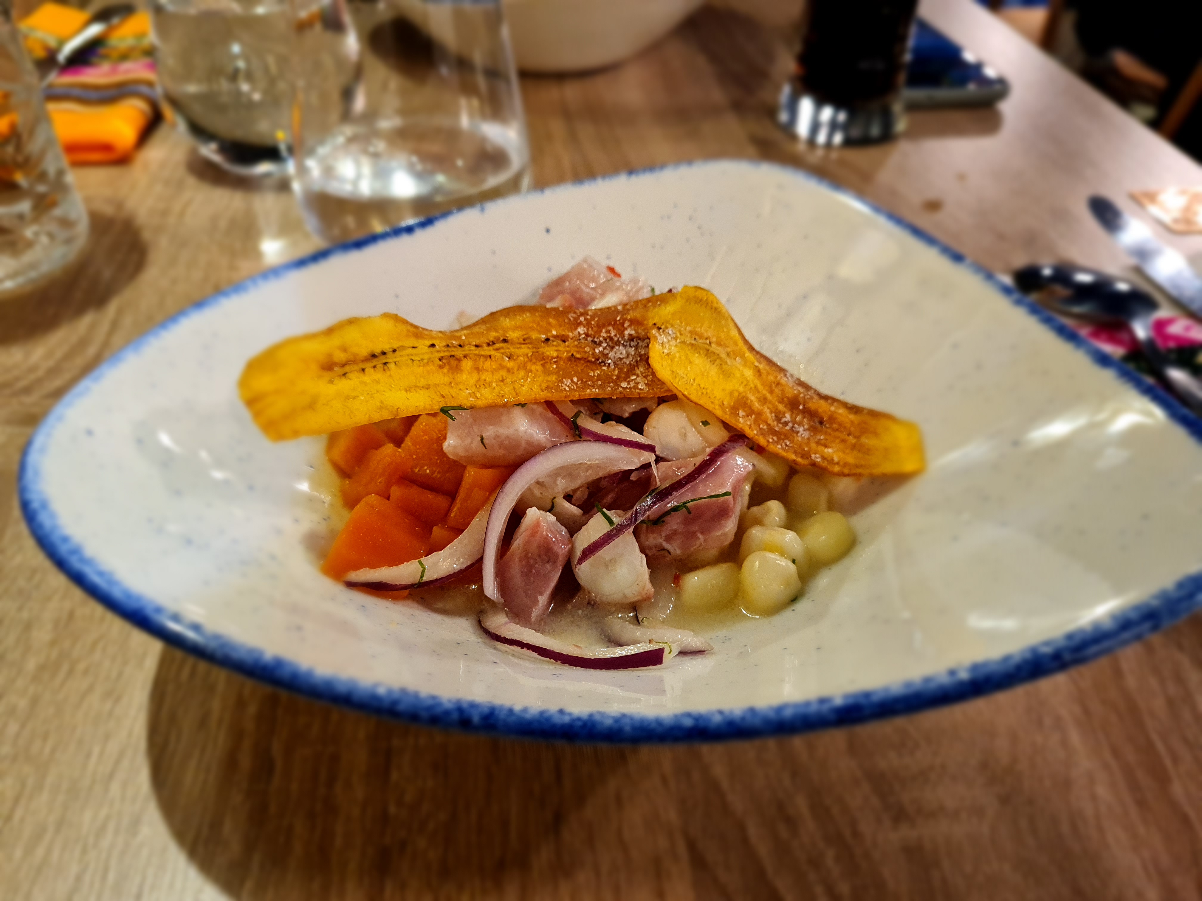 Magnifique ! On a pu tester les deux recettes de ceviche (thon, et poulpe/poisson blanc) : la texture du poisson est bien ferme, la sauce est très équilibrée, ni trop acide ni trop épicée. Ne vous fiez pas aux photos : le contenu des assiettes semble petit, mais en prenant le temps de déguster : ca cale bien. Pour les gros mangeurs, je conseille d'accompagner avec les frites. Elles n'ont rien d'exeptionnelles, mais ils servent ca avec une très bonne sauce tartare. Niveau boisson : les bières proposées sont bien brassées au Pérou, et niveau sans alcool, la Chicha morada est super bonne. Niveau prix : c'est un peu élevé certes, mais amplement justifié par la fraicheur des produits et le goût.