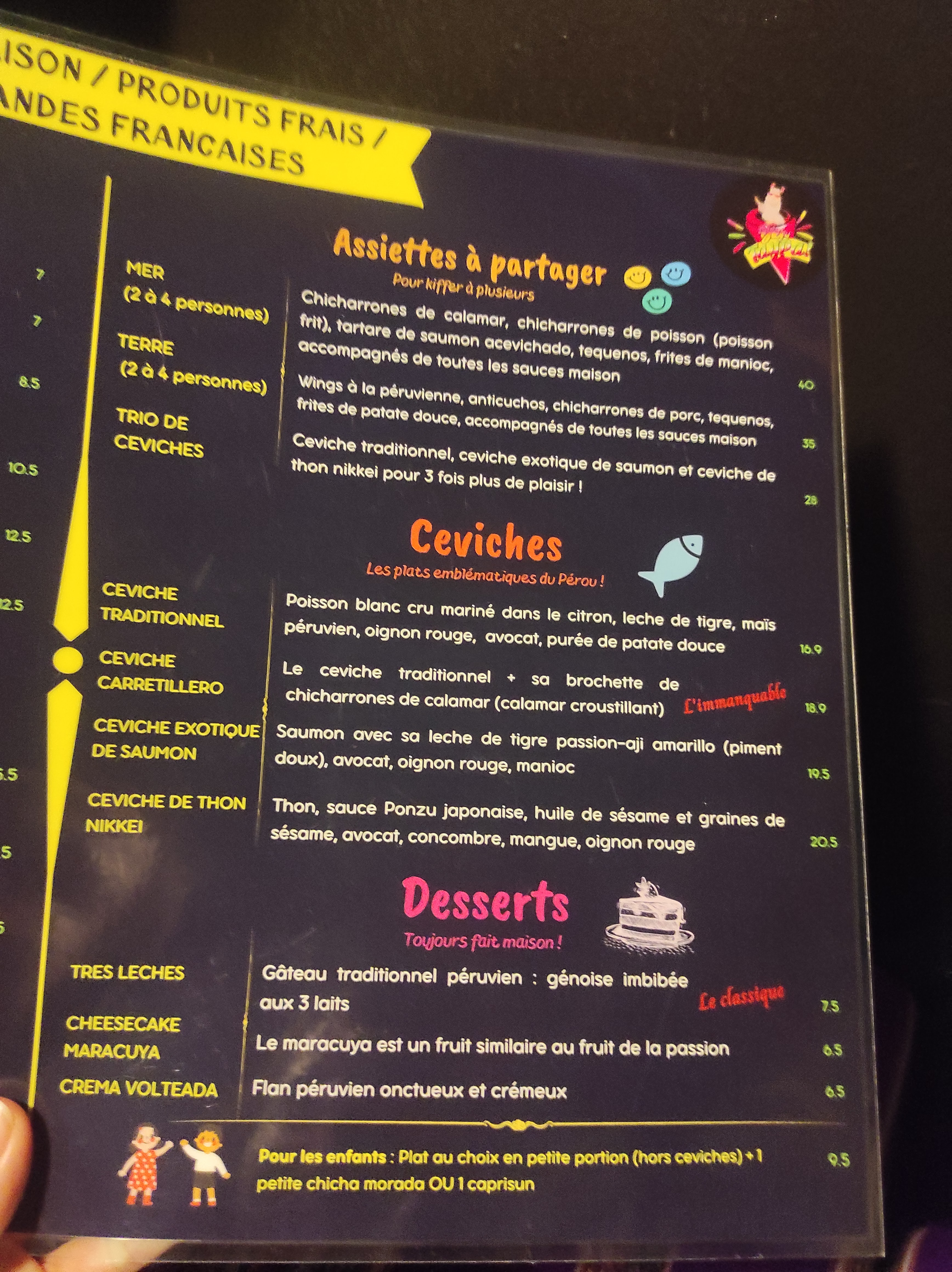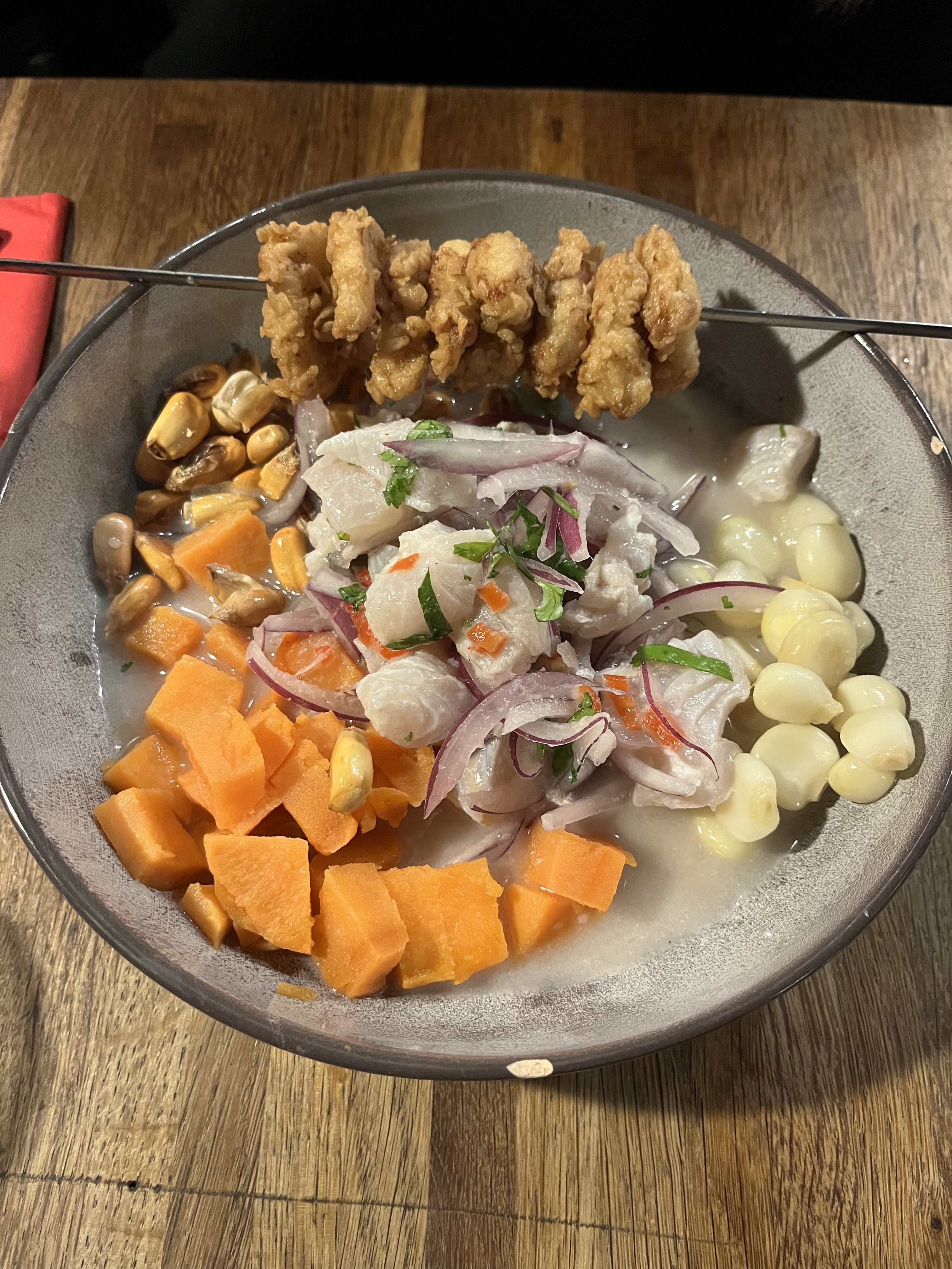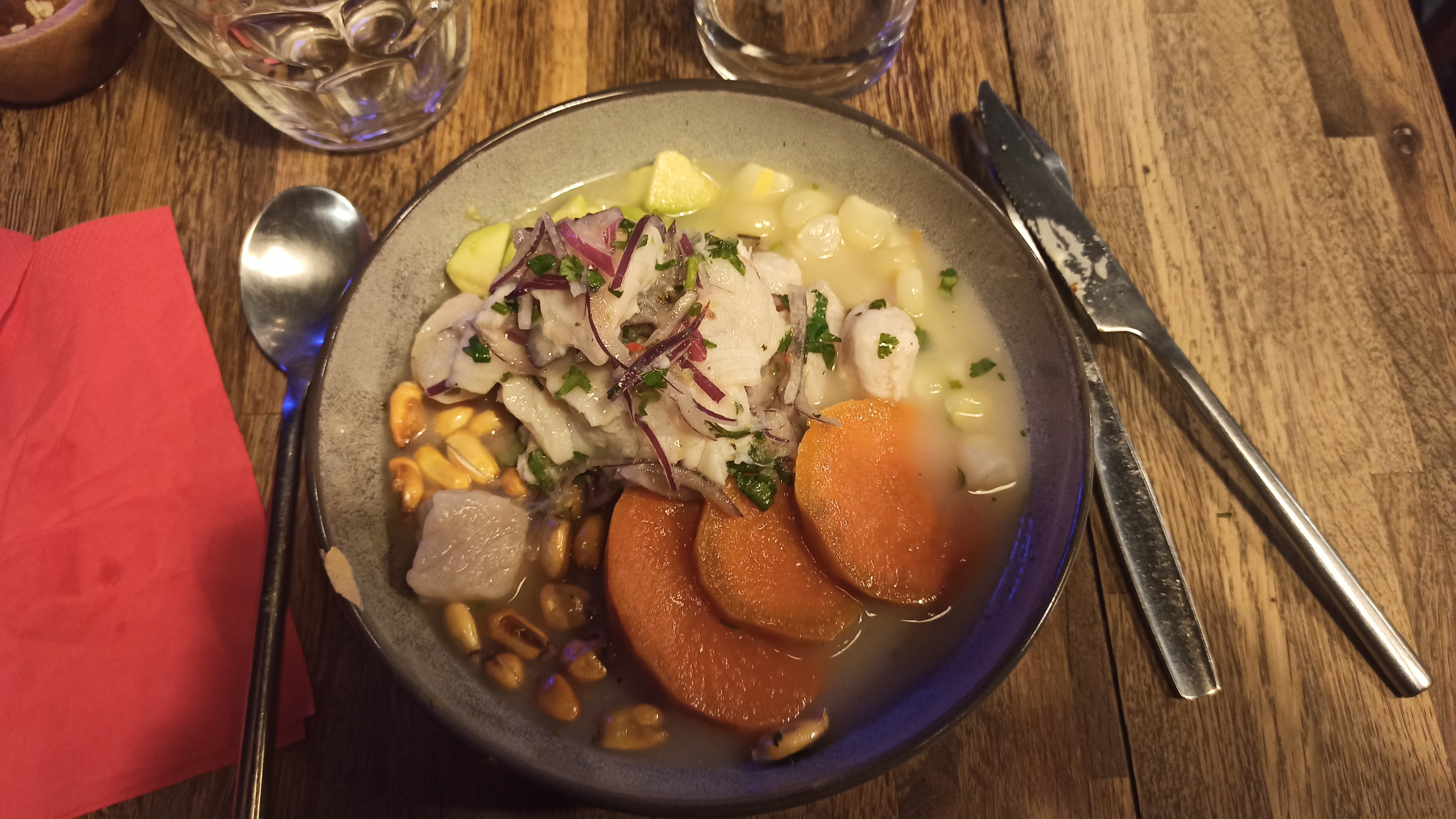 C'était excellent ! C'était la première fois que je mangeais de la nourriture péruvienne comme le ceviche. Merci à mon ami péruvien pour cette découverte 🤗