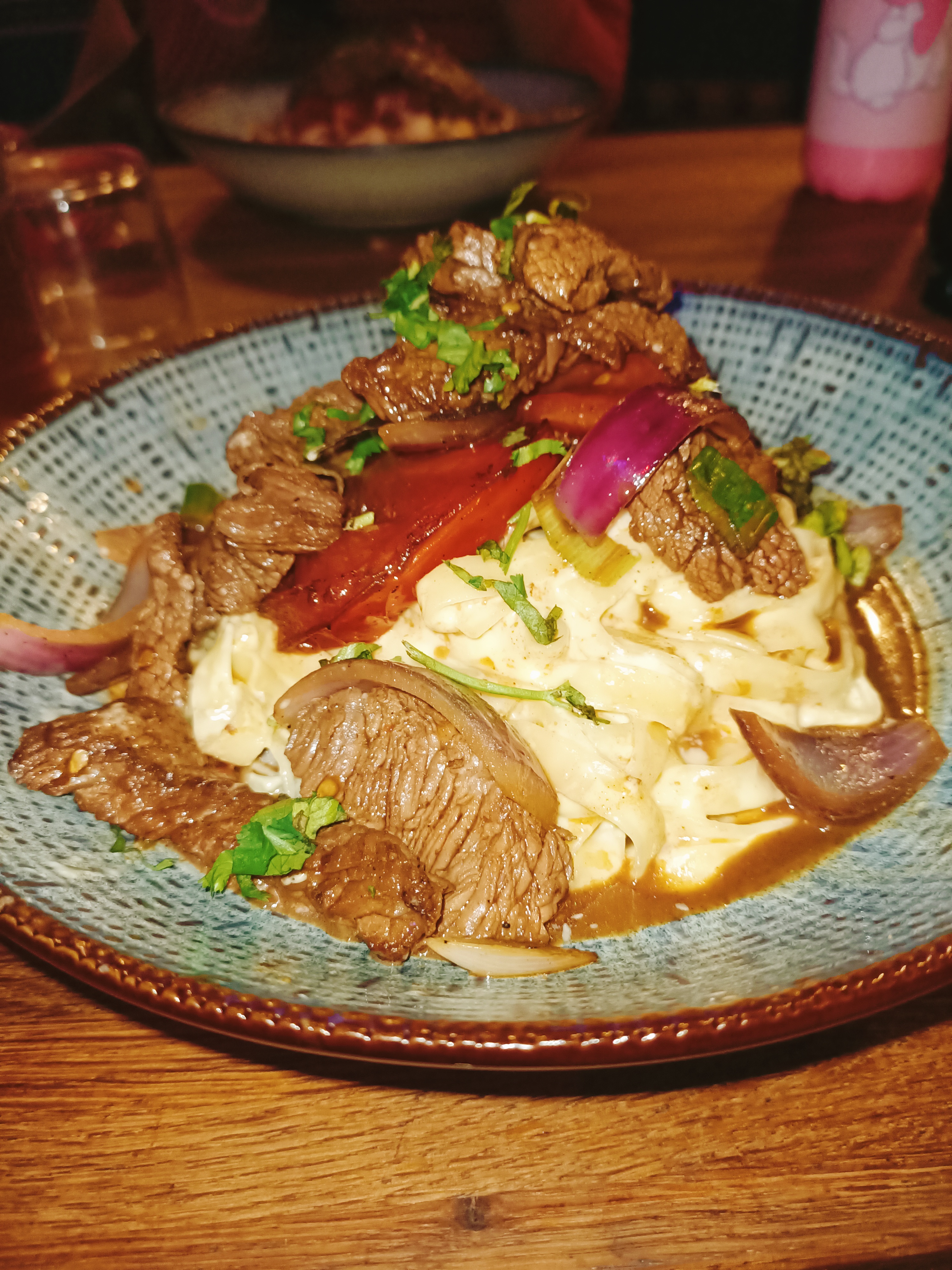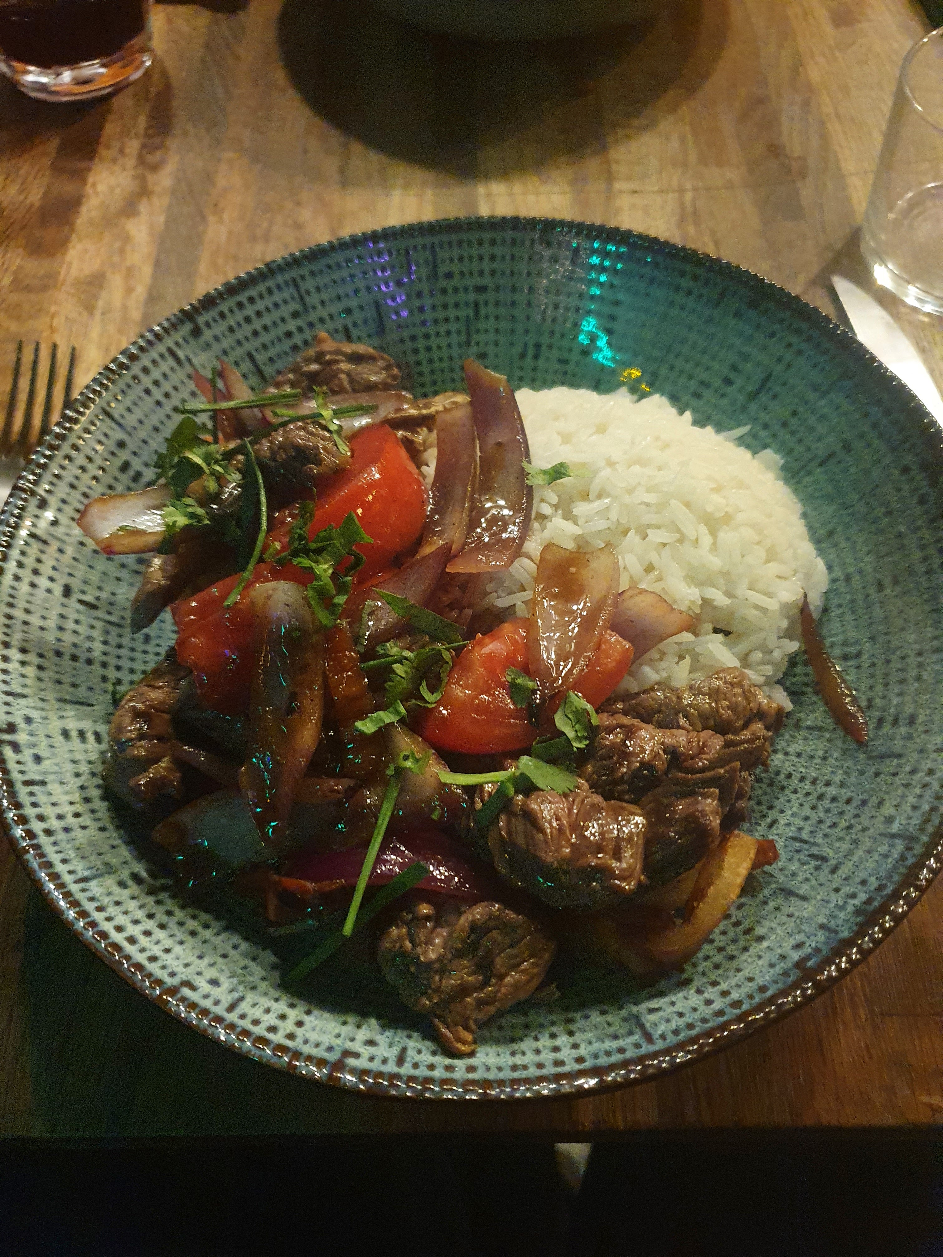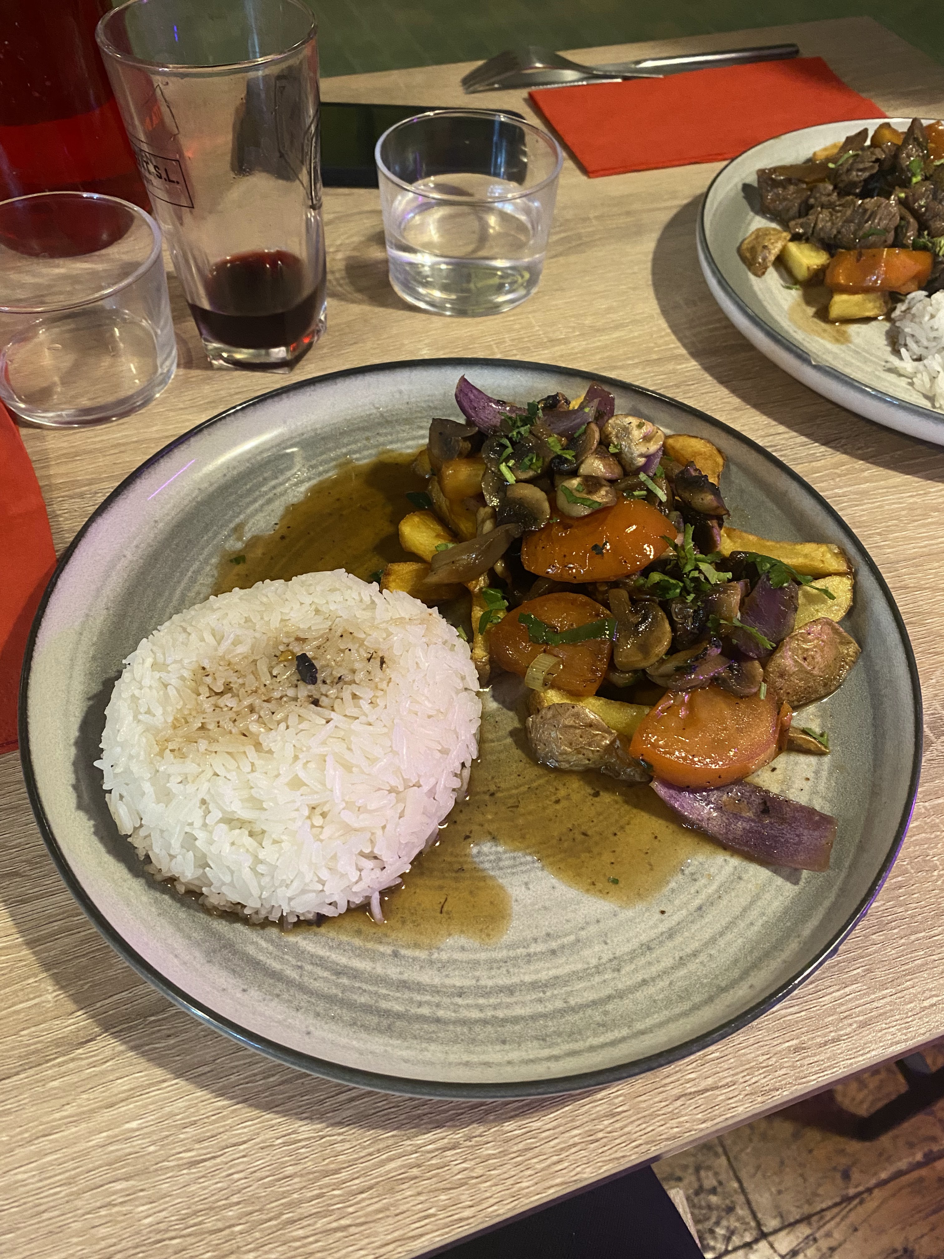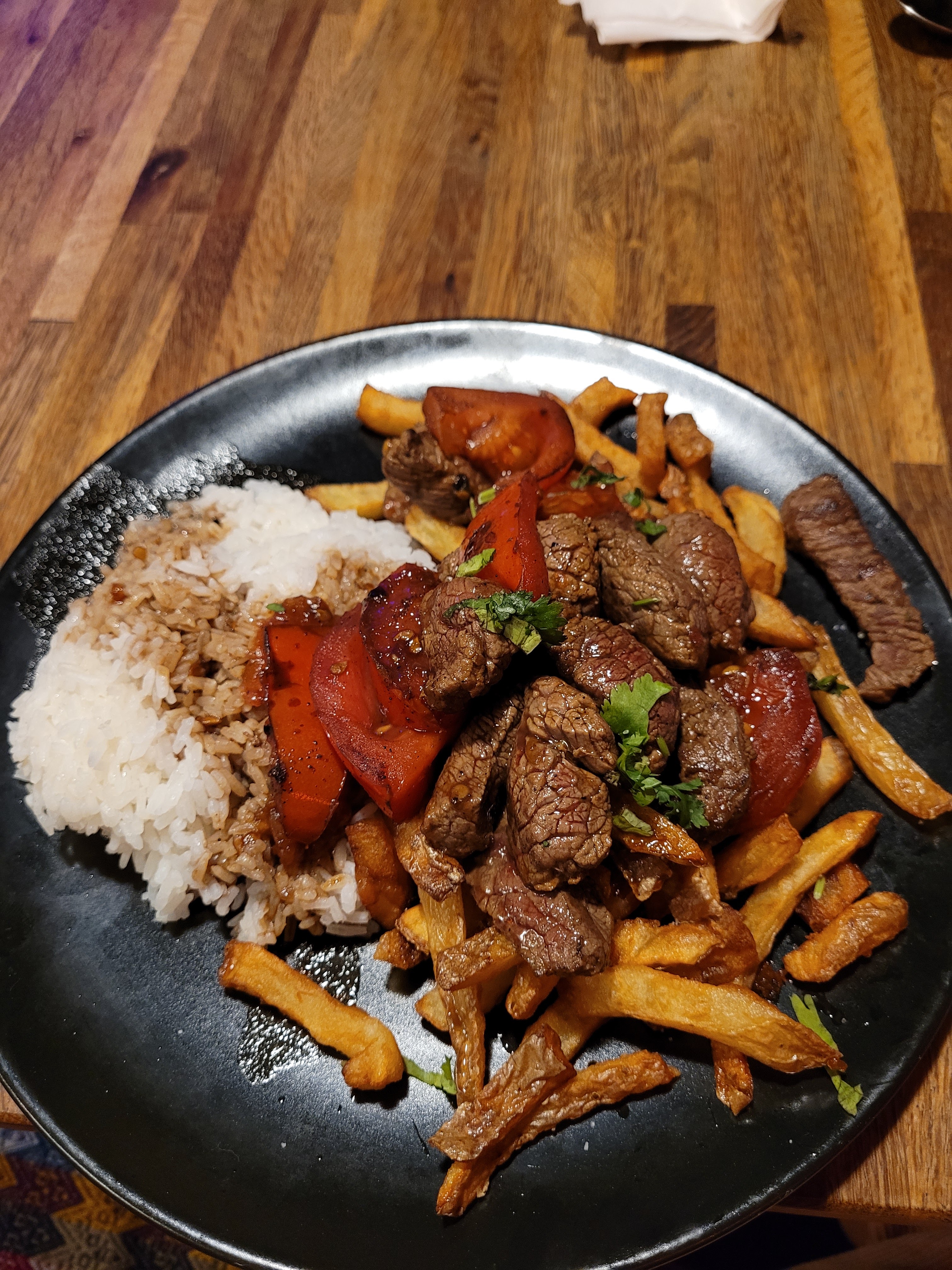 Commandé à emporter Saltado aux champignons et causa en entrée nous nous sommes régalées. Je vous le conseille vivement. En plus l’accueil est top😀