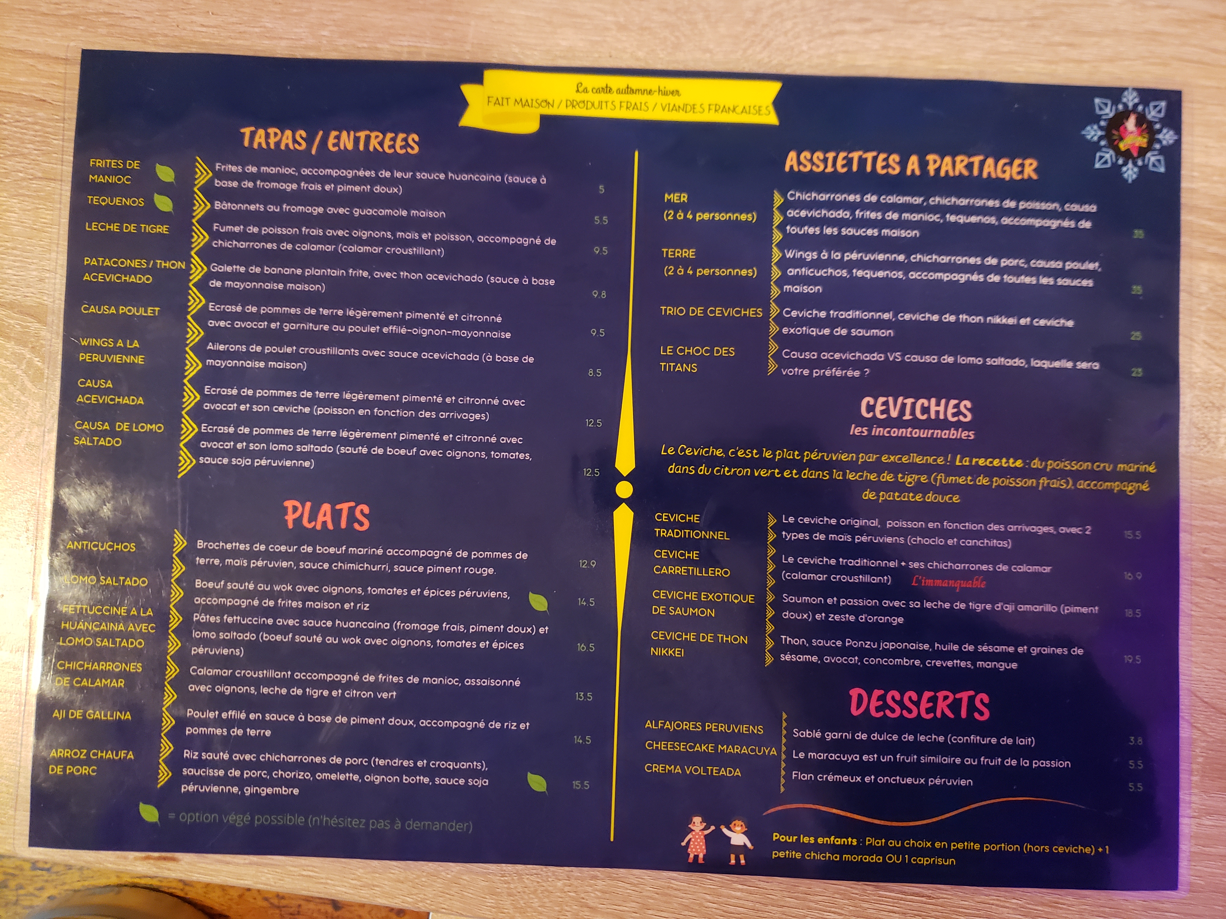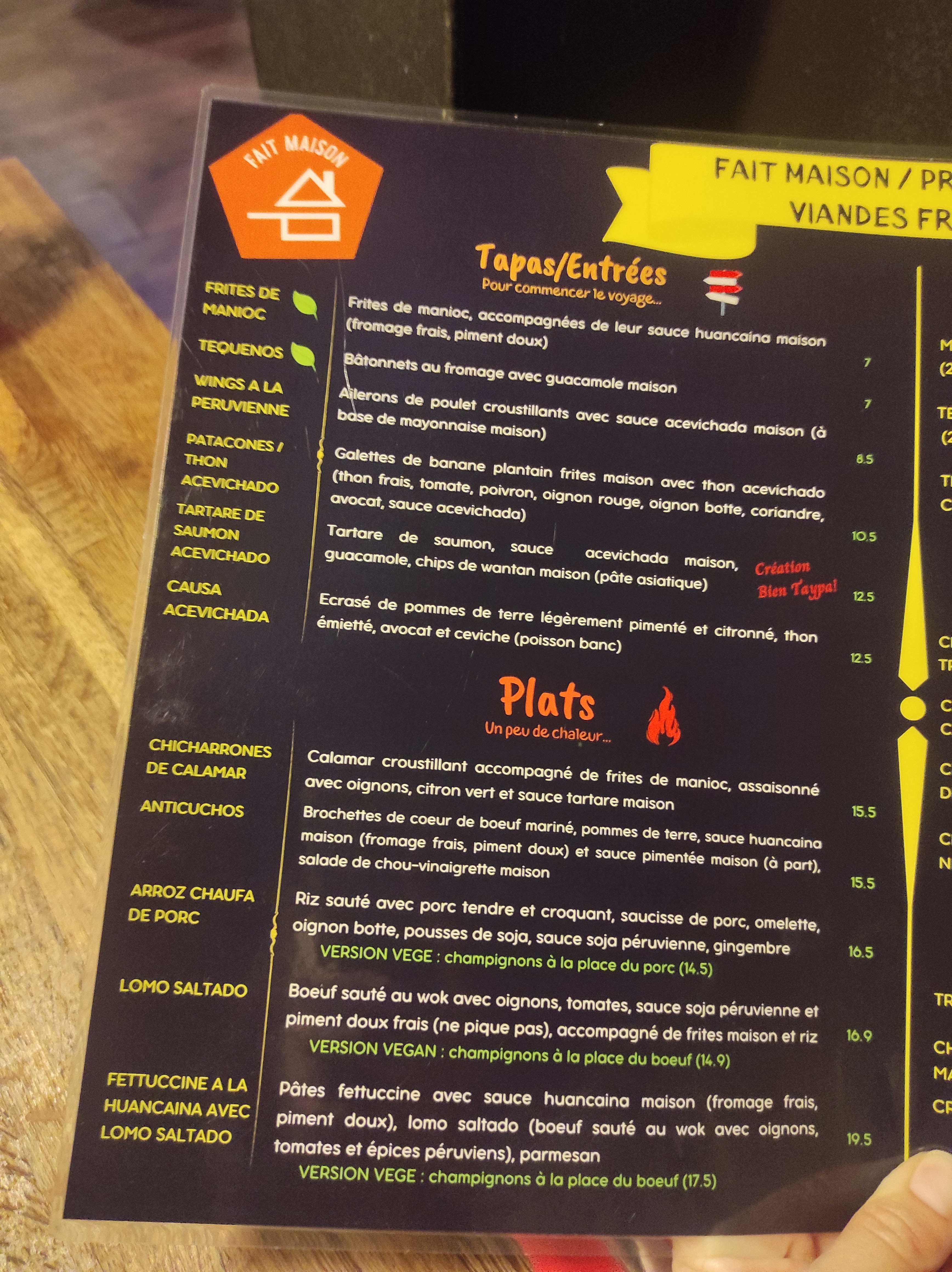 Un pedacito de Perú en medio de Occitania. El lomo saltado ha alcanzado un súper buen punto de madurez. Las causas frías, son un buen compromiso entre sabor peruano y régimen. Voy a menudo desde que lo abrieron el año pasado y siempre ha estado a la altura. Que sigan los éxitos! Un petit coin du Pérou au beau milieu d’Occitanie. Le « lomo saltado » a su se créer une place, petit à petit a atteint son point de maturité, il es excelente. Les « causas » reflètent le meilleur du saveur et savoir péruvien. J’y vais souvent, pratiquement dès le premier jour de leur ouverture, et j’y retourne chaque que jai envie de voyager avec le papilles. Bonne continuation !