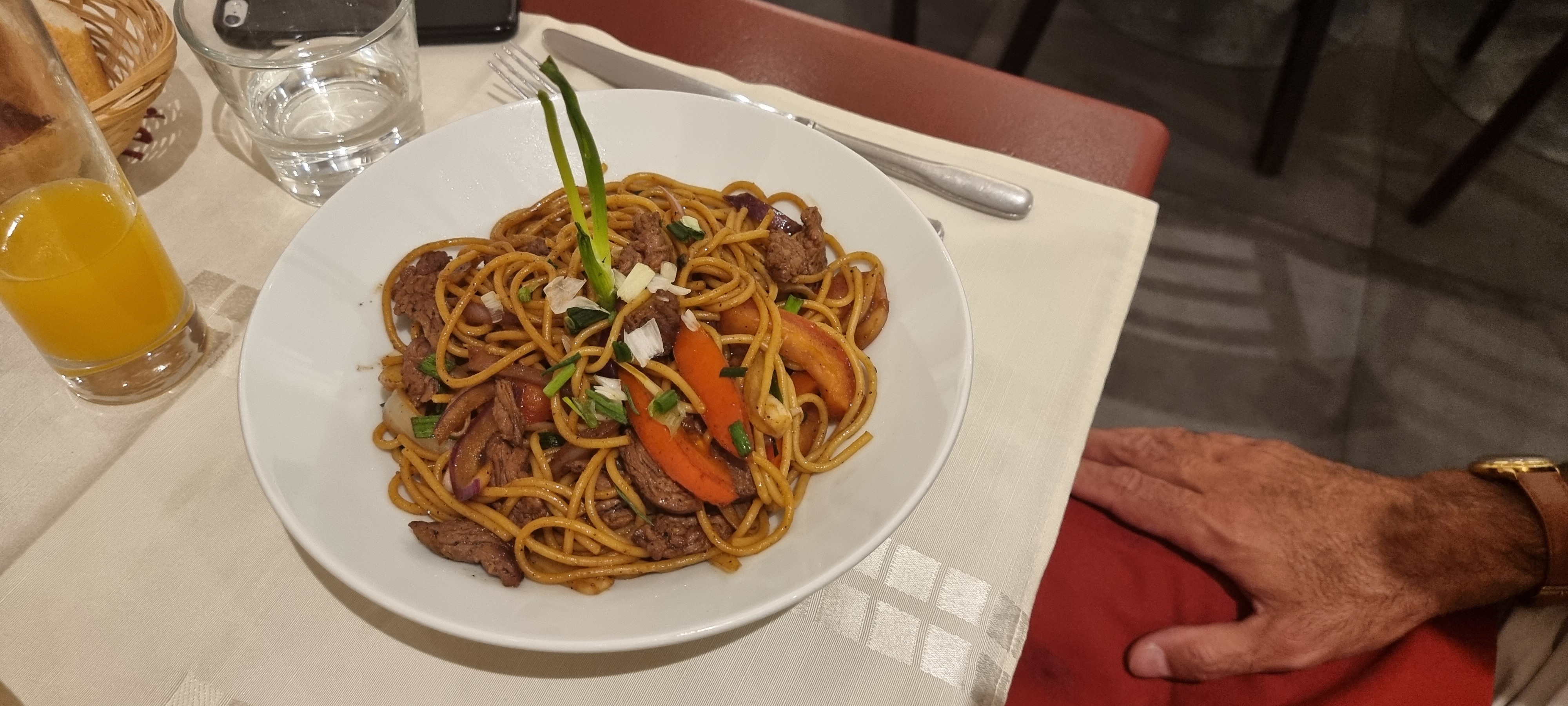 Buffet du jeudi très bon, avec de la nourriture bonne et intéressante. Dommage de nous faire partir rapidement vers 20h50 alors que l'on a commencé à manger vers 19h30. Sinon le repas du midi se passe très bien aussi, avec un menu pas cher et bon.