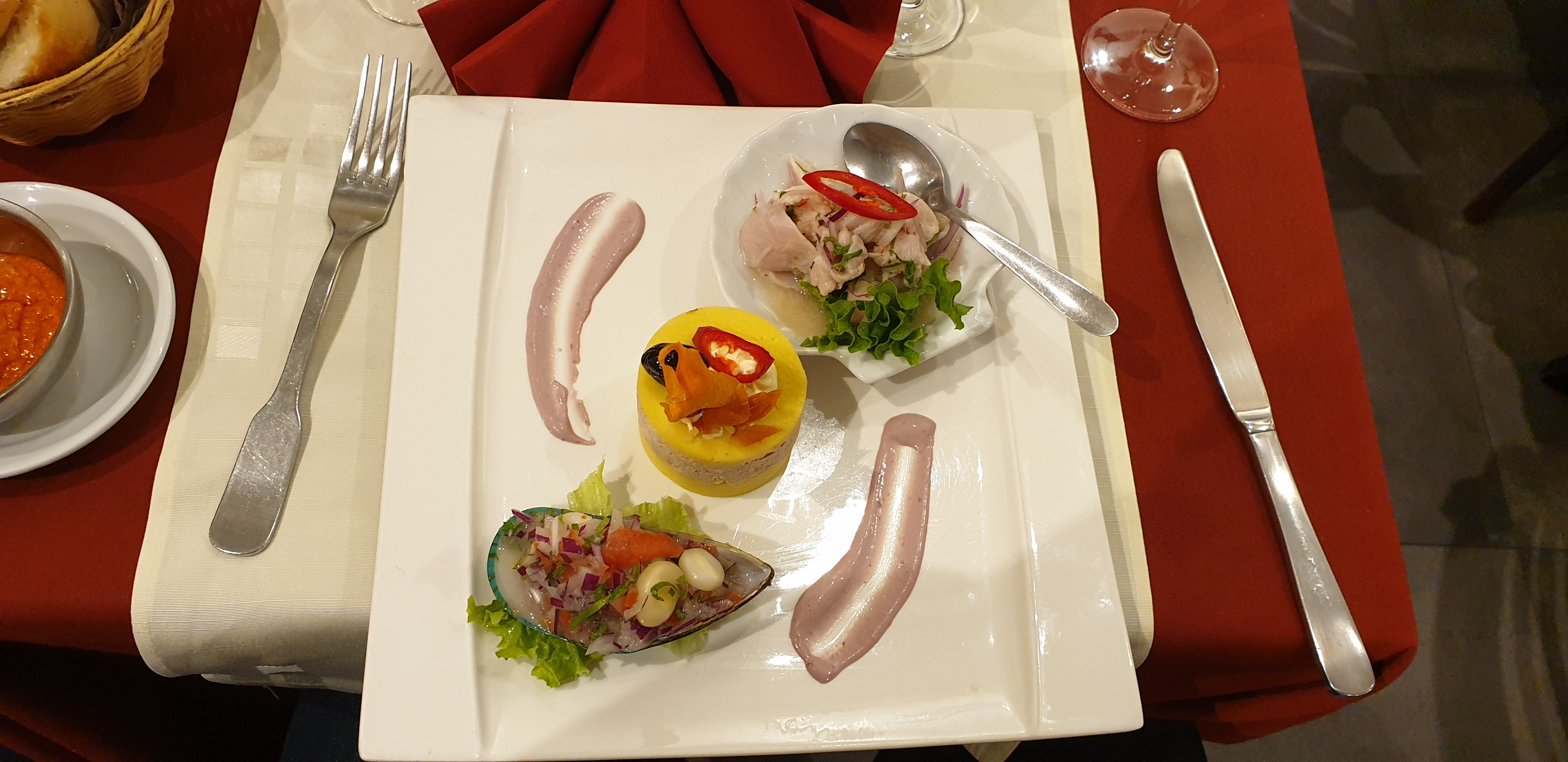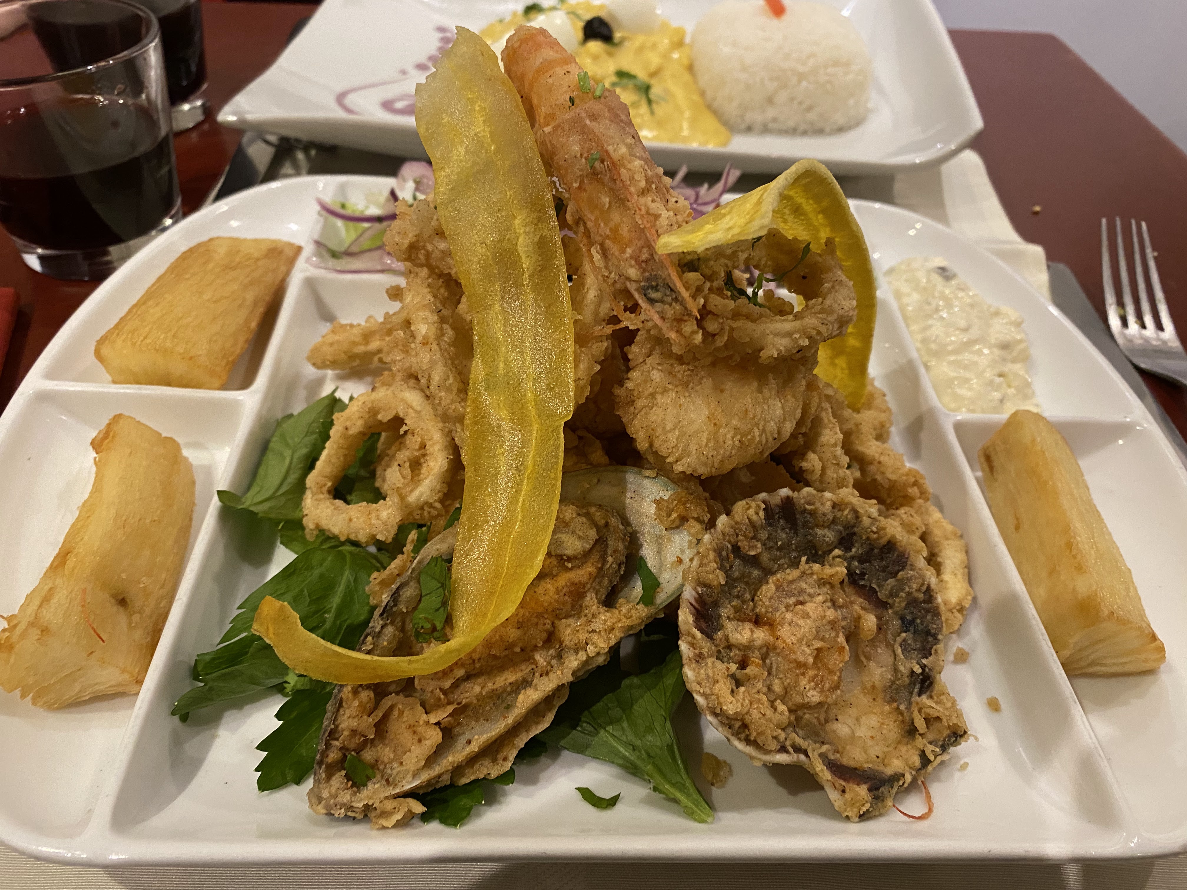 Accueille chaleureuse ! On a pris une entrée à partager à deux, la portion est assez copieuse pour une entrée. Le cheviché est vraiment délicieux. Je n’ai rien à dire. J’ai déjà mangé le cheviché plusieurs fois dans différents endroits et pays mais celui ci est vraiment top !!!! Bravo !!! Ensuite, j’ai pris un dorade royale frits comme plat. C’est très copieuse, la cuisson est parfaite, très croustillante comme j’aime. C’est une bonne adresse et je recommande fortement. En plus, le serveur était très souriant et gentil ! Tout est parfait pour une superbe soirée de gastronomie.