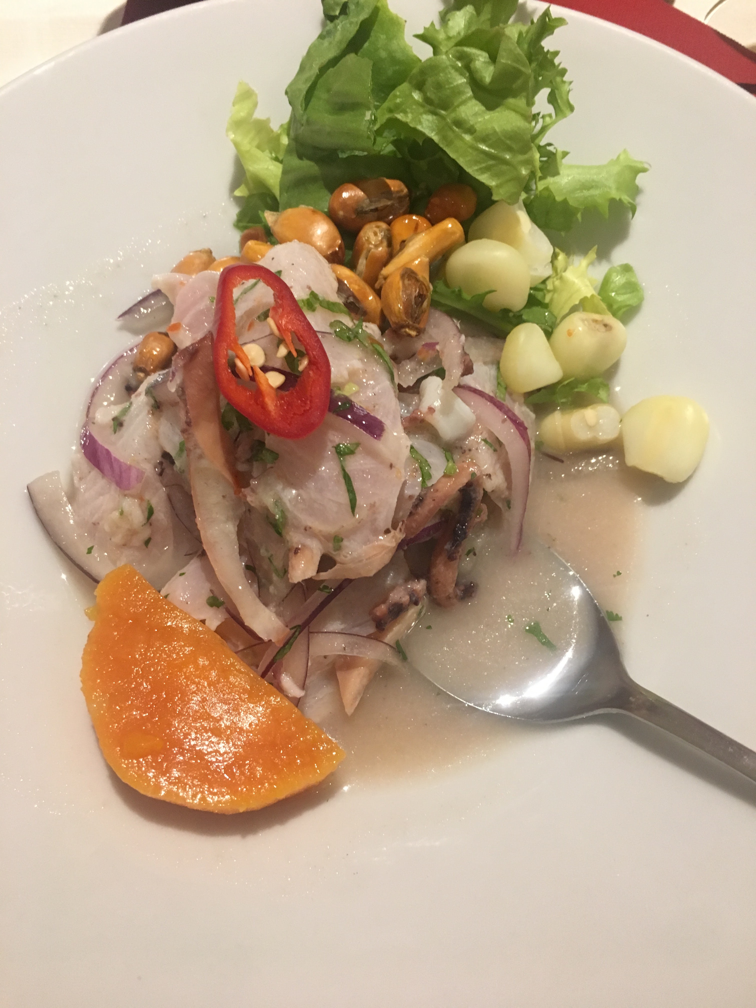 J'ai découvert la cuisine péruvienne et ce Ceviche Mixto poisson et fruit de mer marinés dans du citron vert, gingembre et patate douce était incroyable.