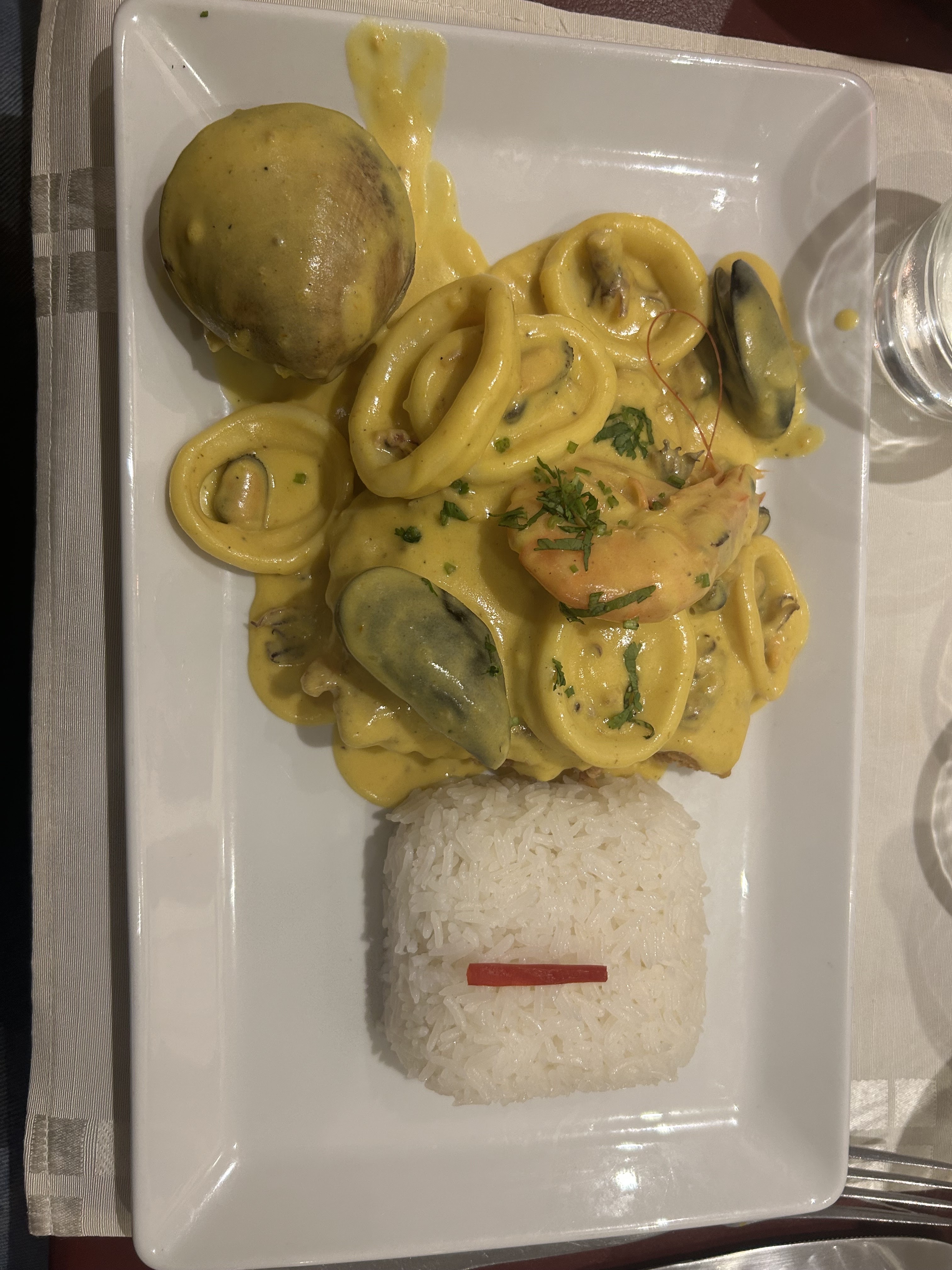 J'ai adoré ce resto ! Trop bon la daurade grillée avec une sauce aux fruits de mer et que dire des mojito un pur délice bien mieux que certains bar à cocktails de Paris, un riz au lait parfait moelleux et pas trop sucré avec une pointe de cannelle et tiède comme le fait ma maman. Le service rapide et très accueillant et les gens y sont chaleureux, il n'y avait que des locaux et j'ai beaucoup apprécié ce petit voyage au Pérou, les personnes avec qui j'ai déjeuné ont été bluffés Je reviendrai à coup sûr avec tout plein d'amis Bon Rapport qualité prix je suis sortie de ce resto le ventre rond et bien rebondi mdr