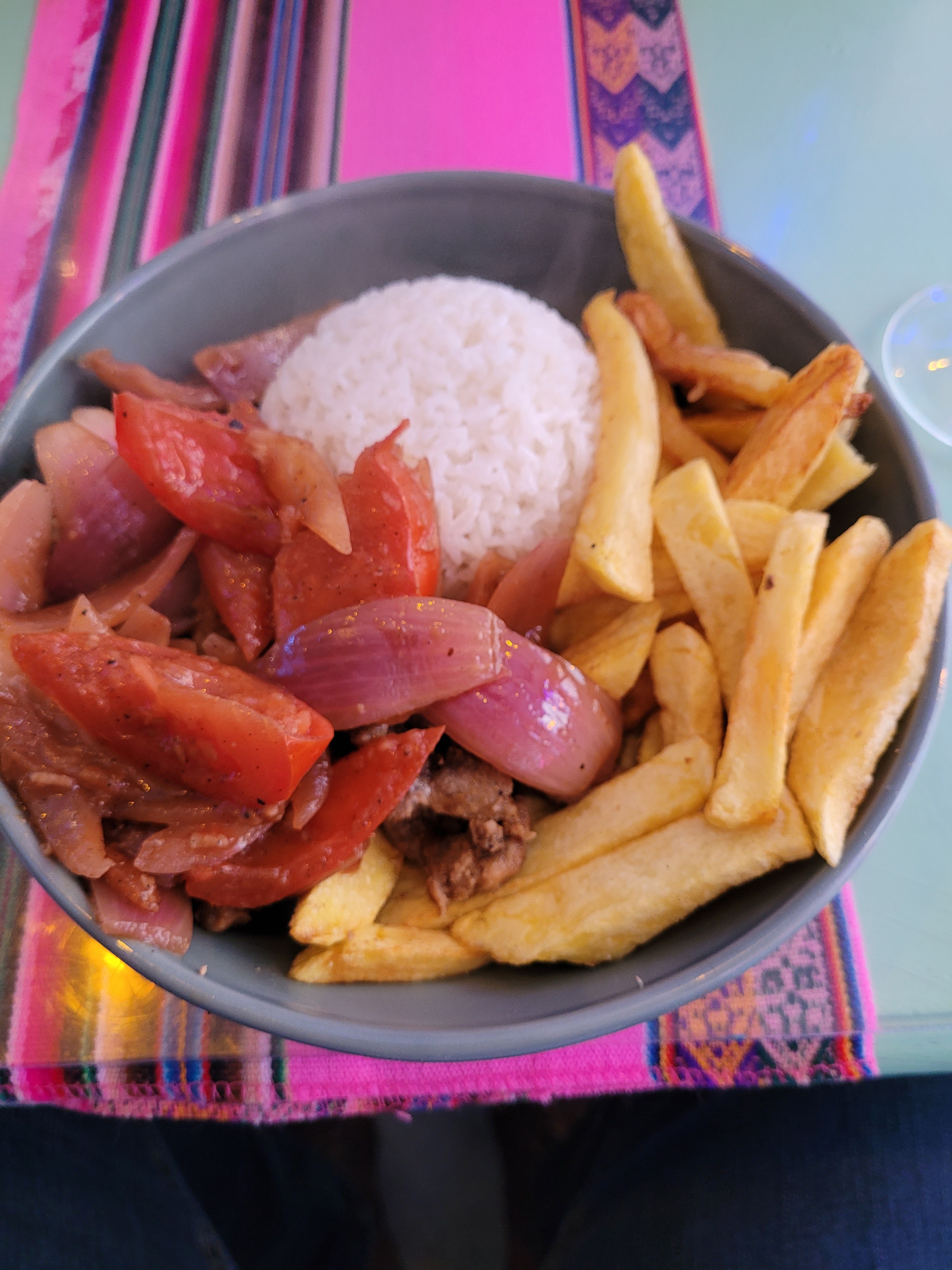 Voilà un restau sans aucune prétention de décoration mais avec une savoureuse cuisine goûteuse et généreuse ! J'ai adoré je me suis régalé lomo Saltado exquis !