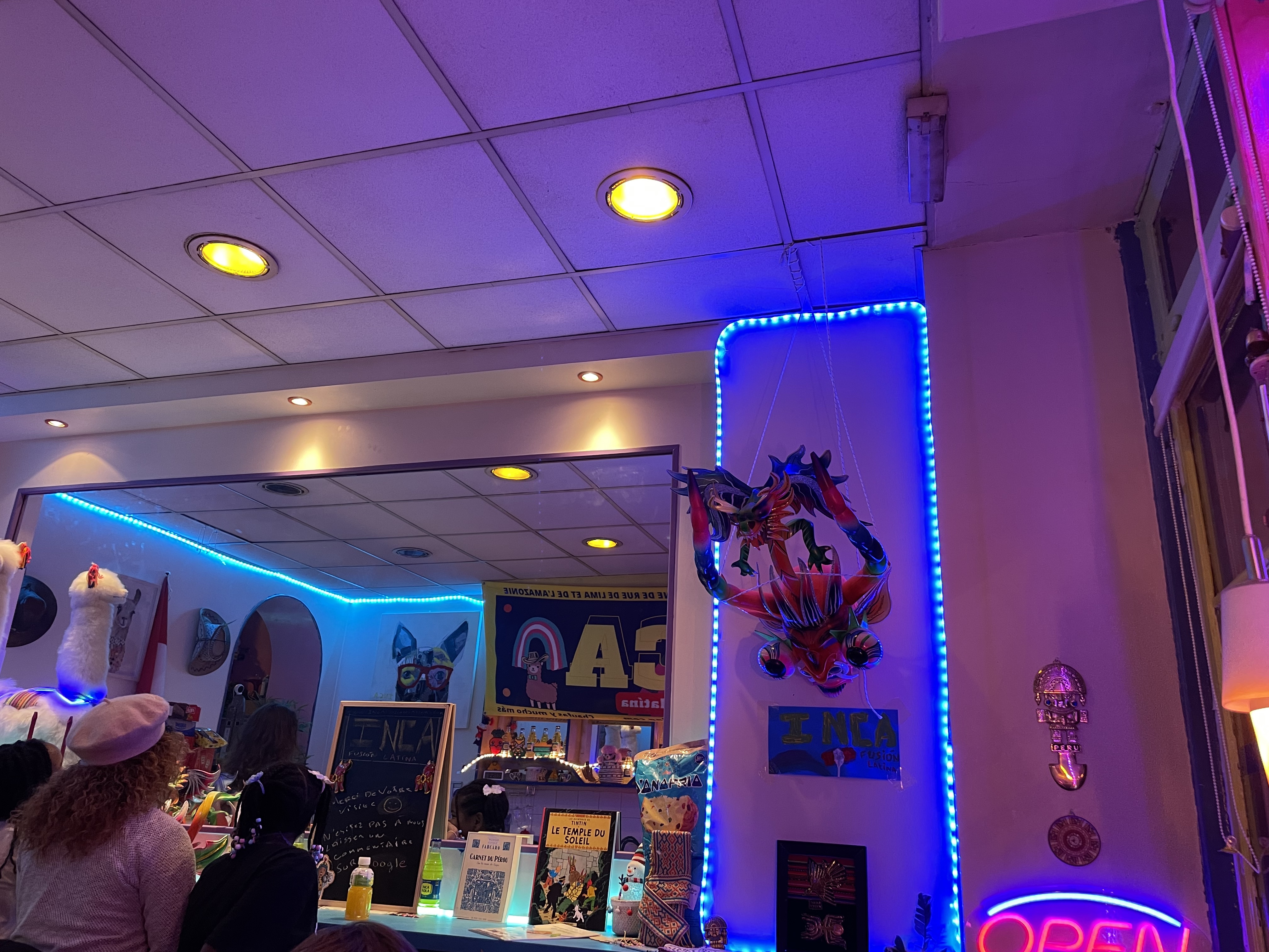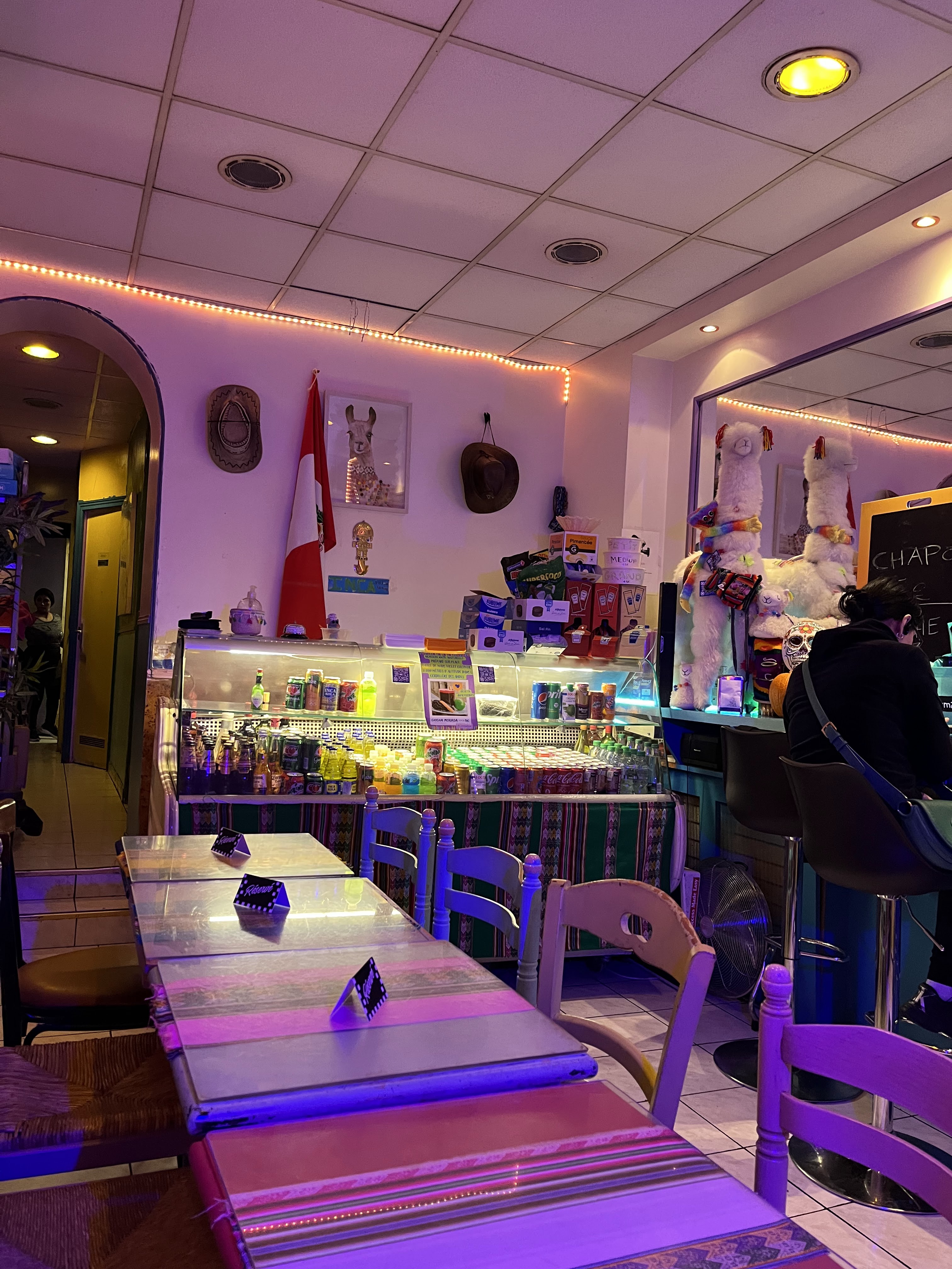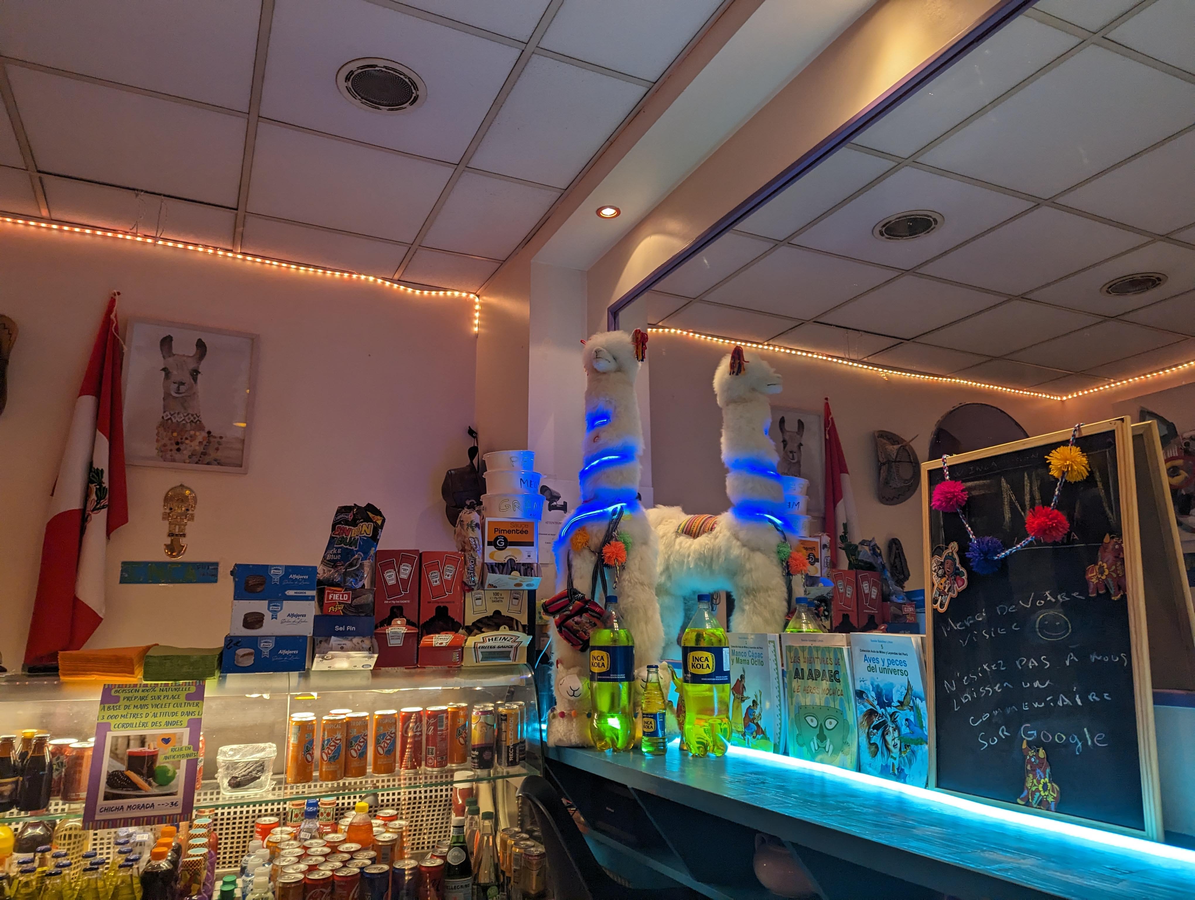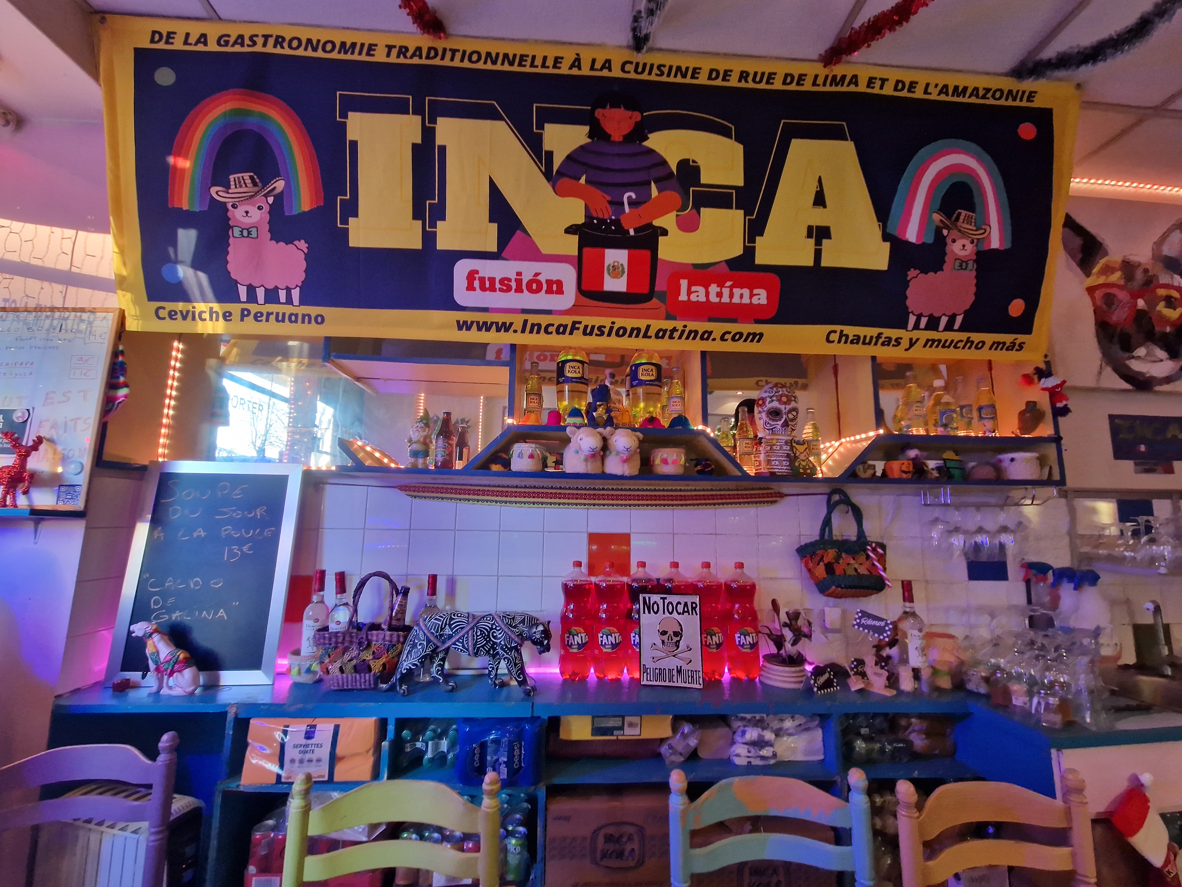 Découverte tardive de ce charmant restaurant péruvien qui a ouvert il y a un an avec des gens très sympathiques et qui ferme dorénavant tard le soir. La déco vient d'être finalisée et l'on se croirait en Amérique latine avec l'ambiance et la musique. Nous avons consommé sur place 1 plat à base de riz et poulet et un autre à base de frites bananes plantins œuf et bœuf excellent tous les 2. 2 petites bières locales blonde et brune très originales au goût et assez légères pour accompagner le tout pour moins de 30 euros pour 2 sans les boissons et avec des portions très très copieuses.. Je recommande l'endroit petit mais très cozy. Xavier
