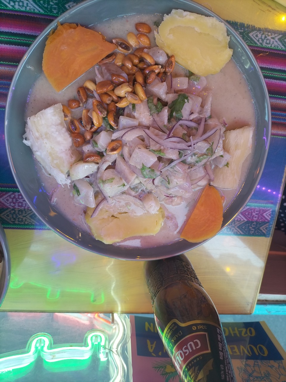 Pas de plat de qualité pour les prix, les pâtes de la veille chauffées au micro-onde qui accompagnent l'aéroport qui n'ont qu'un goût de sauce maggi, le ceviche froid court (car pas préparé du jour), le ceviche à la crème d'oignon le plus laid des ma vie, je pense que pour eux c'est du lait de tigre. Il ne mérite pas le nom de restaurant péruvien.
