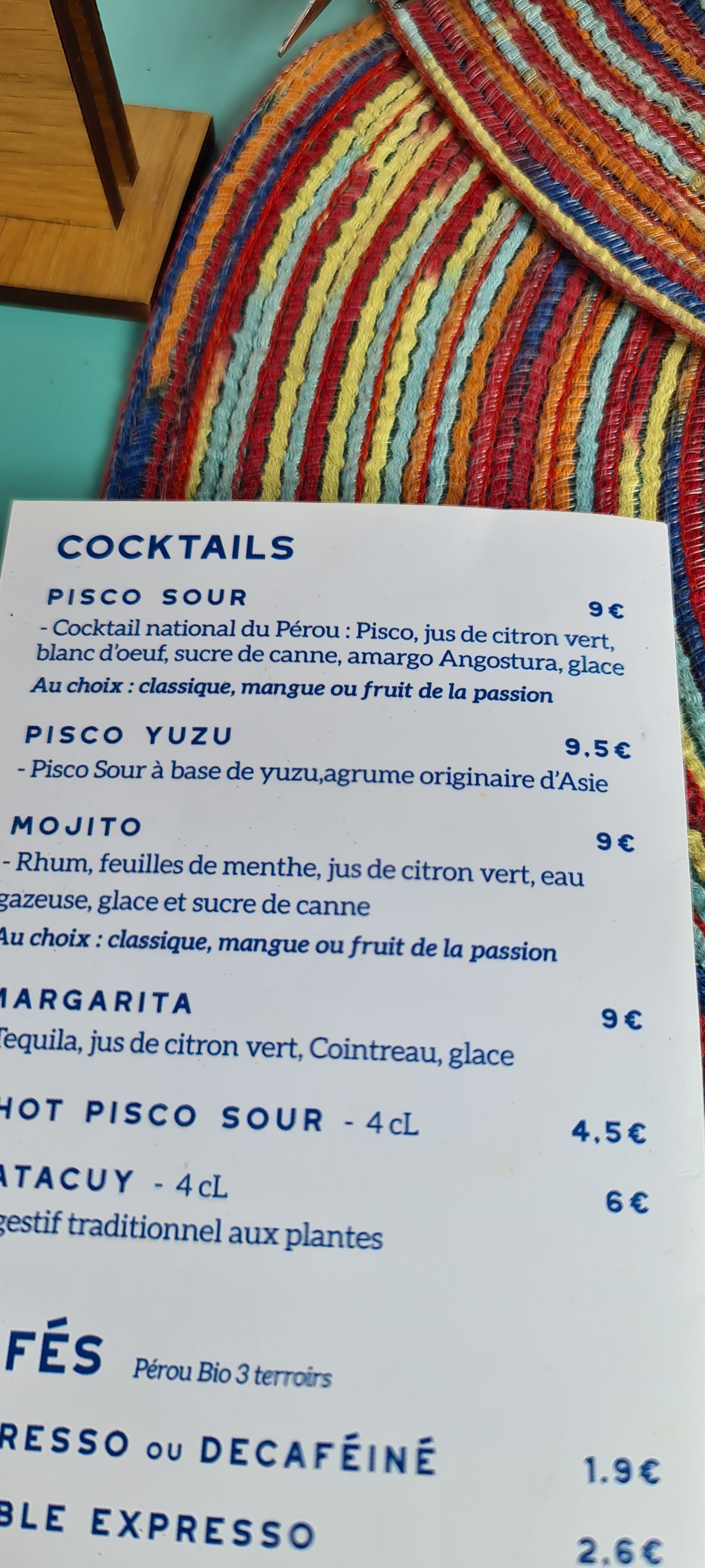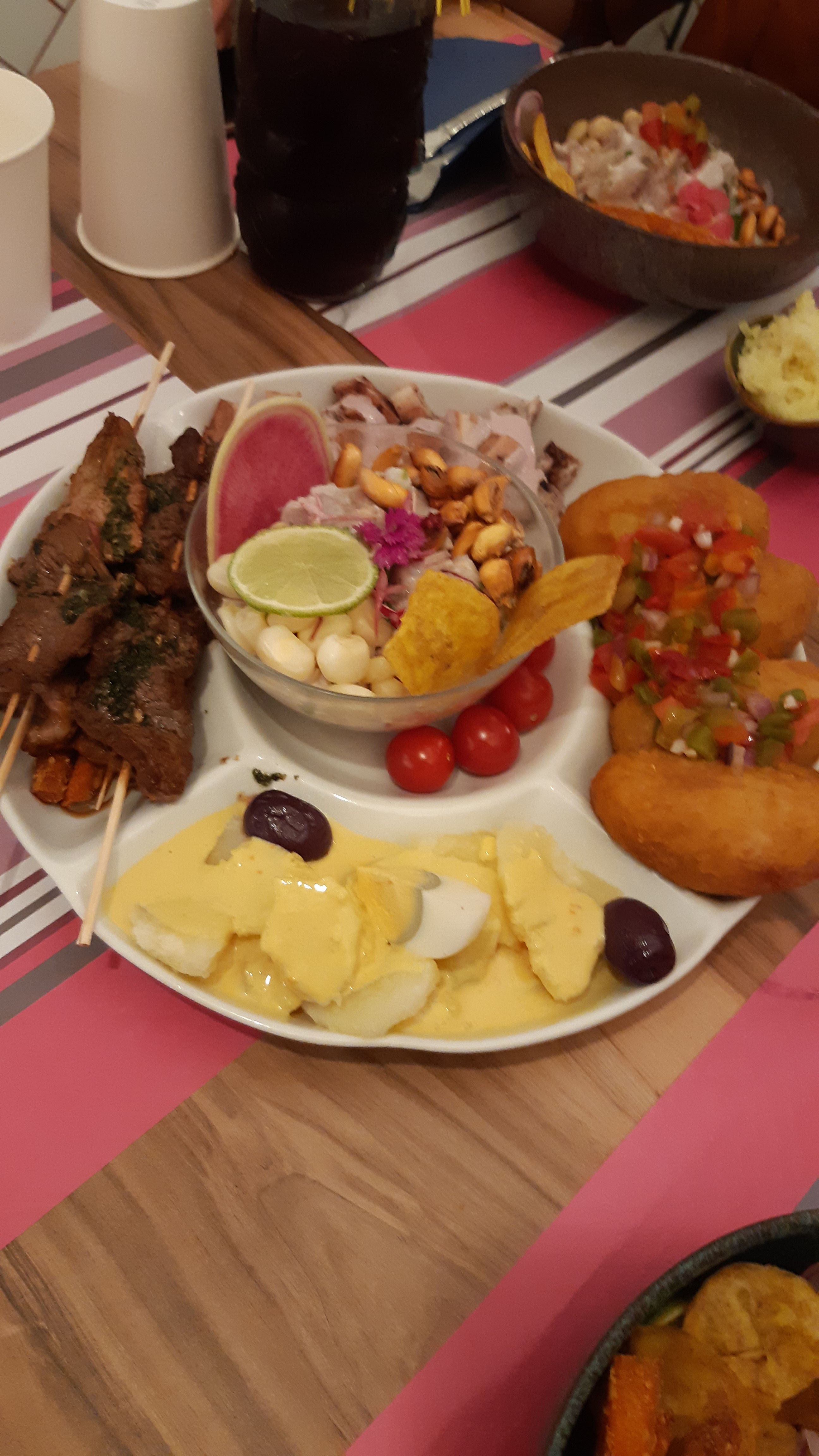 C'était vraiment super bon ! J'y suis allée avec une amie péruvienne et elle s'y est senti comme à la maison. L'ambiance et les plats étaient super, si vous voulez découvrir la gastronomie péruvienne c'est une très bonne adresse ! Pour info sur les photos : j'ai pris un ceviche mincara (je crois) une boisson au maïs et une assiette pour 4 à partager. L'équipe était aussi super agréable. En conclusion c'était vraiment une bonne soirée !