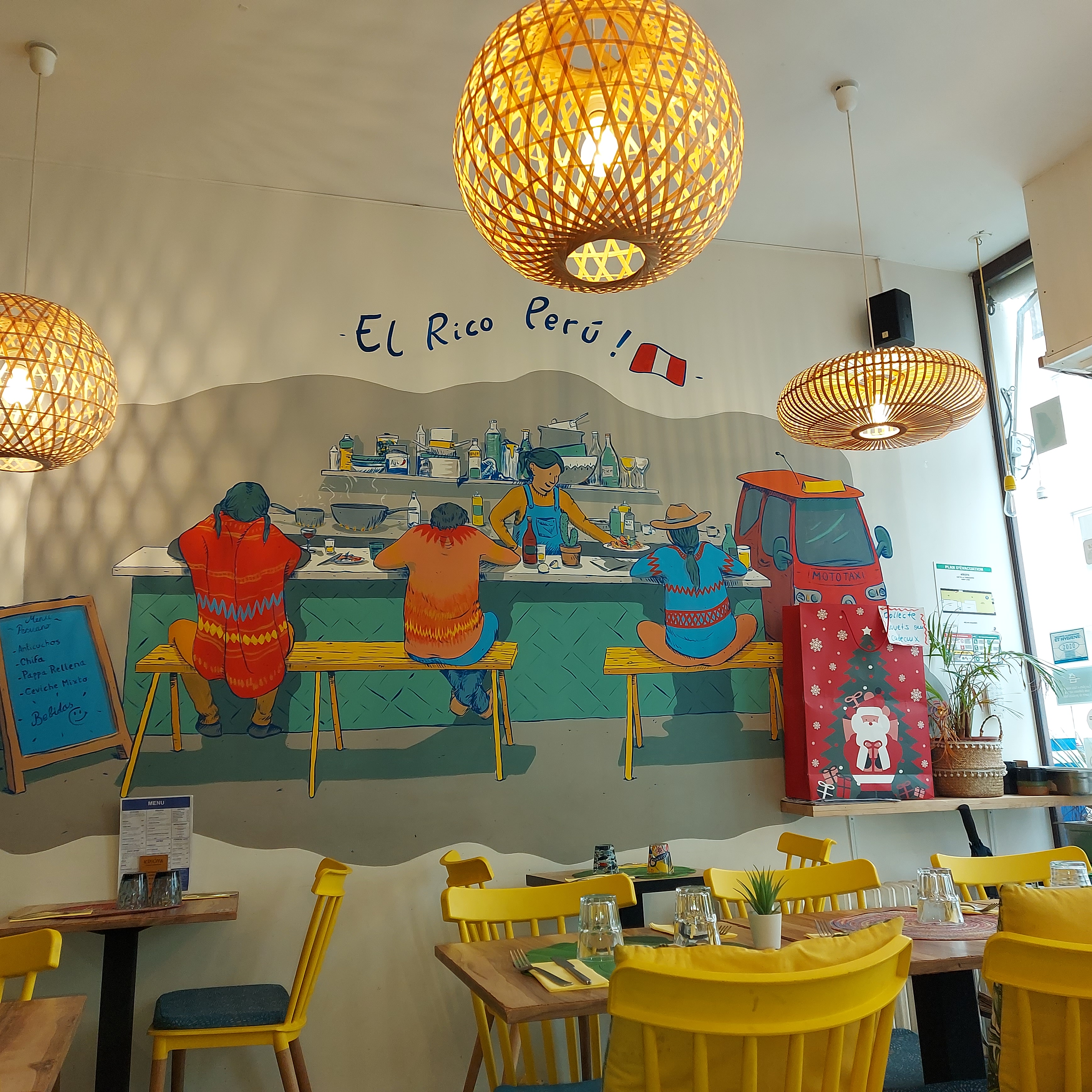 Beaucoup de mal à comprendre les avis favorables qui nous ont persuadés d'essayer ce resto. La déco de la salle est coloree, joyeuse et sympa, et l'accueil souriant. Mais ça se gâte ensuite. Service tres approximatif, lent et maladroit. Le contenu des assiettes est carrement tres mediocre : petit tas de riz sec et sans saveur, frites molles et quelconques, emincés de poulet ou de boeuf secs et trop cuits (il faut mâcher longtemps et avec energie), deux squelettiques lamelles de patate douce frite sur le bord de l'assiette, elles aussi tres seches et trop cuites, quelques rondelles de tomates insipides pour accompagner... Voilà pour les plats de resistance, que l'on mange sans plaisir, et peine à finir. Ce n'est pas de la cuisine, mais de la tambouille, et de l'assemblage... Le dessert n'etait pas mieux : pretendument tiramisu peruvien 😳😳 Le mot tiramisu fait bondir . Une sorte de grosse crêpe enroulee inondee d'alcool -lequel ?- (ce gout ecrase tout) avec du chocolat en poudre par dessus. Tombe comme une brique dans l'estomac. On ne finit pas non plus. Et tout cela pour 35 euros par personne. Ça fait cher le boui boui... et ce serait chouette si les petites bouffes quelconques s'assumaient comme telles, sans essayer de paraitre ce qu'elles ne sont pas, y compris au niveau des prix. Passez donc votre chemin, et ne vous laissez pas prendre aux sirenes du pretendument original, tendance, couleurs du plumage (ici les murs)