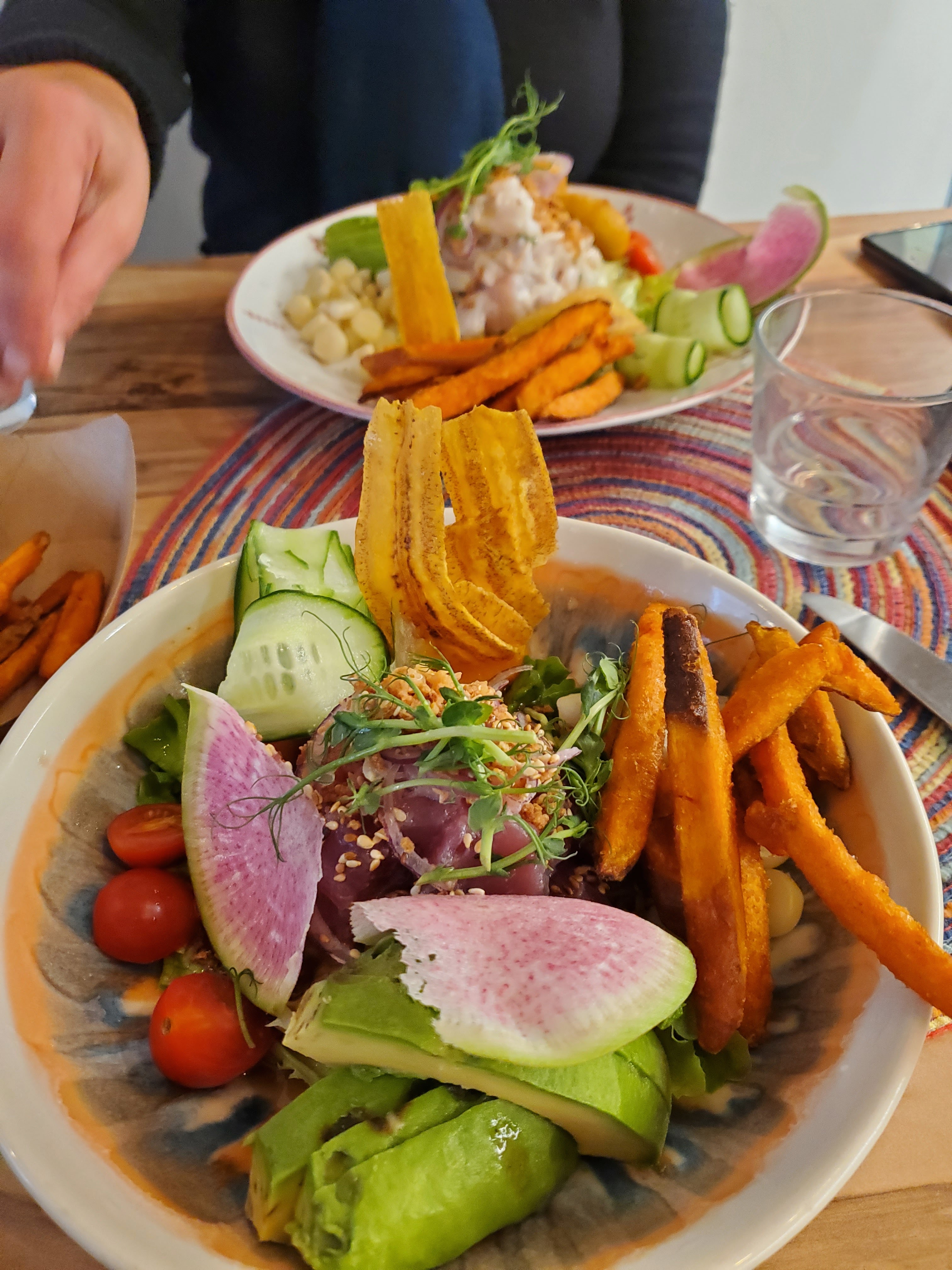 Une belle découverte. Cadre joliment décoré, service efficace. Une carte du midi qui se décline essentiellement en ceviches, woks ou salades et incluent une option végétarienne. Et des cocktails généreux.
