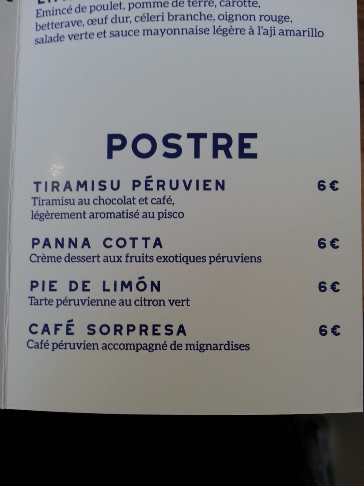 Je recommande ce restaurant à tous le monde, les plats sont délicieux surtout les céviches un souvenir du Pérou, et les desserts au top. Le personnel est très accueillant et souriant, encore merci pour ce chouette moment 😊