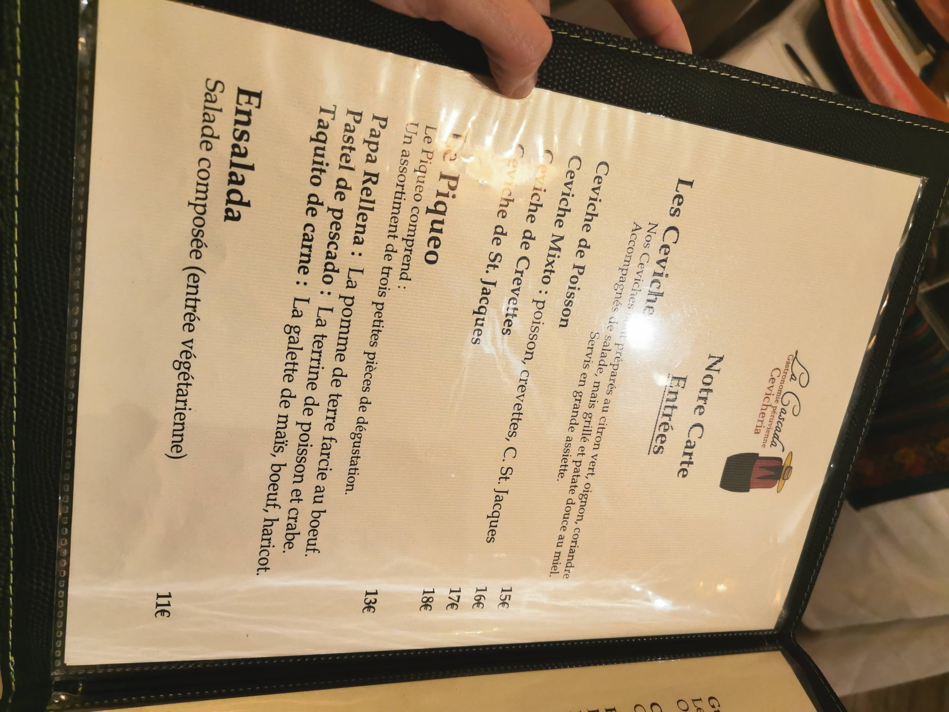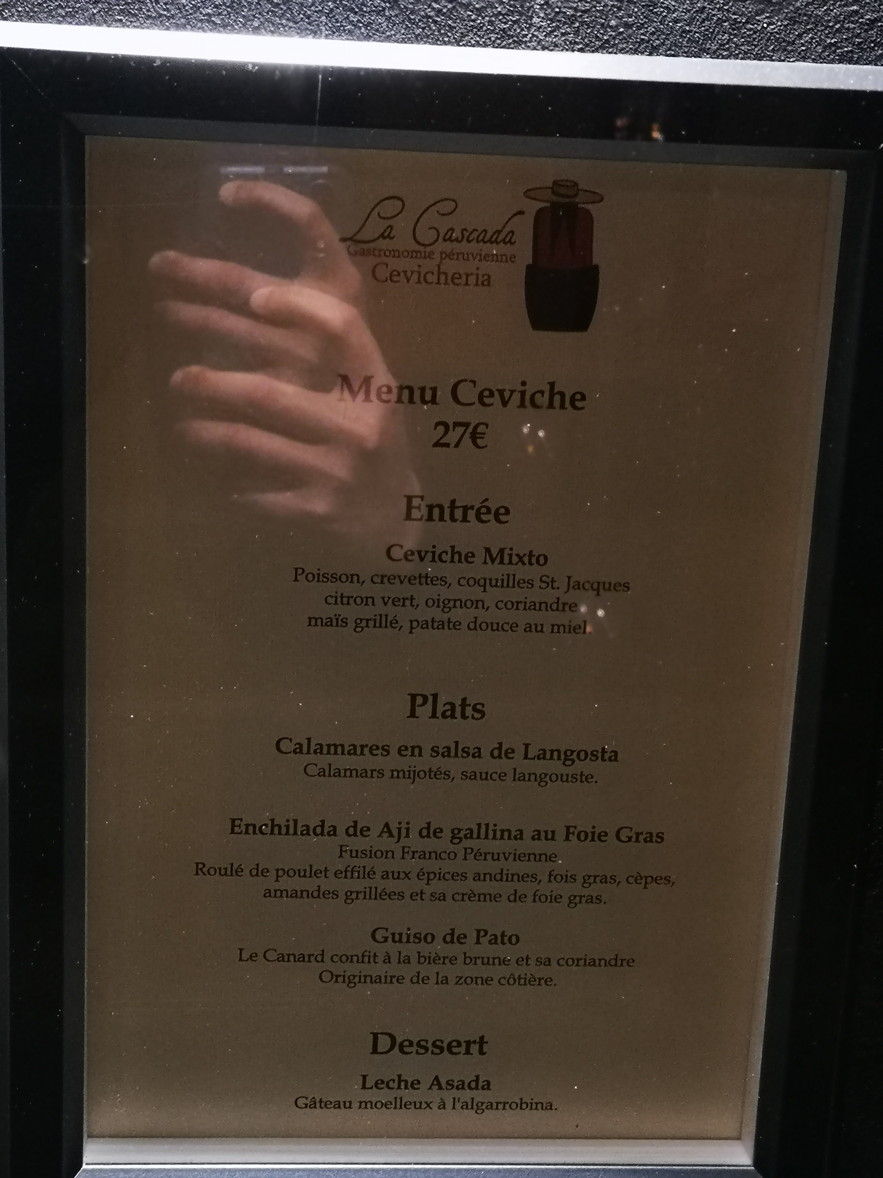 Bon resto mais avec un petit bémol. Très bonne ceviche, la portion est correcte et le prix abordable. Vous avez la possibilité de prendre un menu pour 27€ composé d'une entrée, un plat et un dessert. Je trouve très bien le rapport qualité - prix. Le problème : il n'y avait pas la possibilité de payer par CB le jour de notre visite, et quand nous avons demande de factures avec la TVA, ils ont dit qu'il pouvait pas le faire. Visite le 04/04/2019.