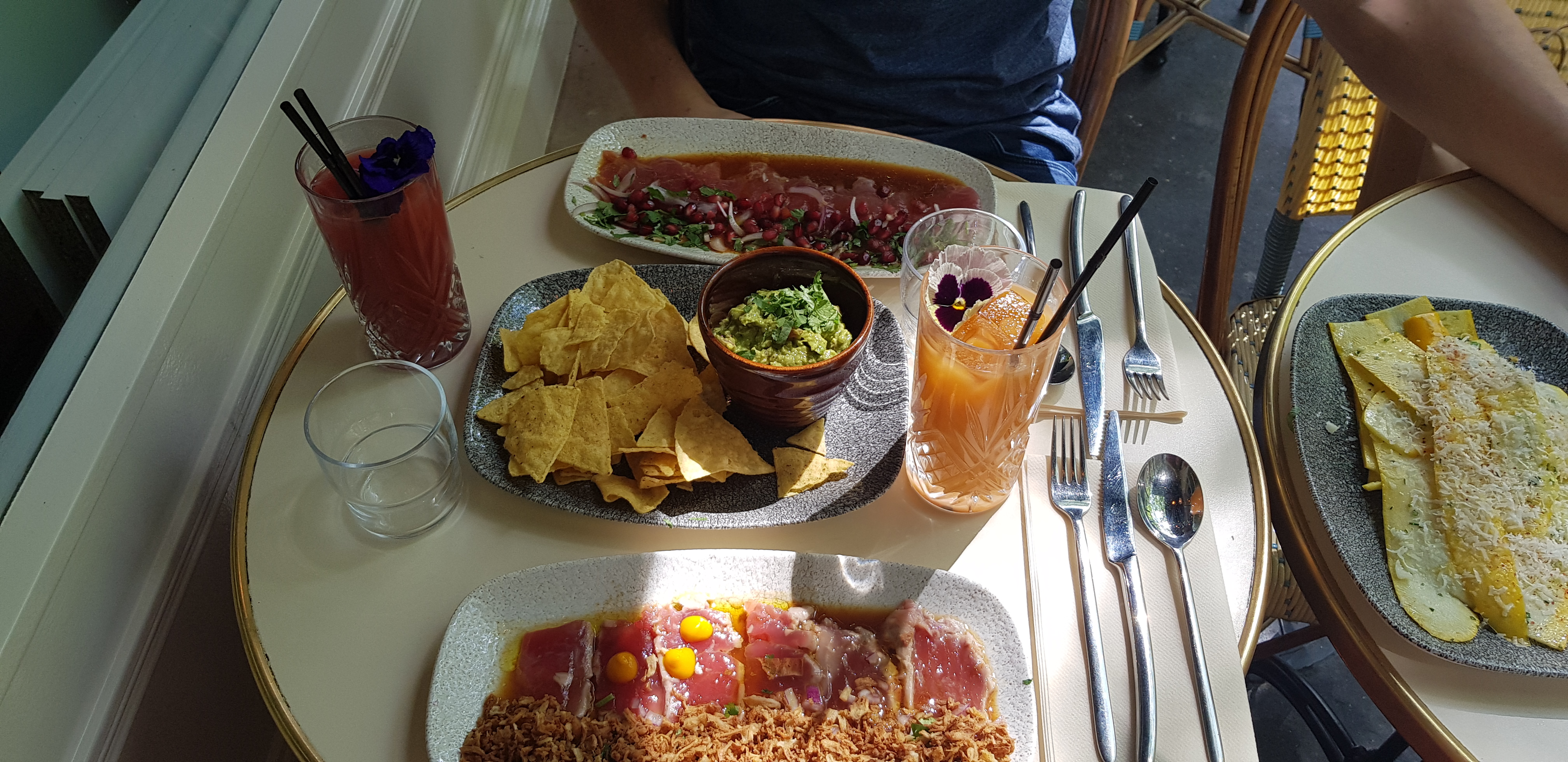 Toujours un plaisir de venir ici ! Le service est impeccable et les plats sont super bons ! Les saveurs sont maîtrisées avec soin, il n’y a aucune faute possible (Gros gros coup de cœur pour le cheese cake passion qui est juste incroyable (je pèse mes mots), avec de la mangue et fruit de la passion, 10/10). Les cocktails sont aussi très bons Allez y les yeux fermés Nous avons pris une entrée à partager : thon betterave, deux ceviches (thon et dorade), et des cheesecake