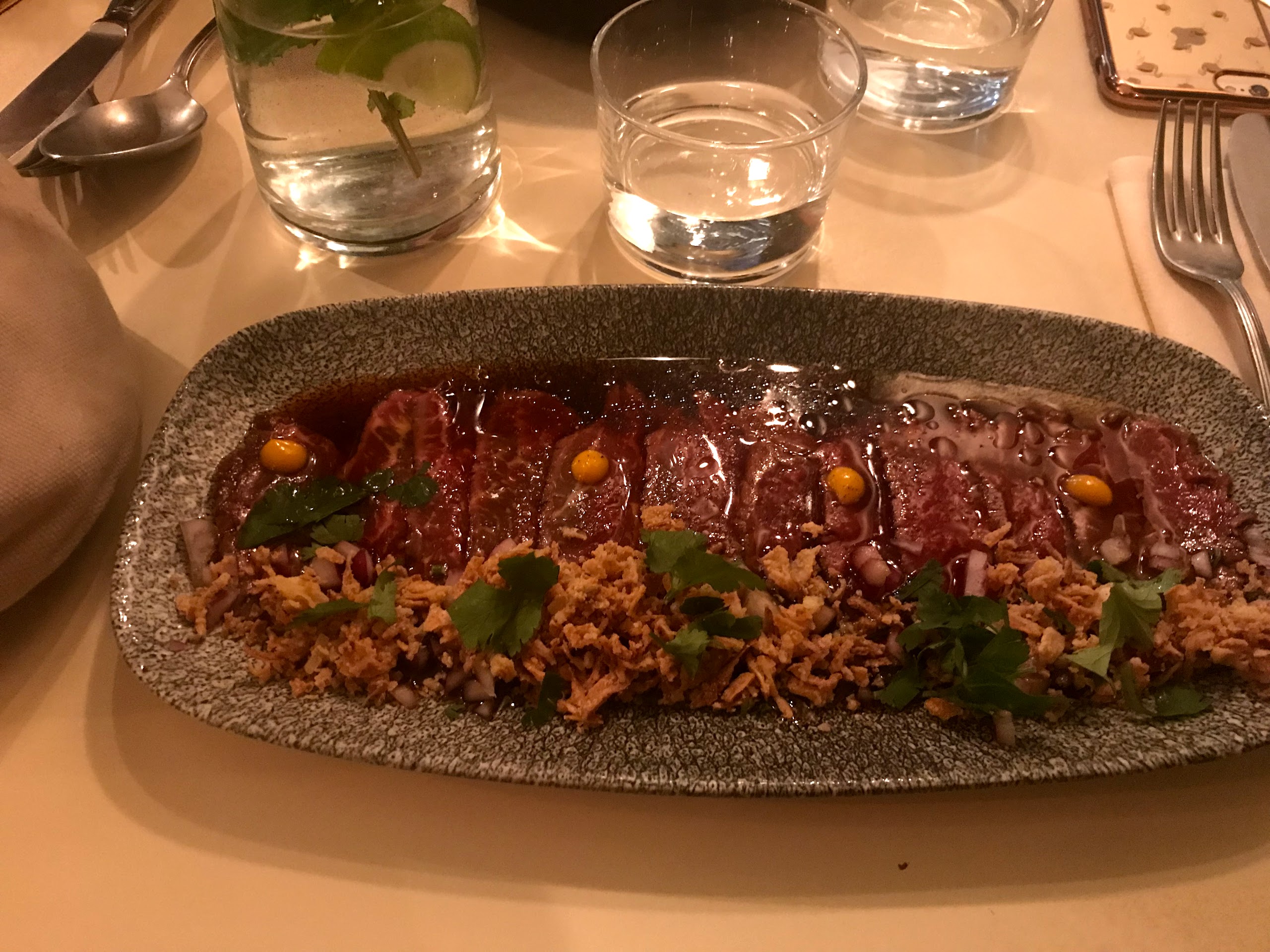 Diner entre amis, très belle découverte. Ambiance très agréable, plats très bons, beaucoup de fraicheur et de saveur. Mélange de cultures très intéressant avec une base péruvienne. Le ceviché péruvien excellent fraicheur incroyable, rice crispy tartare tune excellent, très frais, idem pour les taccos poulet.