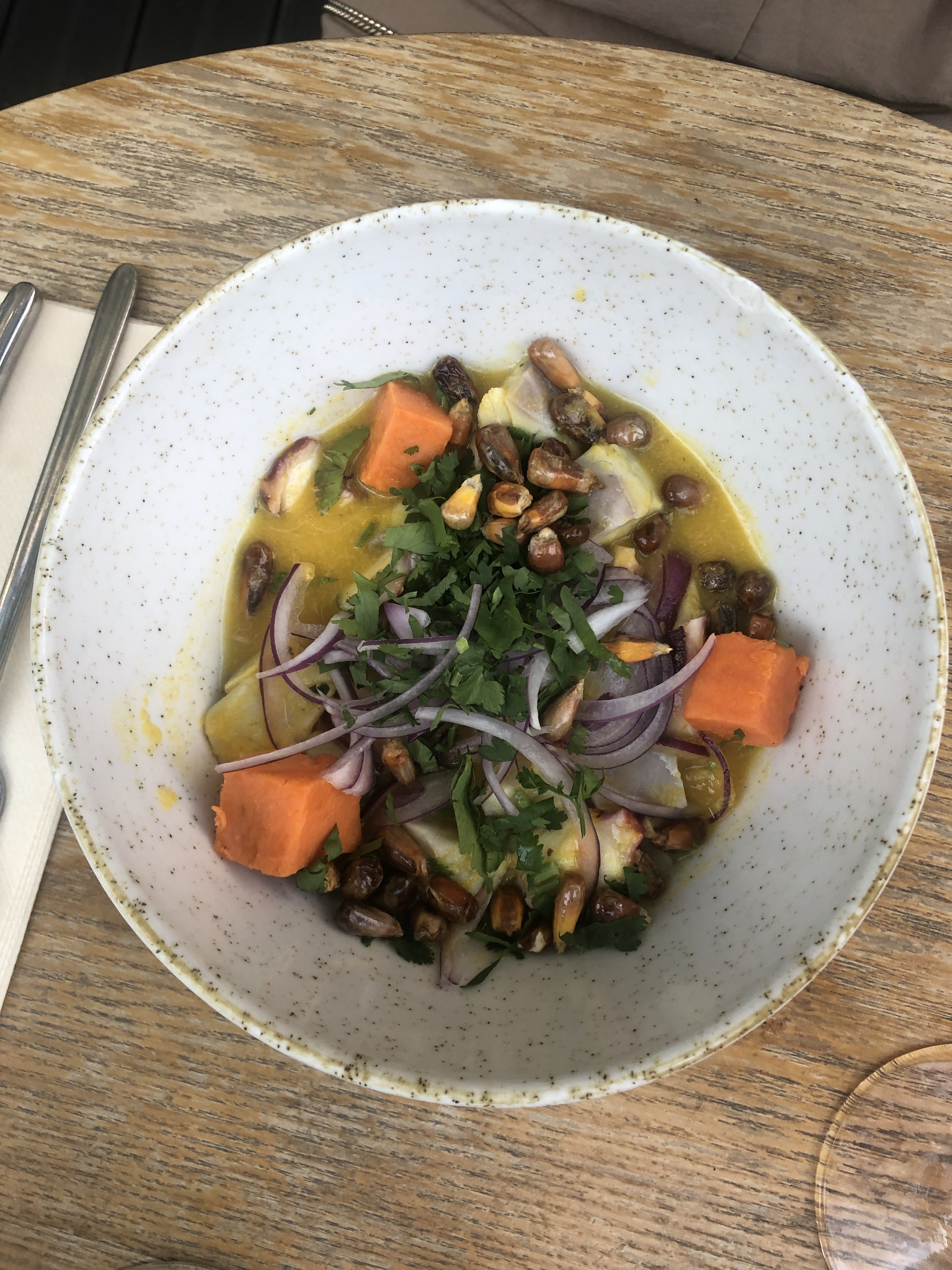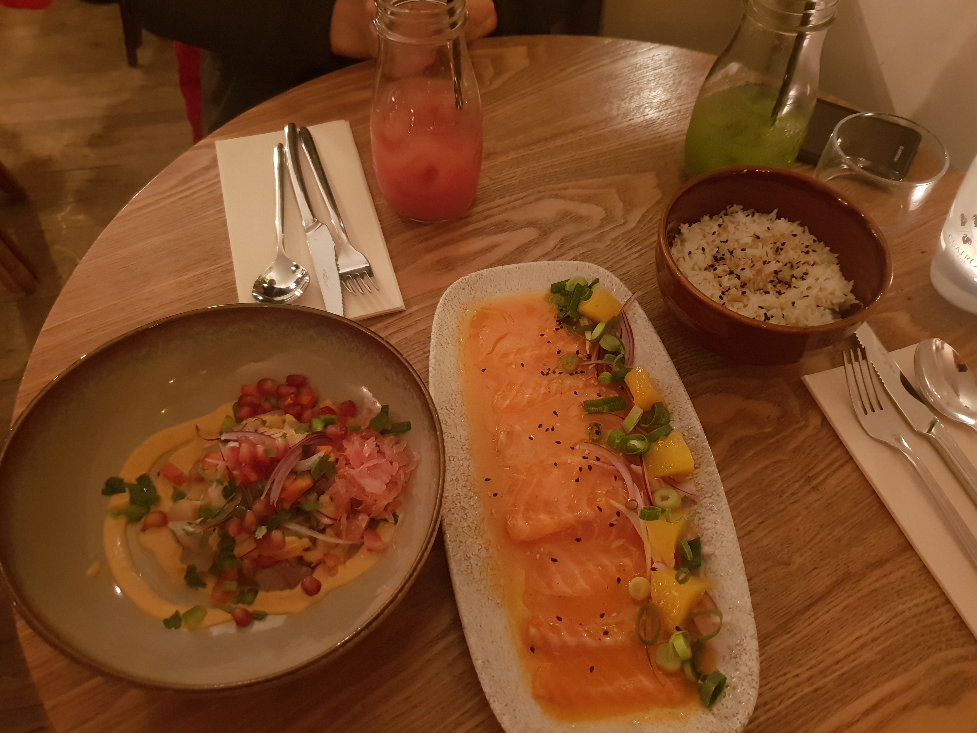 Très bon moments passés avec la serveuse marocaine très sympathique puis avec mes deux amies qui avaient plus d’une heure de retard. Excellent ceviche au thon rouge et remarquable ceviche de poulpe. Restaurant péruvien à recommander !