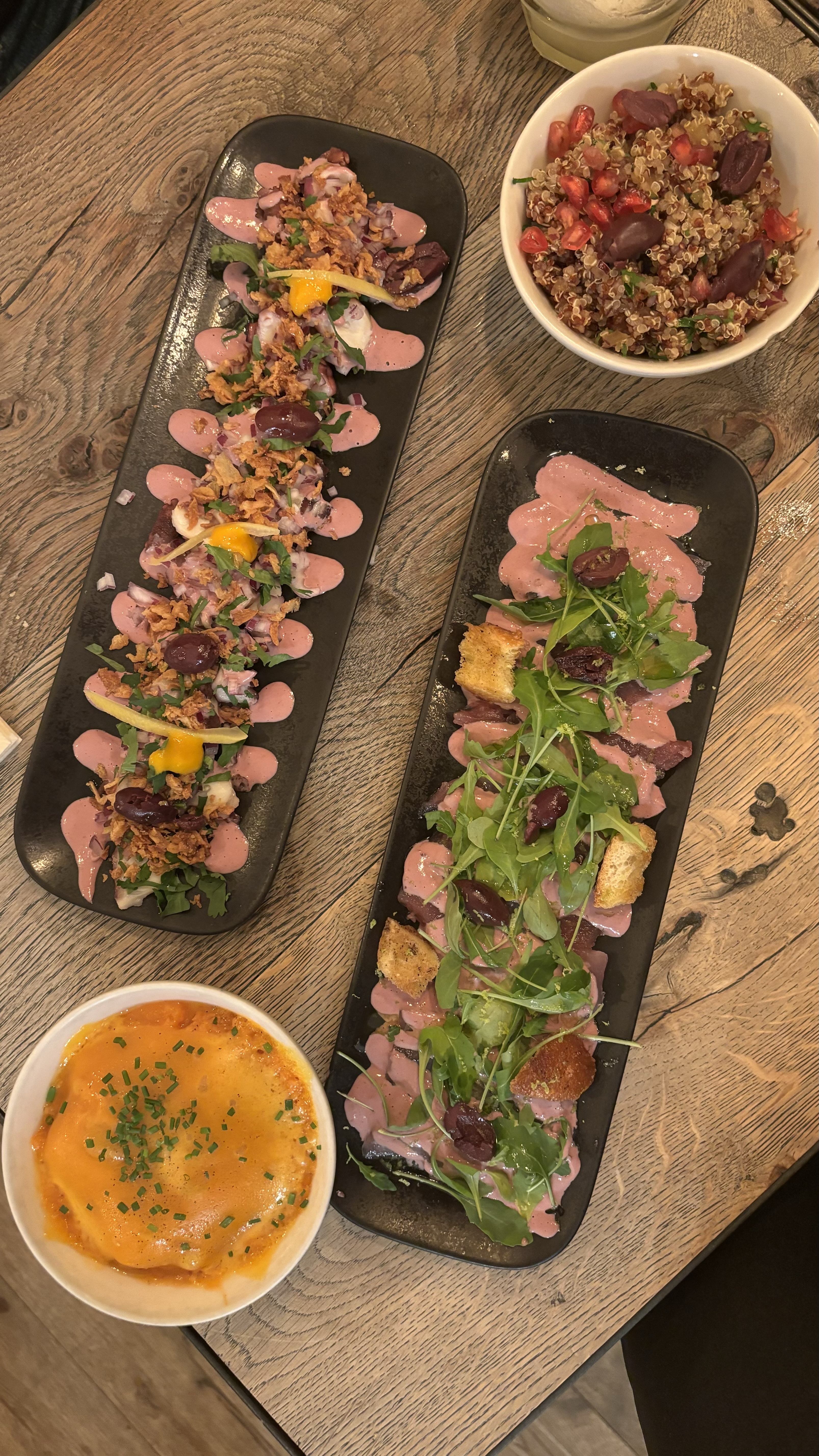 Nous avons vraiment été très bien accueillis. J’étais venue il y a un peu plus d’un an : c’était déjà très bon mais ce soir, c’était fameux. La nourriture était vraiment excellente. Nous avons notamment beaucoup apprécié le rice crispy tuna dans les « à partager » et, parmi les plats, le poulpe Kalamata qui était tout bonnement IN-CRO-YA-BLE ! Les cocktails sont vraiment très sympas aussi. J’ai choisi cette adresse pour l’anniversaire d’un ami et je ne regrette vraiment pas. Toute petite chose à savoir : certains plats sont très acides. Moi j’adore mais il faut s’y attendre car ça peut être un poil surprenant. Pour finir, je dois dire que nous avons eu une serveuse particulièrement adorable : souriante, très douce et de très bons conseils. Un grand merci à Sarah !