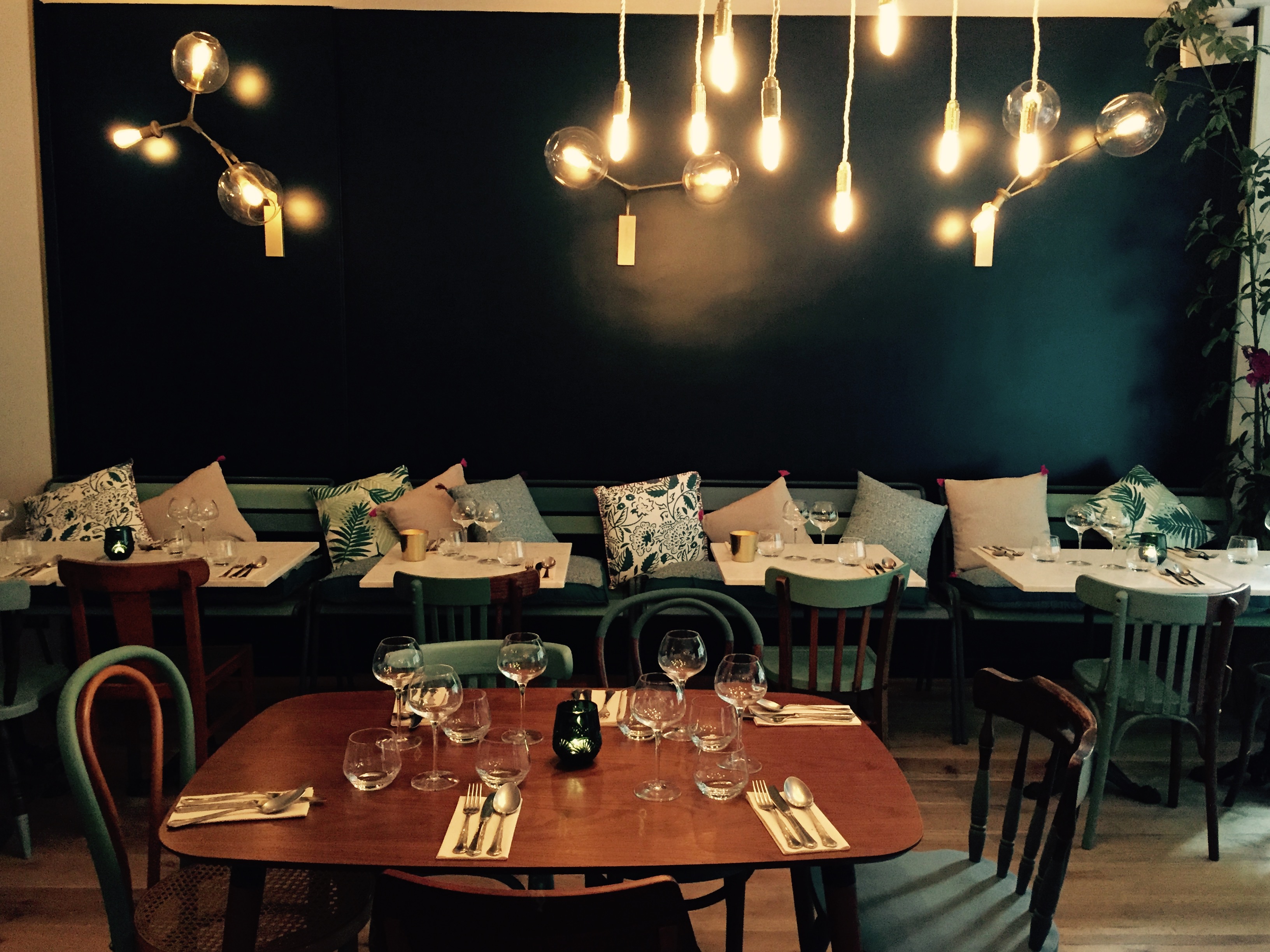 Cadre agréable. Déco tendance. Service jeune. Cuisine aux notes d'Asie (sucré/ salé, épicé). Goûteuse. Fraîcheur des plats. Carte des vins correcte. En revanche bruyant malgré le faible nombre de tables, portions un peu faiblardes, un peu de générosité aurait fait passé la note (2-3 euros de trop par plat). Le prix des accompagnements (toujours en portion trop juste) aurait pu être intégré dans le prix du plat. A essayer quand même.