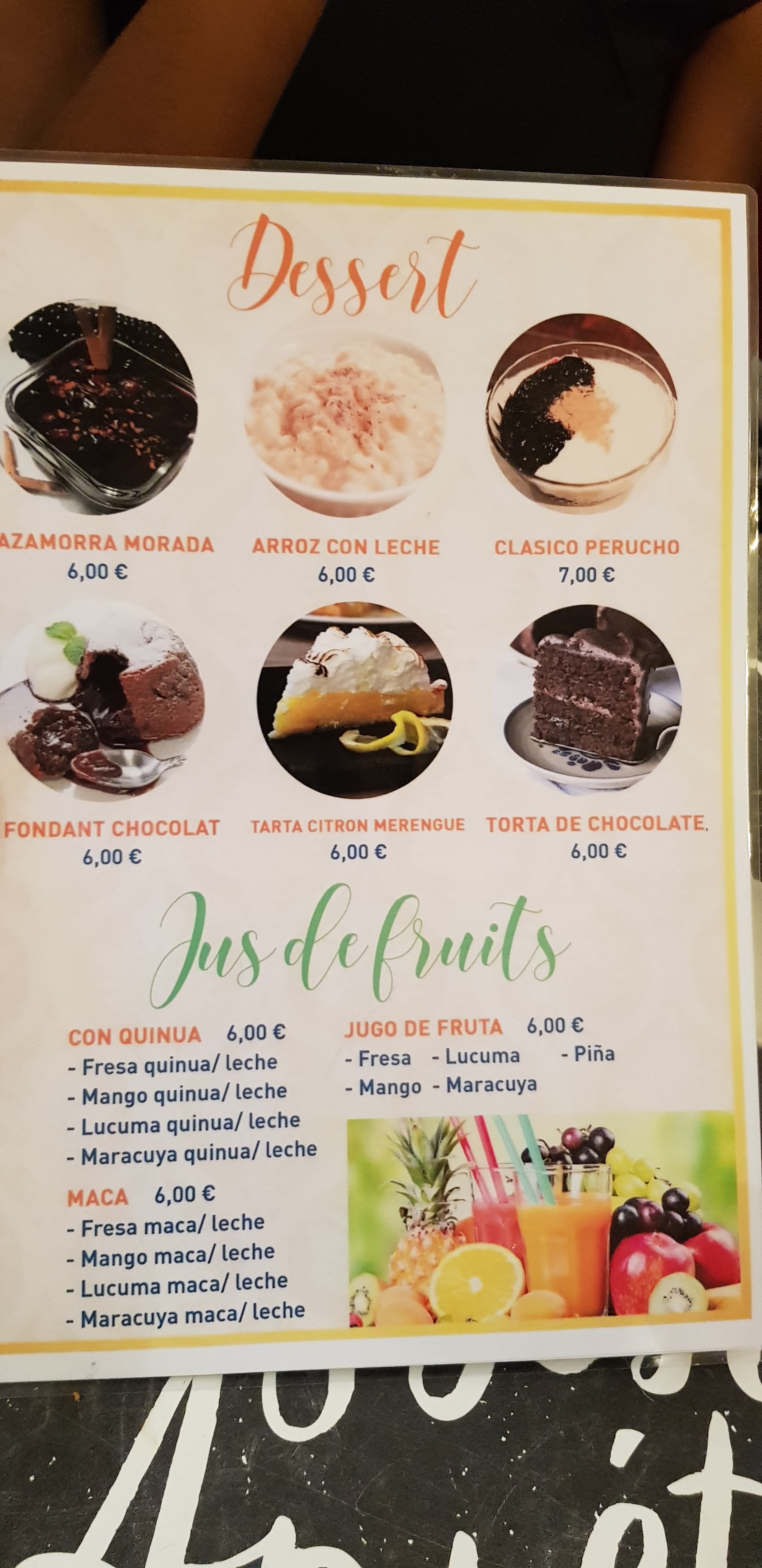 Accueil chaleureux, nourriture délicieuse !! À faire ! Le responsable nous a même mis des musiques péruviennes sur demande ! La boisson au maïs et cannelle est un délice ! Mention spéciale pour la dorade et le dessert au caramel (flan)👌🏼