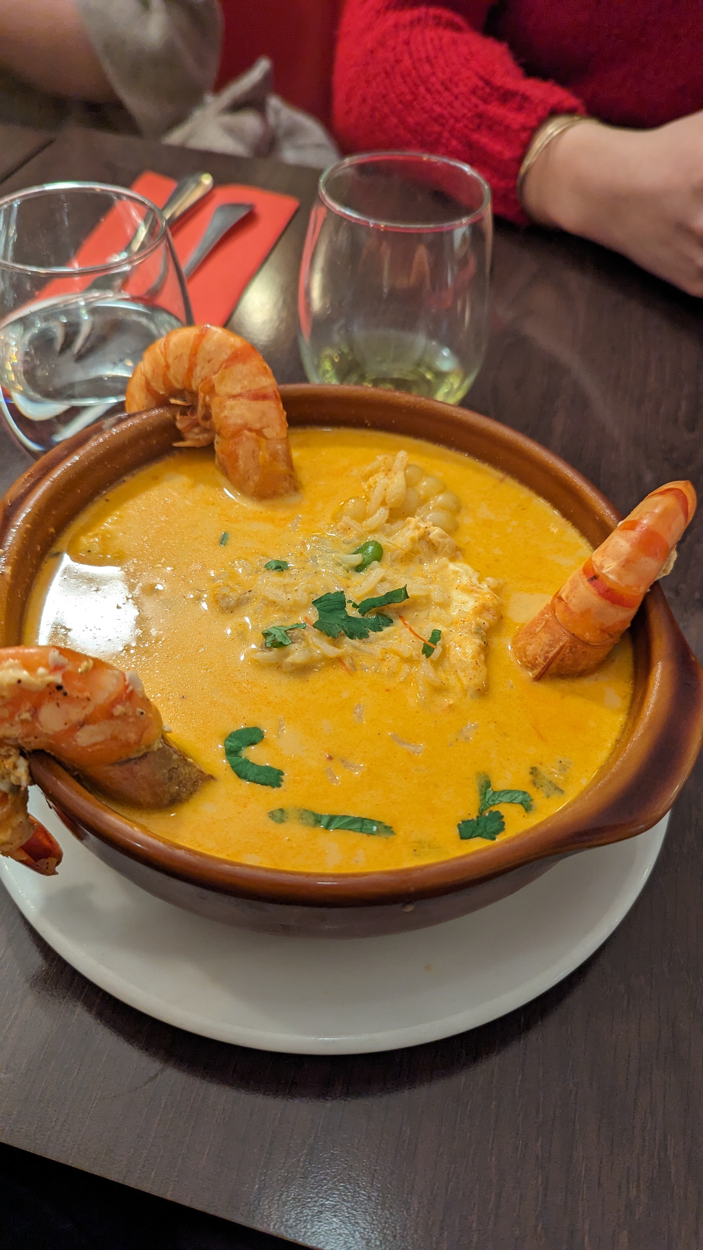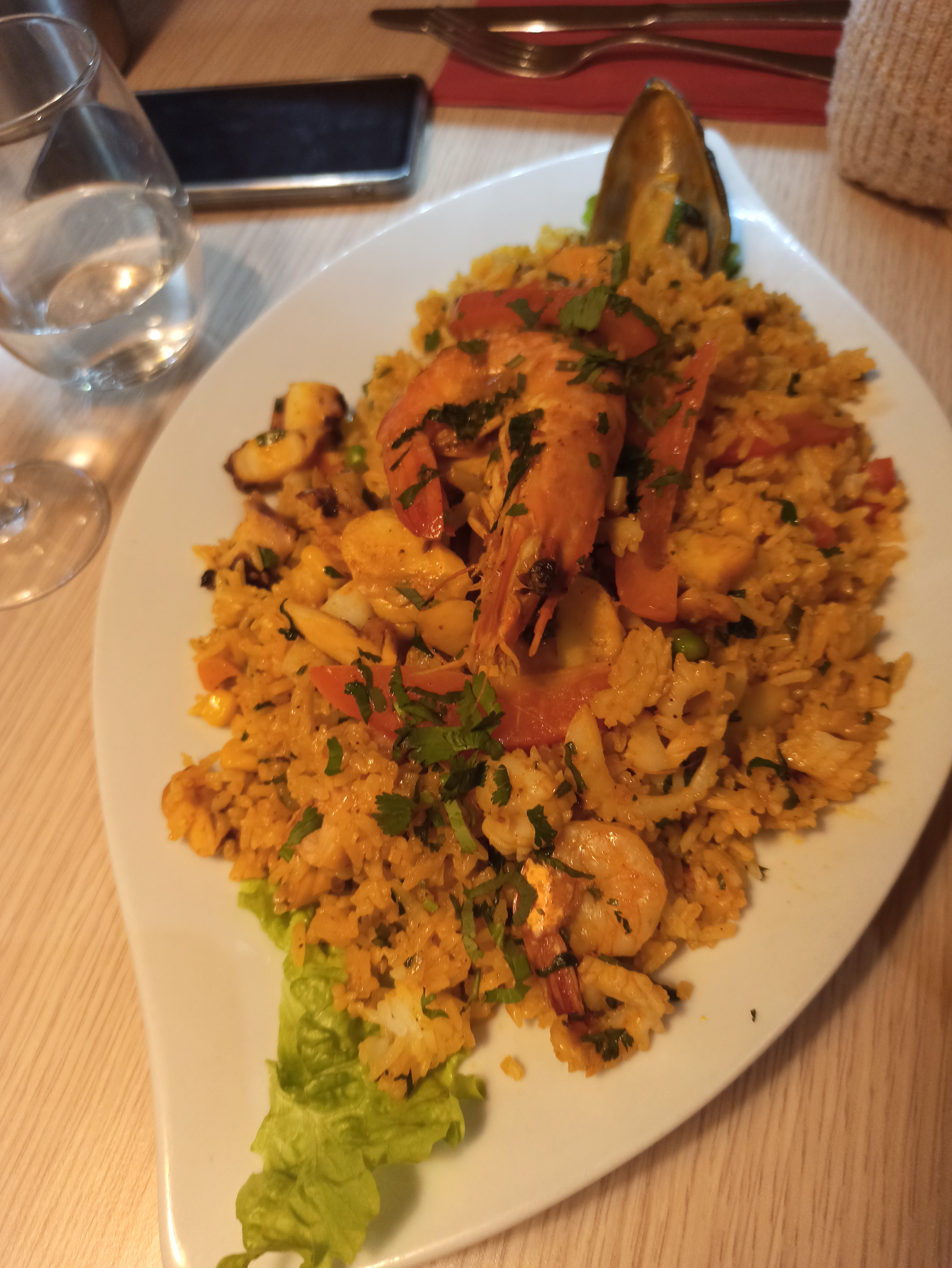 Difficile d’y manger sans réservation. Service moyennement accueillant. Un peu cher aussi entrée + plat + boisson = 30€. Mais meilleur arroz con marisco que j’ai goûté à Paris.