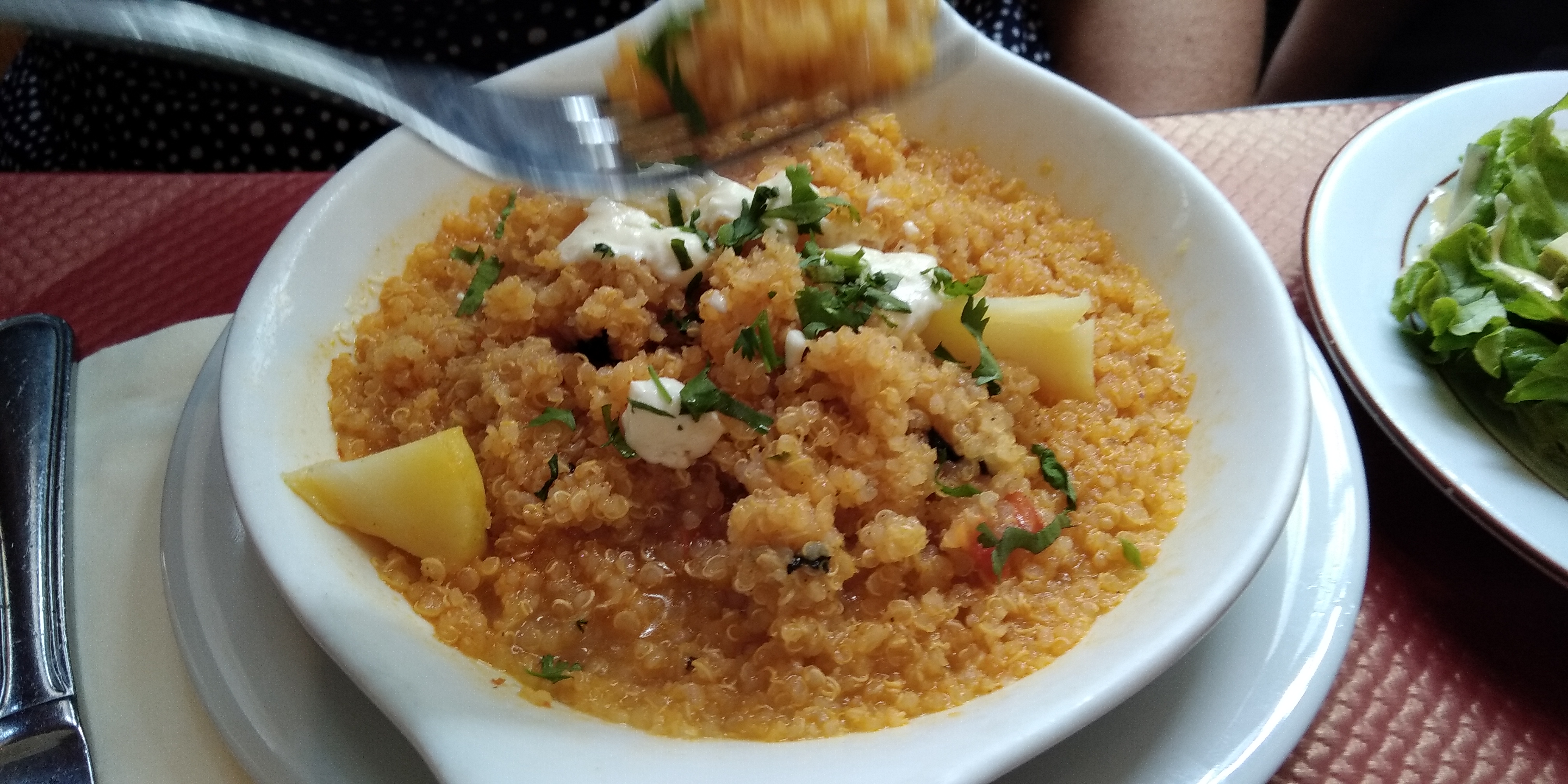 Petit restau sympathique (bon accueil, ambiance), mais la cuisine n’est pas au niveau : plats très simples voire basiques , bien moins bons qu’en Amérique latine (pour comparaison), et pas très goûteux… C’est dommage. Un réel effort serait nécessaire au niveau cuisine.