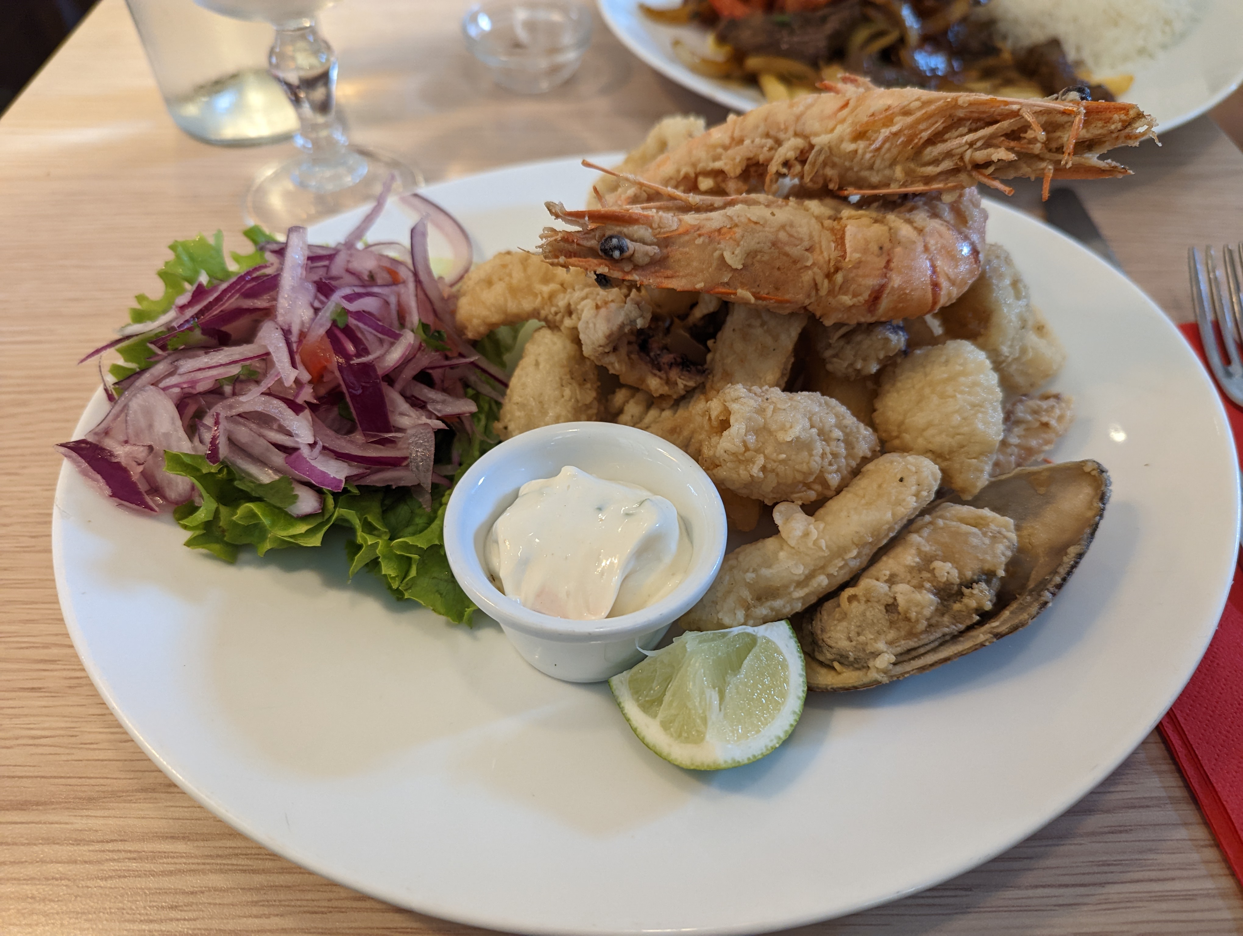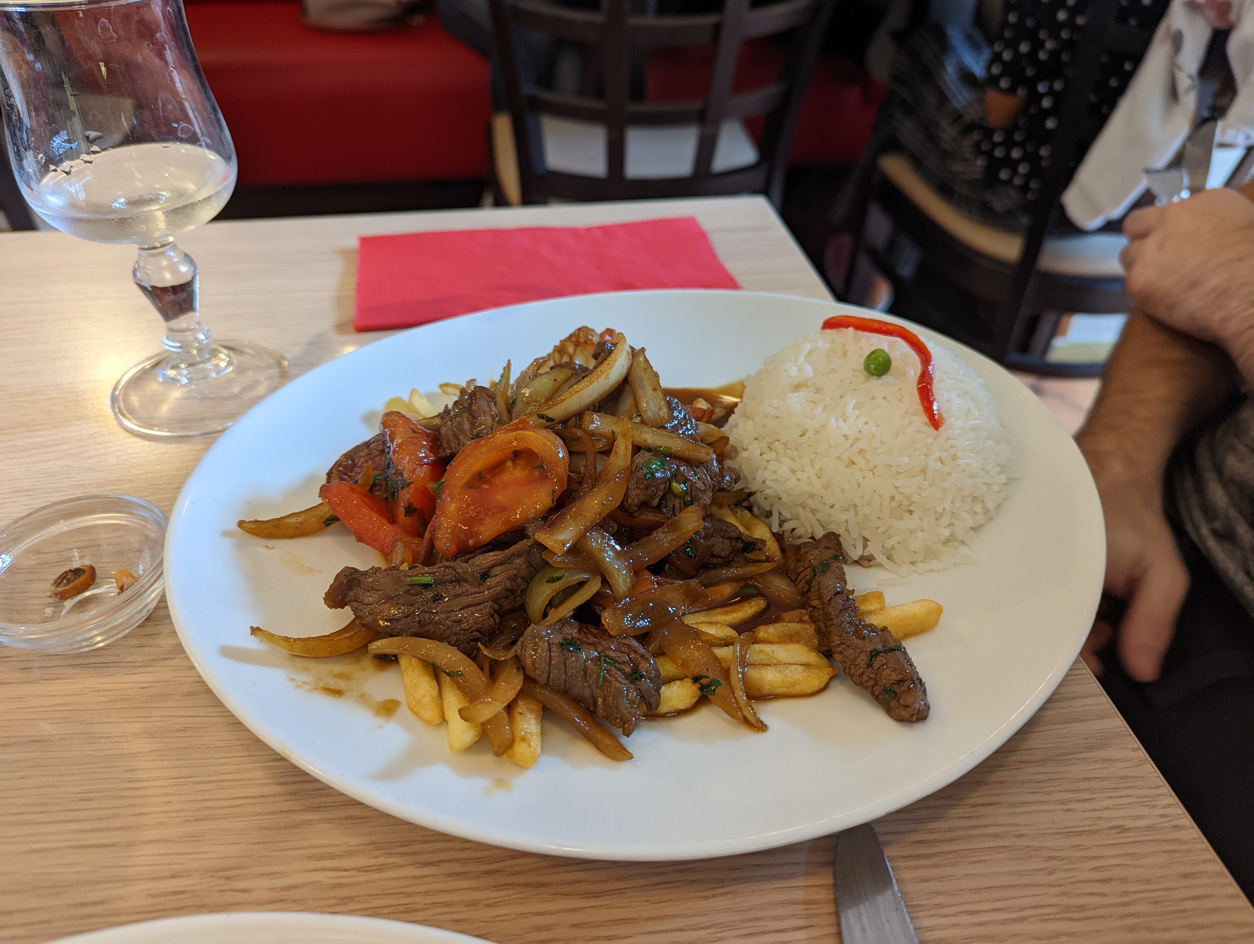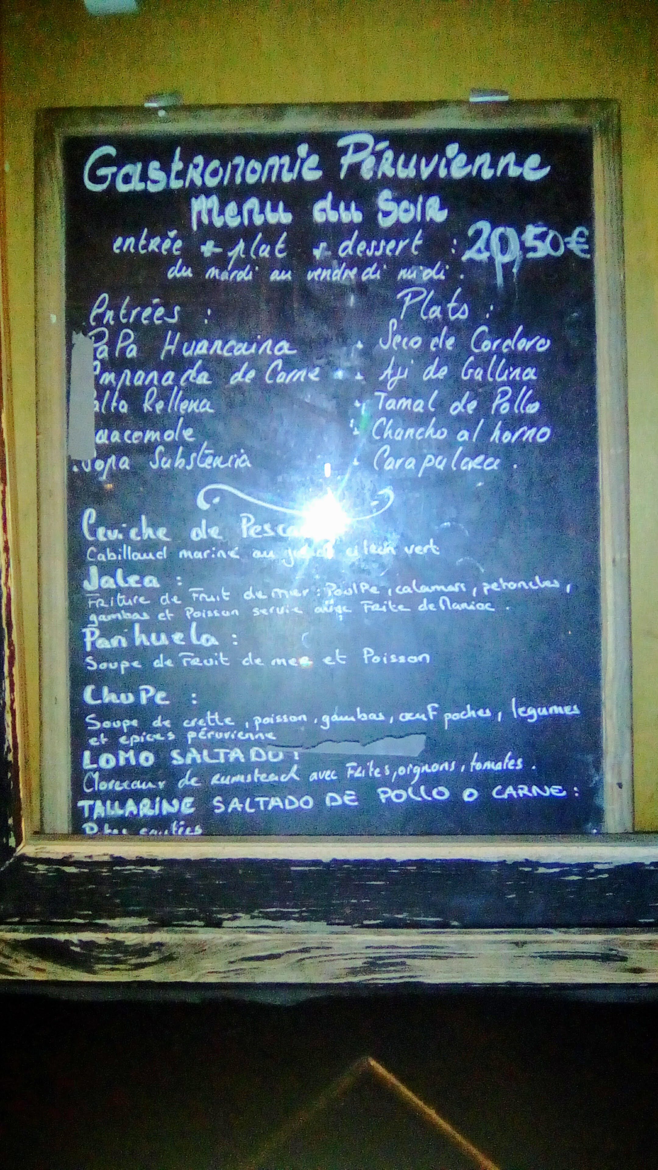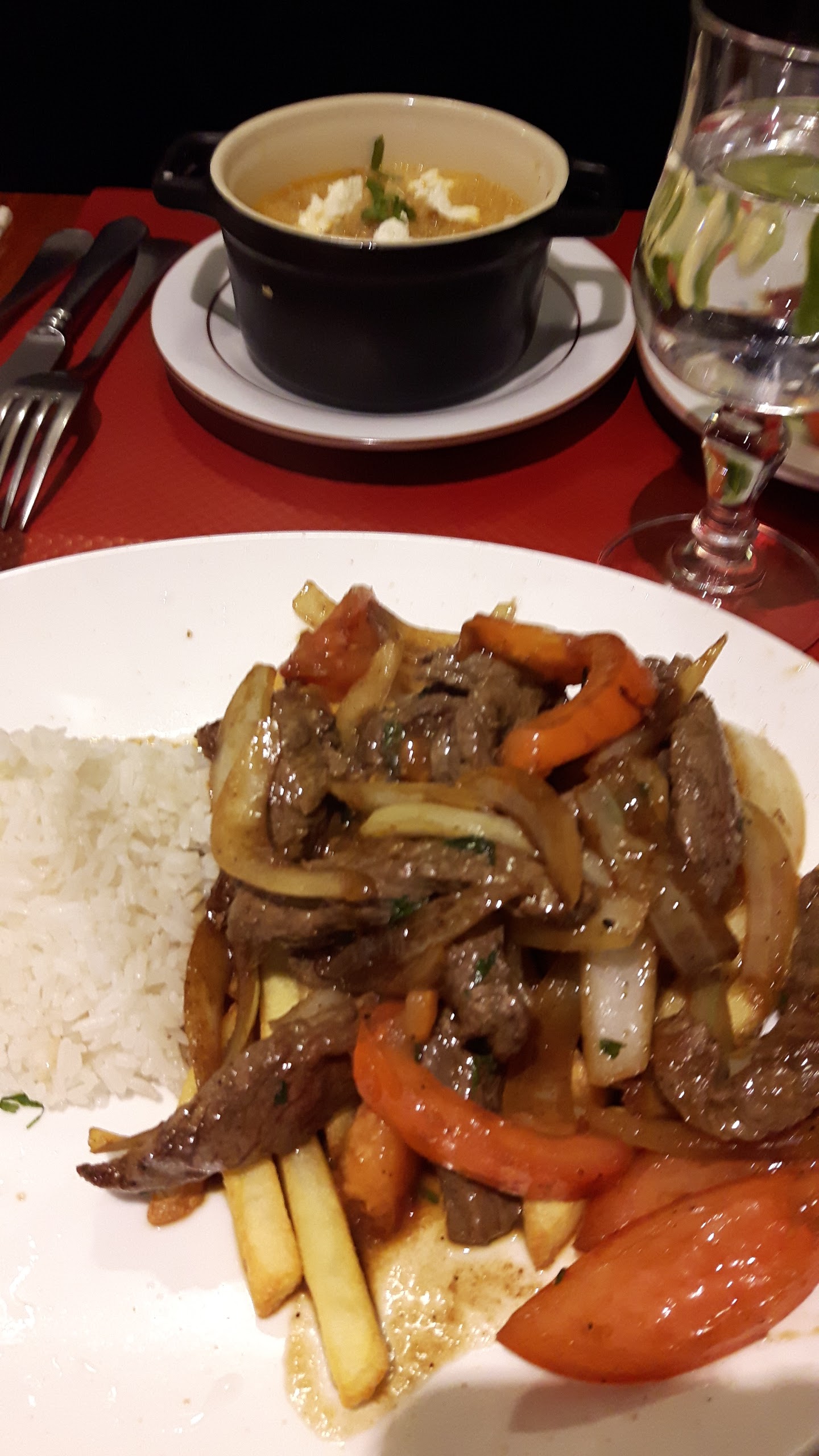 Dimanche, 15h30, affamés, ou manger ? Tiens, péruvien, ça vous dit ? C'était excellent, copieux, goûtu, une pointe de piment qui chauffe pas ( je mange pas épicé du tout ), bref que du bonheur ! Seule remarque : une option végétarienne pourrait probablement être développée sur certains plats pour éviter a nos amis végé de faire avec des frites, du quinoa et une salade ( même si les trois étaient très bien aussi )