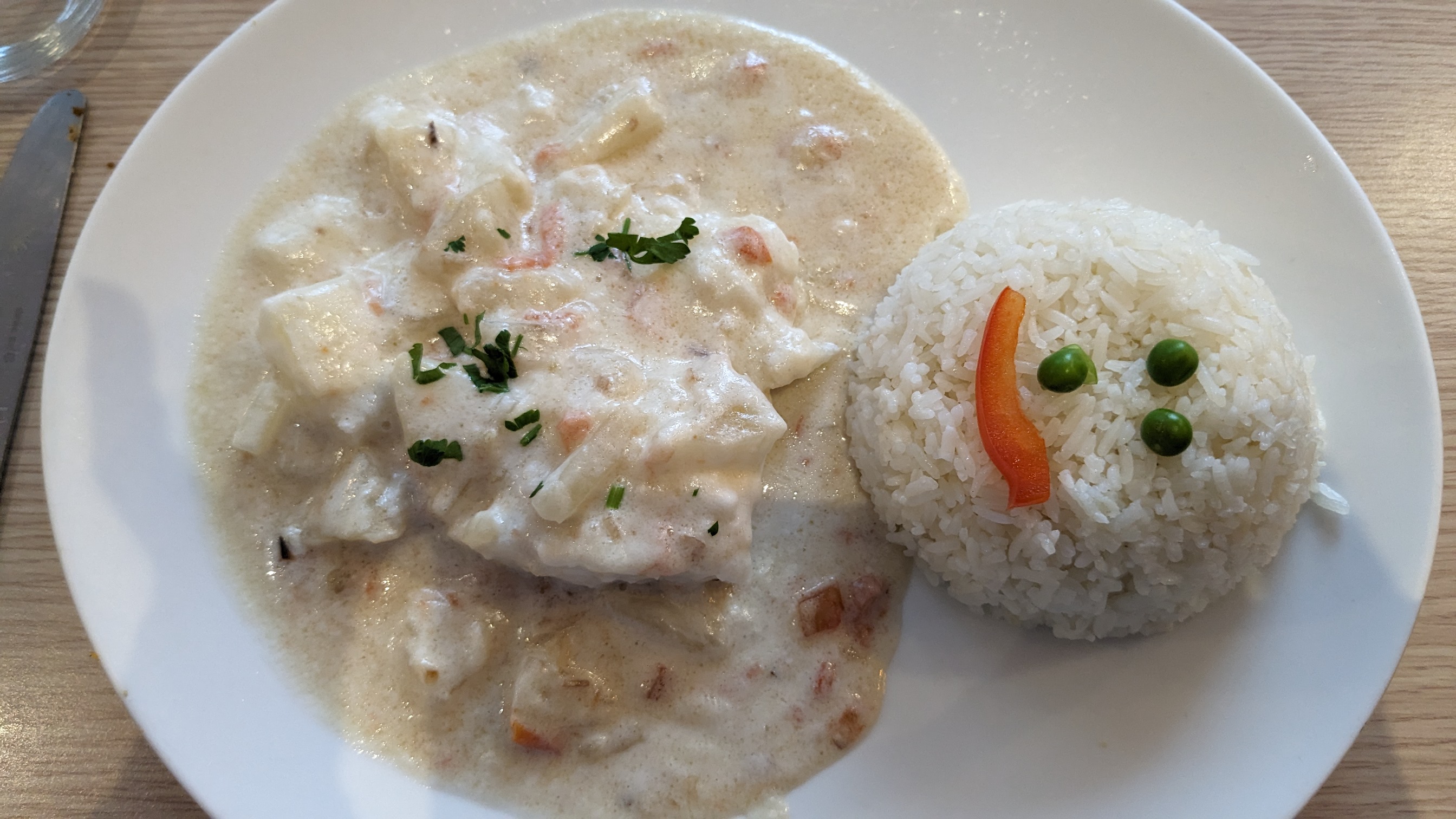 Trop cher pour ce que c'est un plat à 18 avec beaucoup de riz et peu de viande si il y avait 100 g c'est le maximum un plat avec du cabillaud surgelés et 4 petit morceau de magnoc a 22 euros. Pas de menu le vendredi et samedi soir mais c'était pas affiché sur la carte dommage