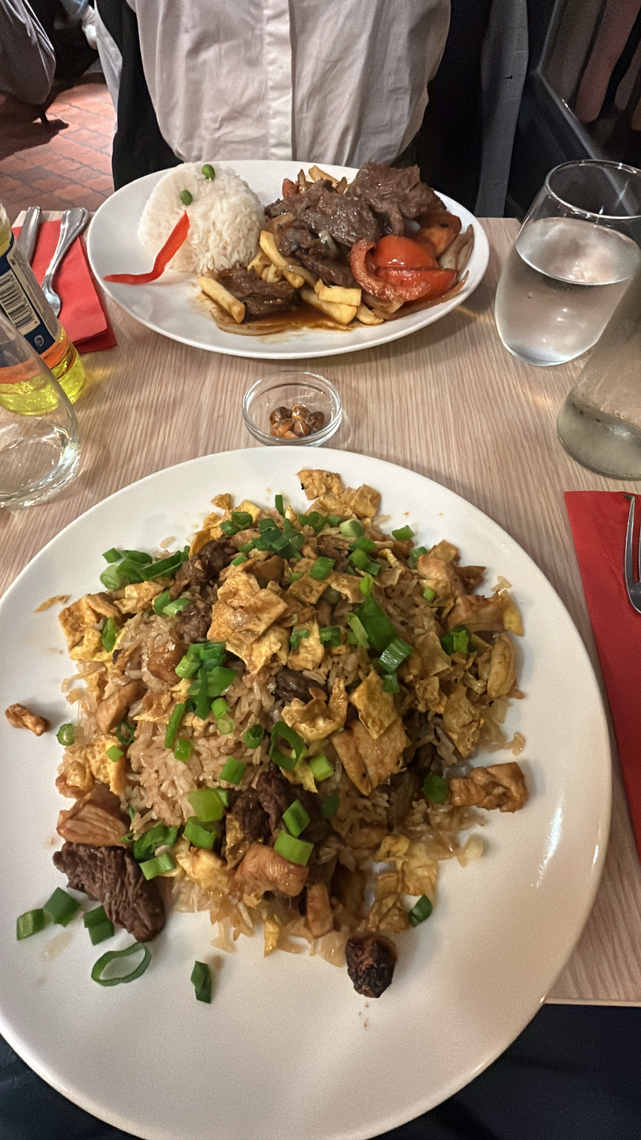 Des très bon cuisiniers péruviens, Plats (tallarin saltado, arroz chaufa )bon accueil, le point un peu négatif cest le sanitaire l'extérieur et petit,mais avec un peu de décoration à l'extérieur et intérieur de sanitaire, sera plus agréable.