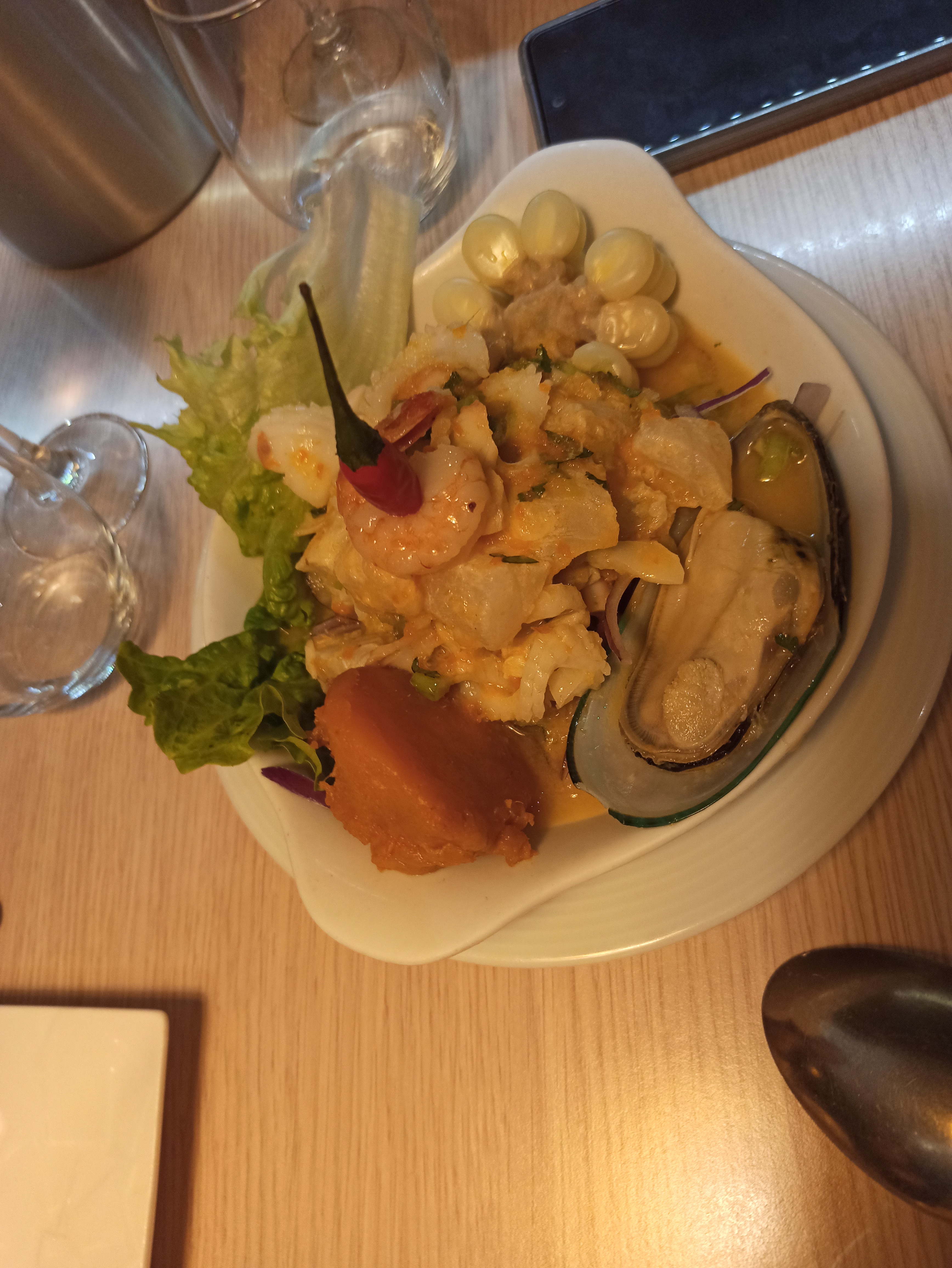 Personnel chaleureux, ravie d'avoir découvert la nourriture péruvienne, j'ai commandé un ceviche mixto, c'était super bon ! Je recommande vivement 👍