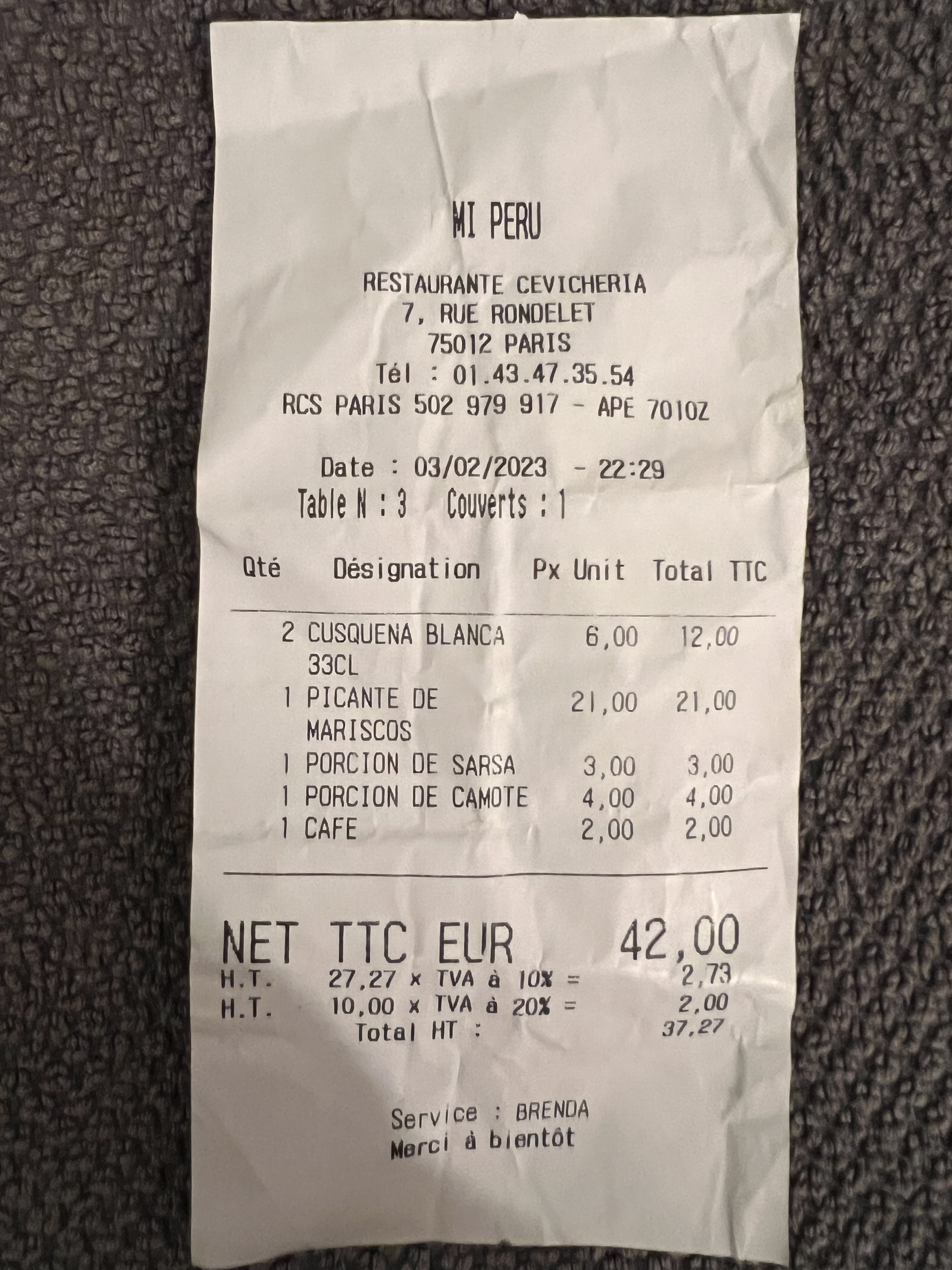 Ce restaurant est tout simplement une perle ! Ouvert depuis 17 ans, la qualité de la cuisine péruvienne traditionnelle qu’on y sert est unique à Paris. Ajoutez à cela des plats copieux, et un service en or, et ça en fait une des meilleures adresses de la capitale. Je recommande chaudement !