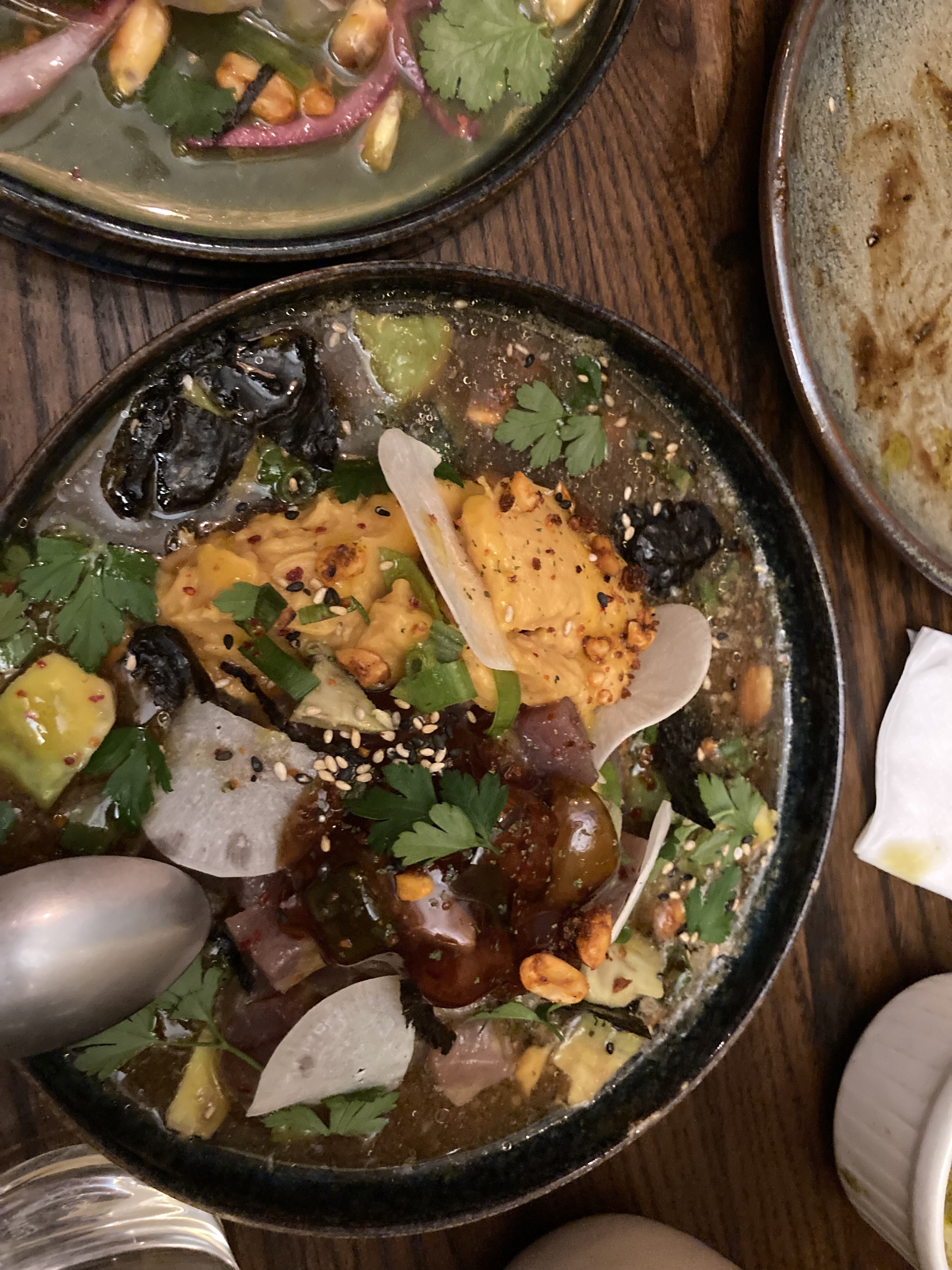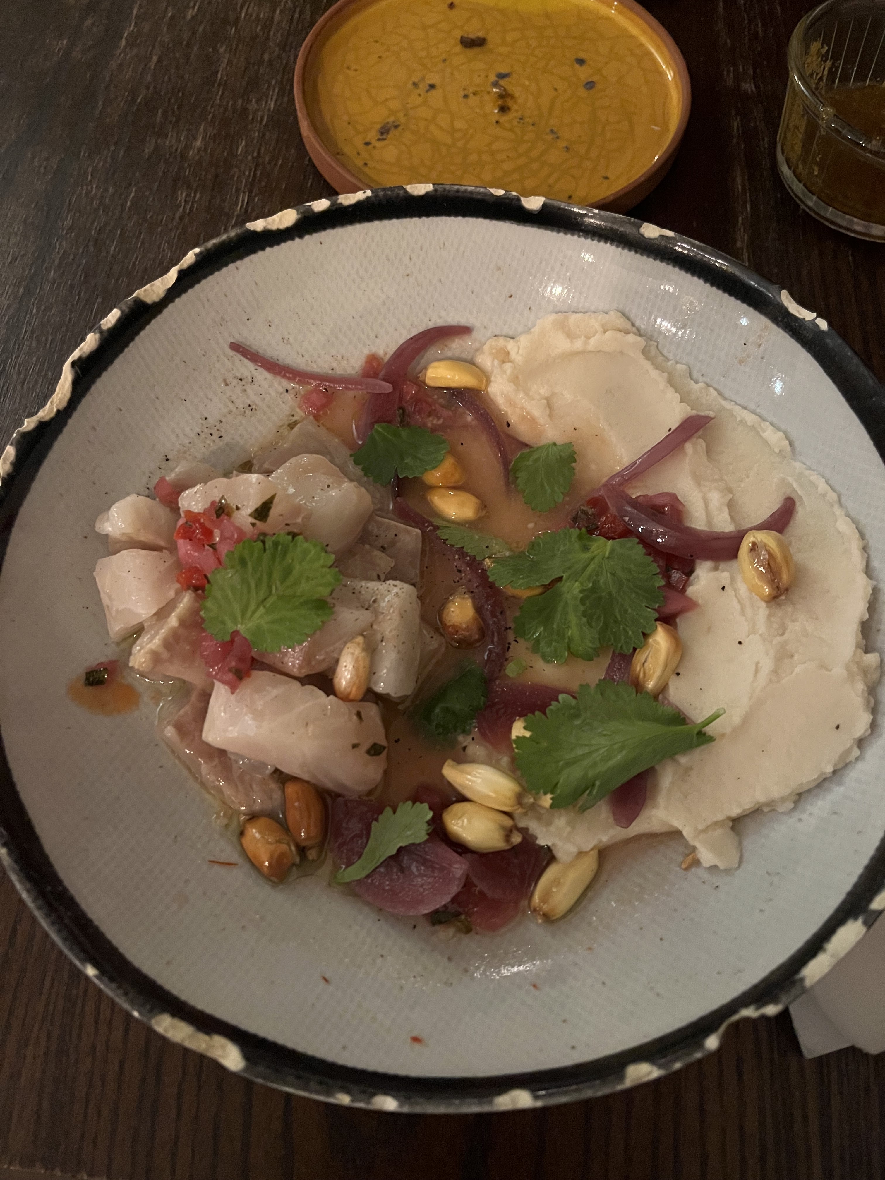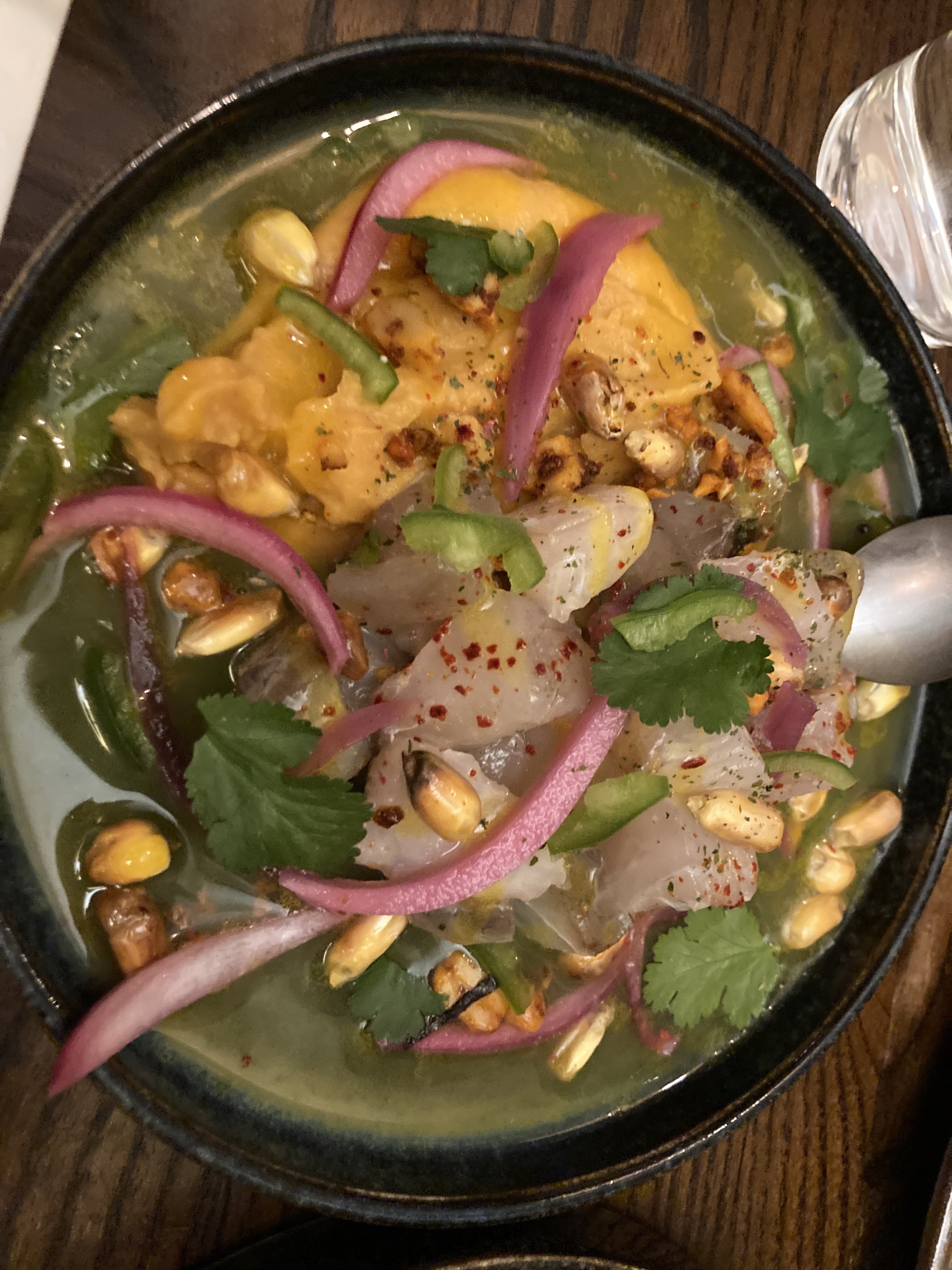 Moi je viens du Pérou, cuisinier. J'ai commendé Ceviche dorade! La fusion du celery rabe coco à la leche de tigre est odacieux mais magnifique, c'est la classe! Je me suis bien régalé.