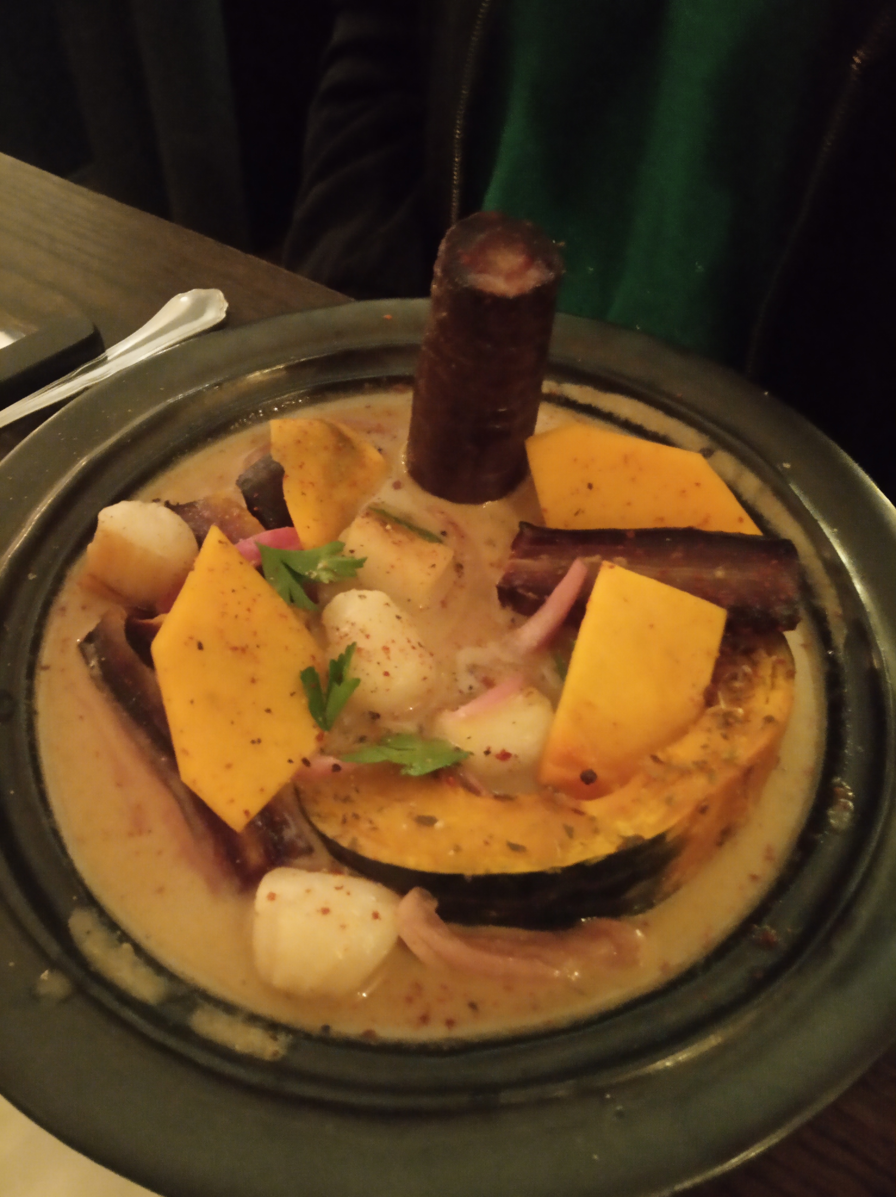 C'est une expérience assez mitigée que nous avons connue là, et j'ose espérer que ce n'est que passager pour ce restaurant : Nous avons été accueillis par une personne qui semblait être en mal être personnel (elle était physiquement là mais pas là dans sa tête). Et tout le service a été ponctué par des interactions lunaires. Heureusement qu'une autre personne était présente, qui faisait l'interface entre cuisine et service. Les plats sont des inspirations de la cuisine péruvienne. Ils arrivent assez vite. Le dressage est bon. Toutefois, les cuissons et les températures sont inégales et perfectibles. J'ai trouvé certains plats un peu trop salés. Vous pourrez faire l'expérience d'un pisco saur ; cela dit, 11€ pour un 10cl leger en pisco c'est rude. Globalement je loue toutes bonnes intentions de ce restaurant, mais les défauts gênants se sont cachés dans les détails...