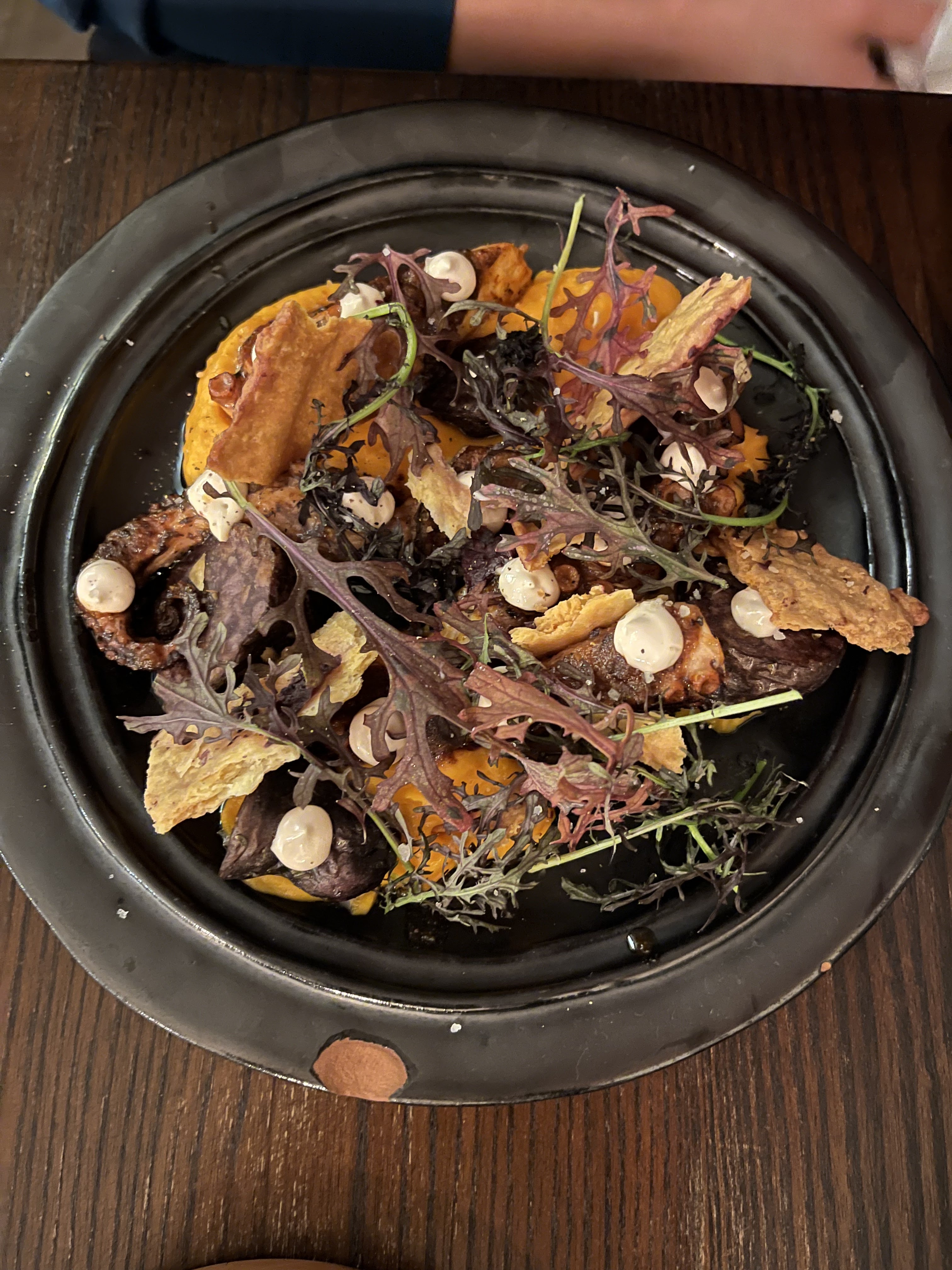 Nous avons dîné à 3. Le restaurant n’était pas rempli (pas de surprise pour un Lundi soir). Cadre agréable et cuisine au top! On a testé le canard, le porc et le poulpe. Le grand gagnant est le poulpe, cuisson parfaite! Mais les autres plats sont très bons. Les serveurs étaient sympa et efficace