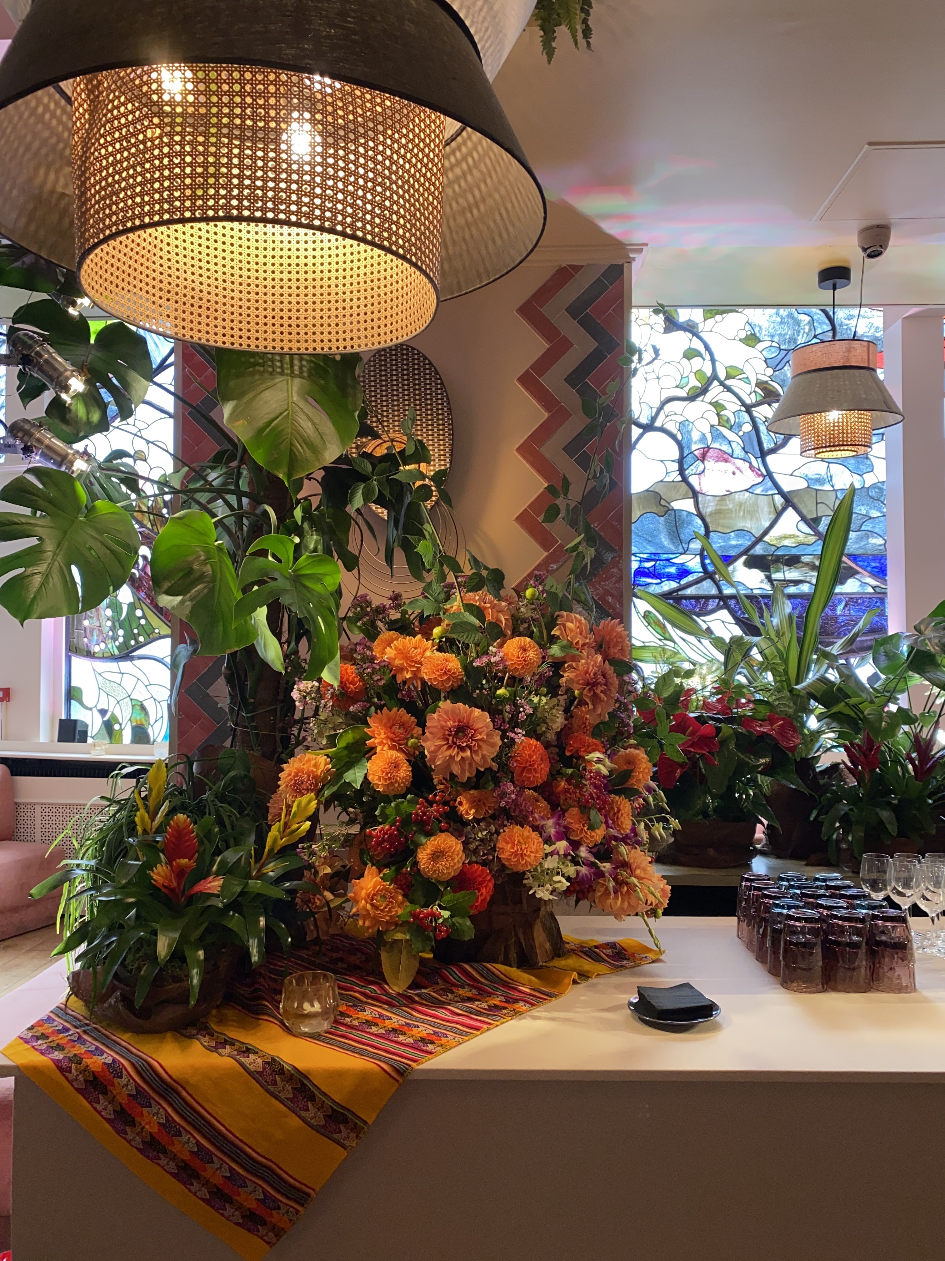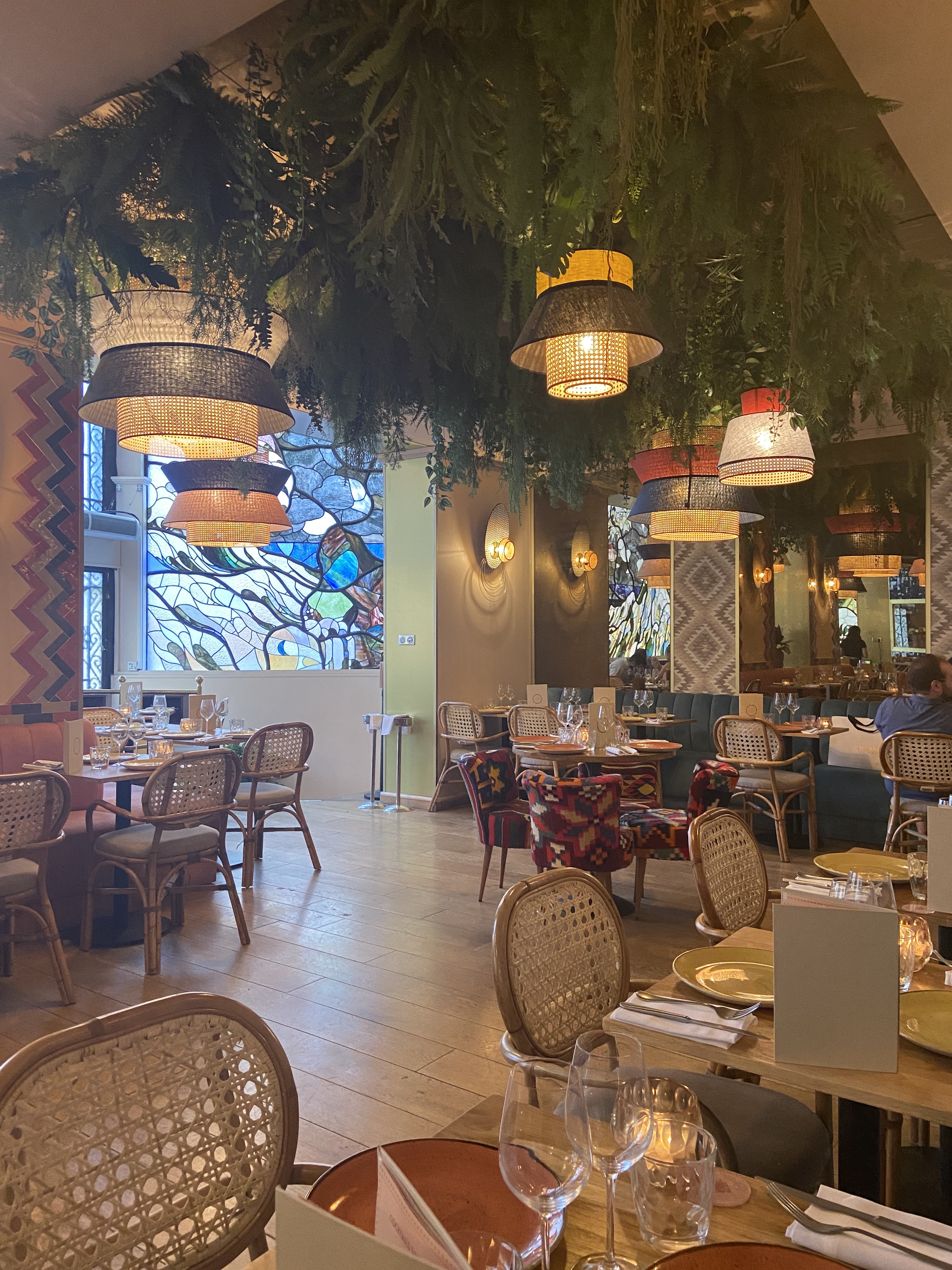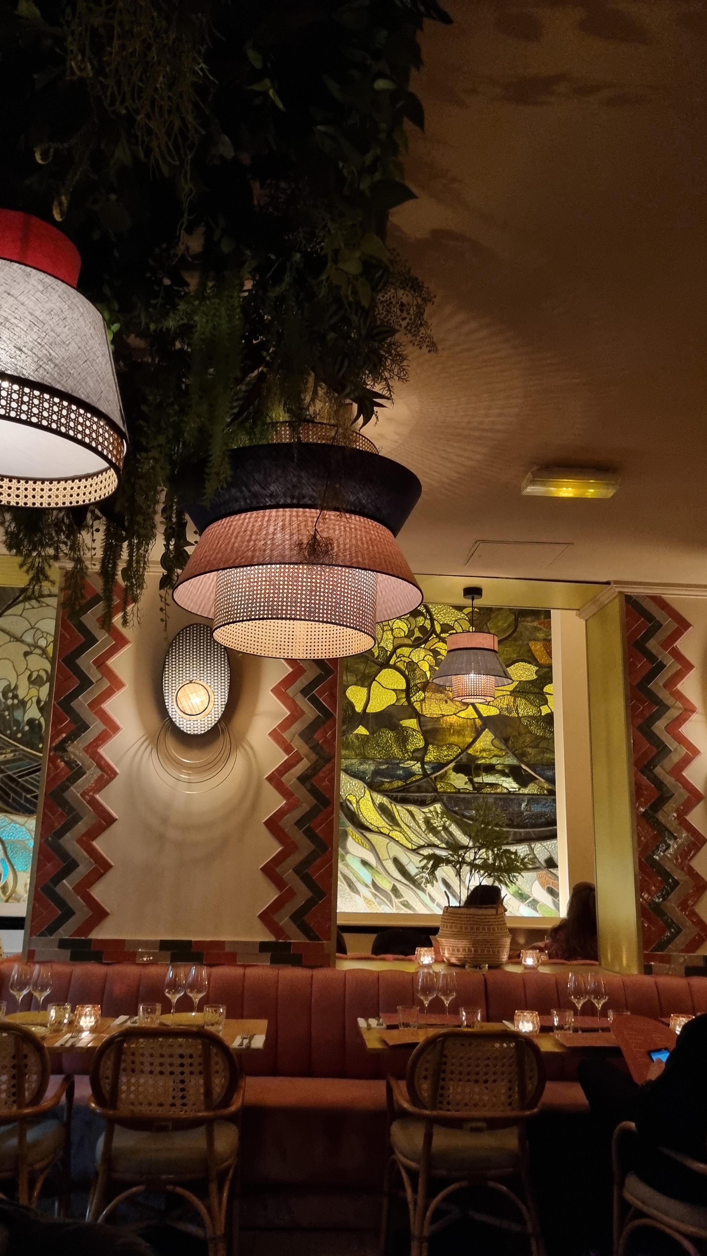 Très bel endroit, décoré avec de jolies plantes suspendues au plafond et des vitraux magnifiques. Nous sommes venus un soir de semaine, lorsque le restaurant était plutôt calme. Service agréable. Nous avons opté pour le cocktail tequila maracuja infusé au piment et le risotto shiitake avec poulet façon Nikkei. Boissons et assiettes originales, bien présentées, intéressantes gustativement et surtout très bonnes : produits qualitatifs et épices parfaitement dosées pour un résultat surprenant et harmonieux. Vaut le détour, surtout si vous souhaitez découvrir de nouvelles saveurs. Je reviendrai !