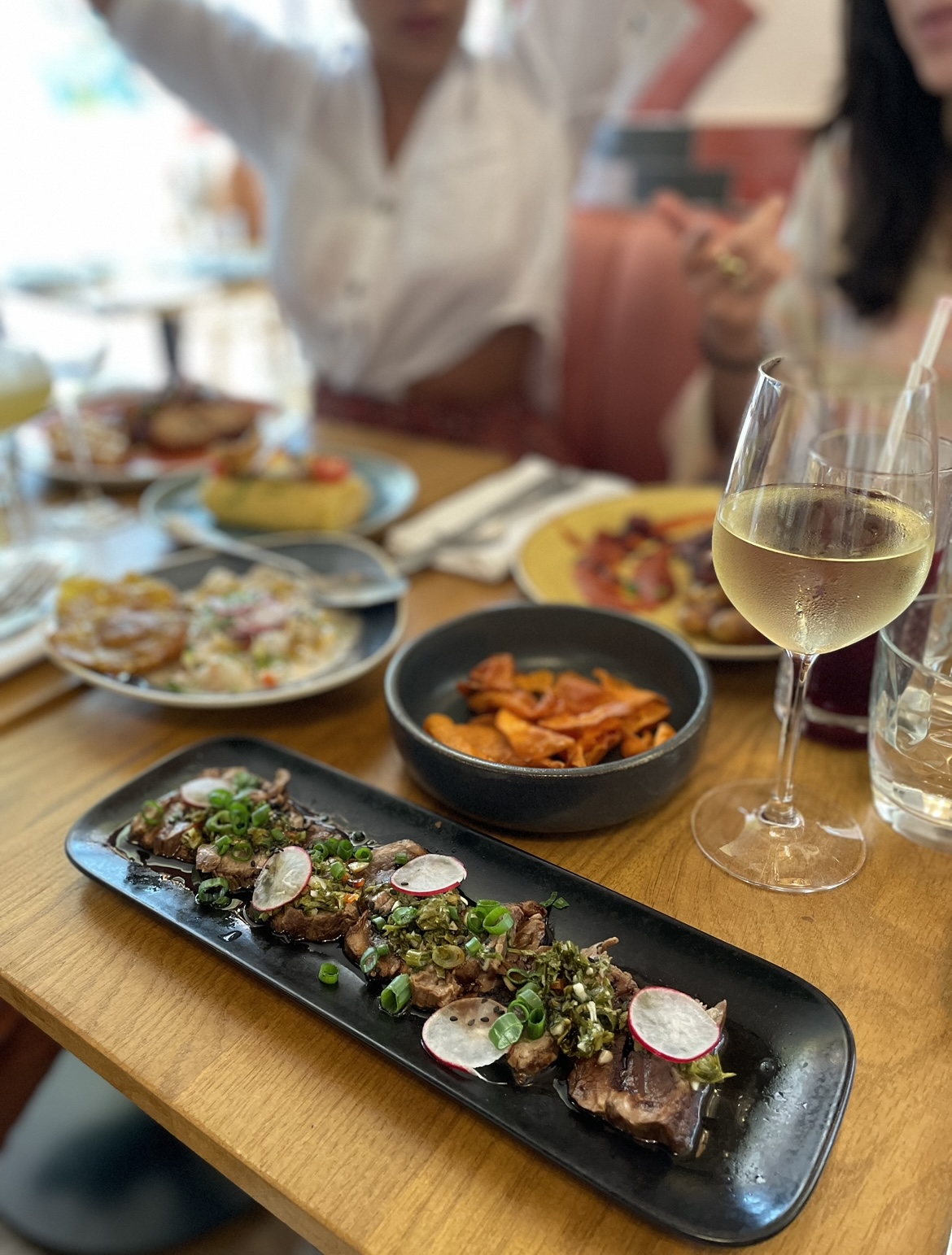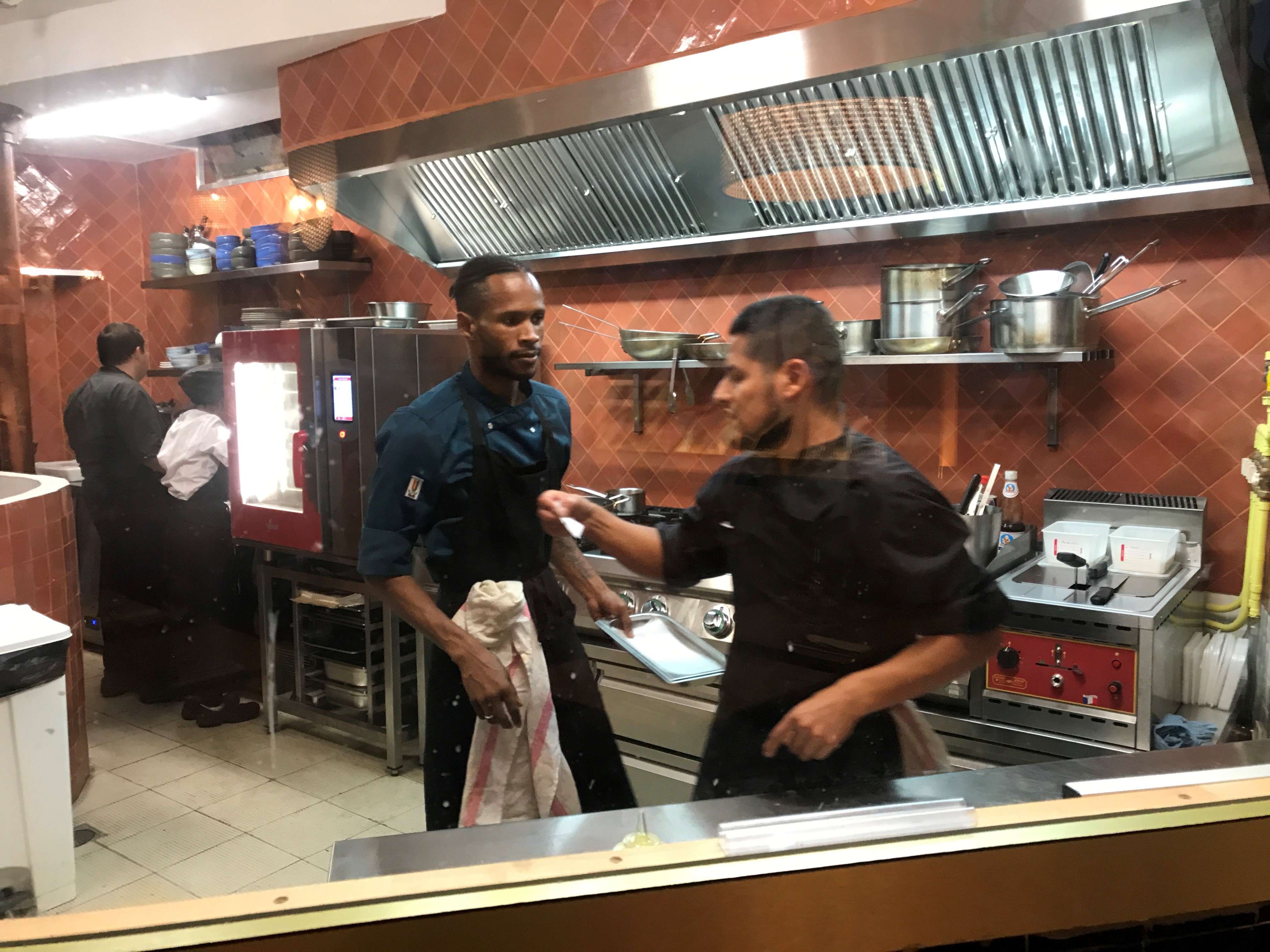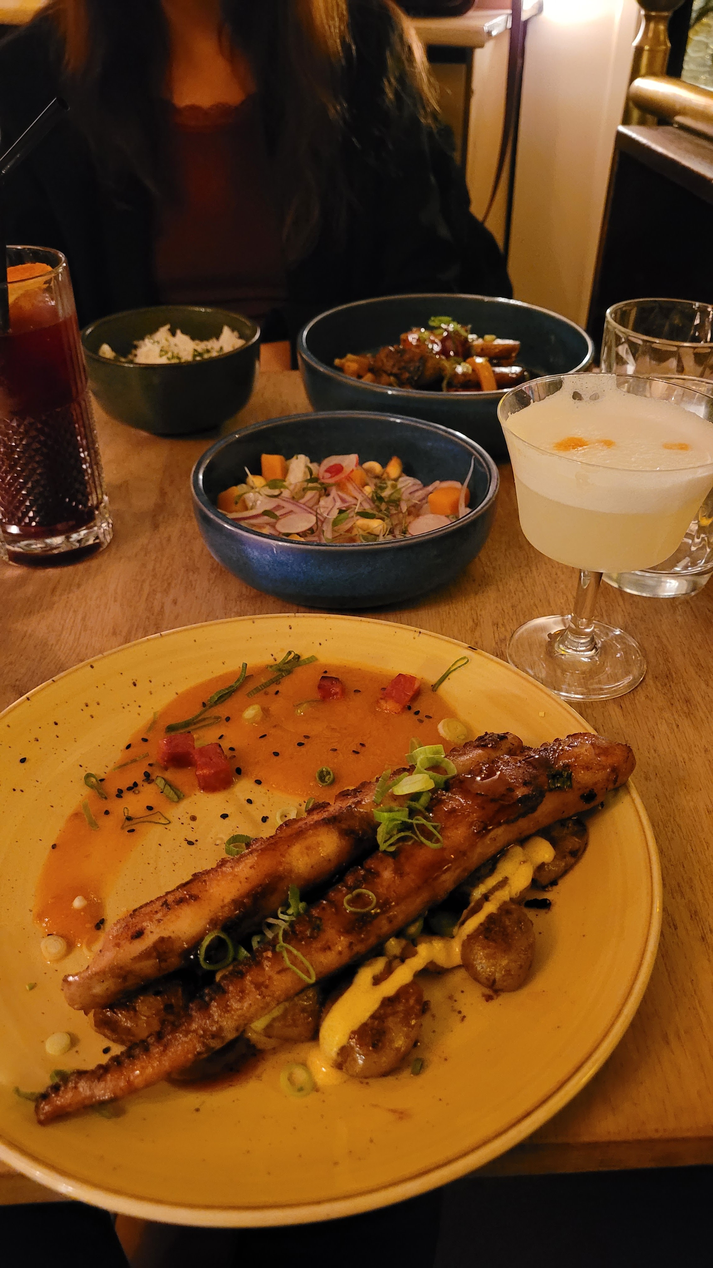 Restaurant joli , bonne nourriture et serveus sympas par contre quelques bémols… - Nous étions 3, nous avons été placés sur une table face au mur et en plus comme elle était “caché” le serveur ne nous voyait pas et on a dû aller chercher quelqu’un après 15’ , peu charmant… On a demandé un changement et heureusement on a pu changer très rapidement! Je pense que ce table là ne devrait pas s’utiliser - Repas bon mais très peu copieux vu les prix. 50€ par personne avec: 2 entrés a partager, 1 plat par personne , 1 dessert a partager & 3 cocktails. - Les plats sont arrivés avant que les cocktails - Service sympa mais lent, ils avaient l’air d’être debordés..