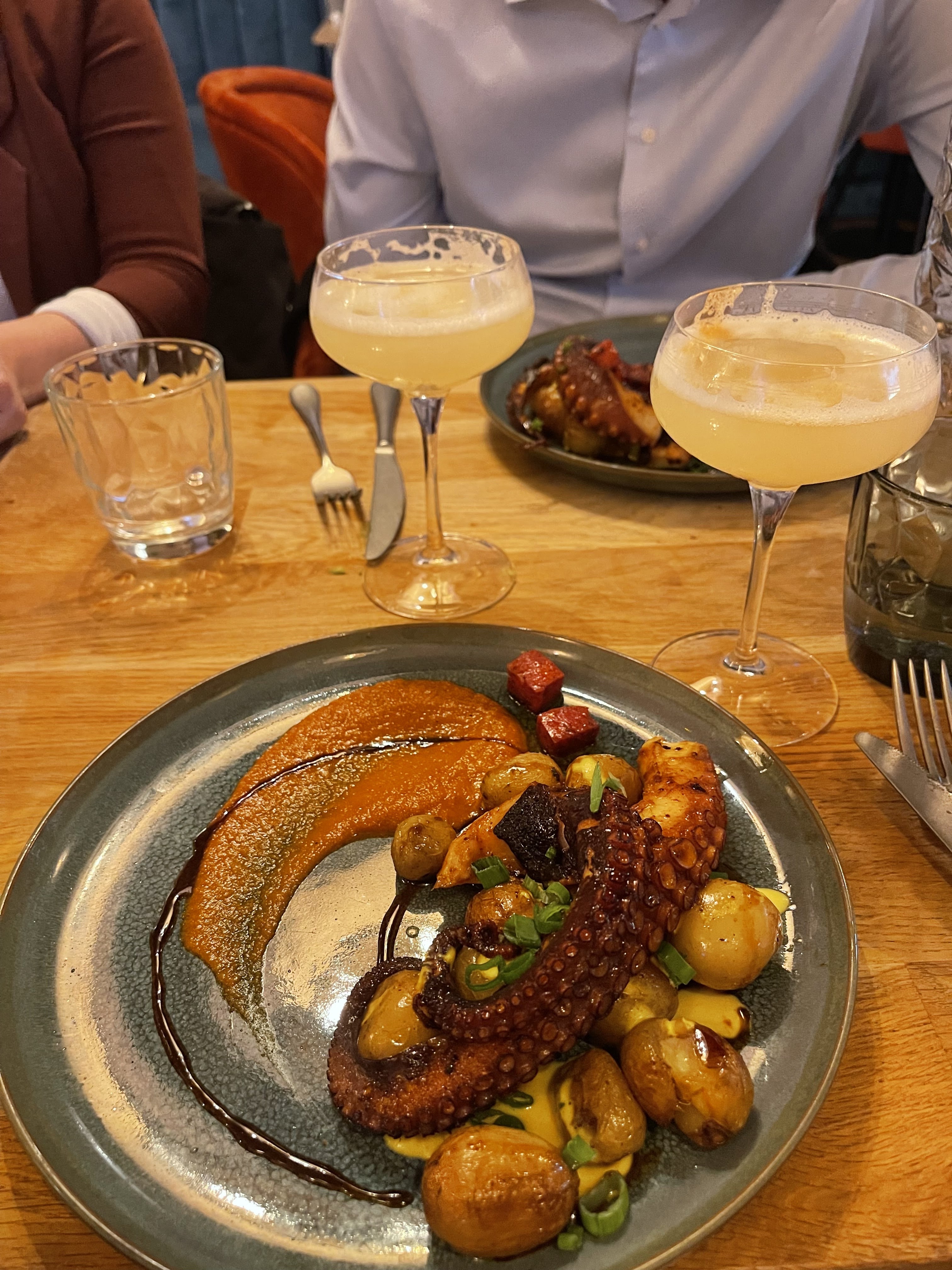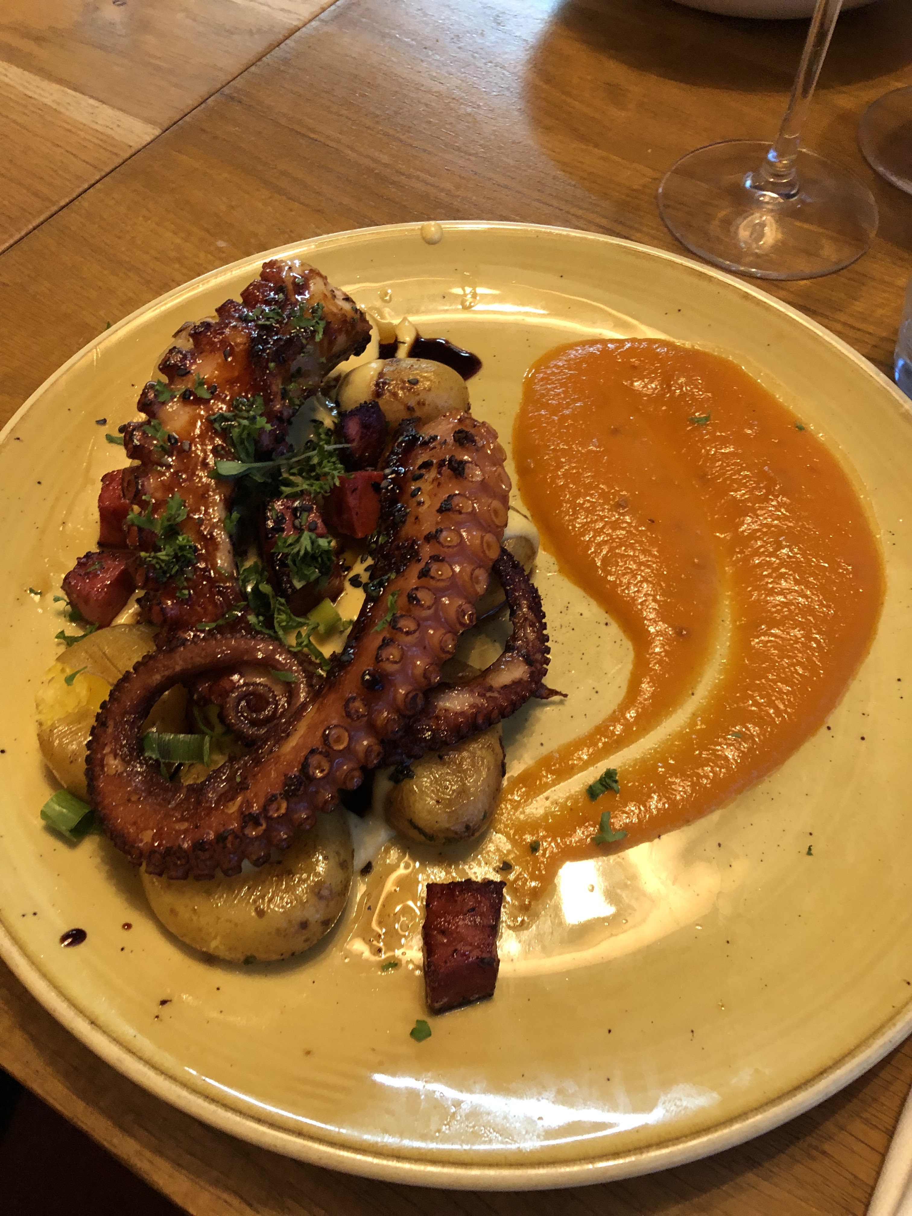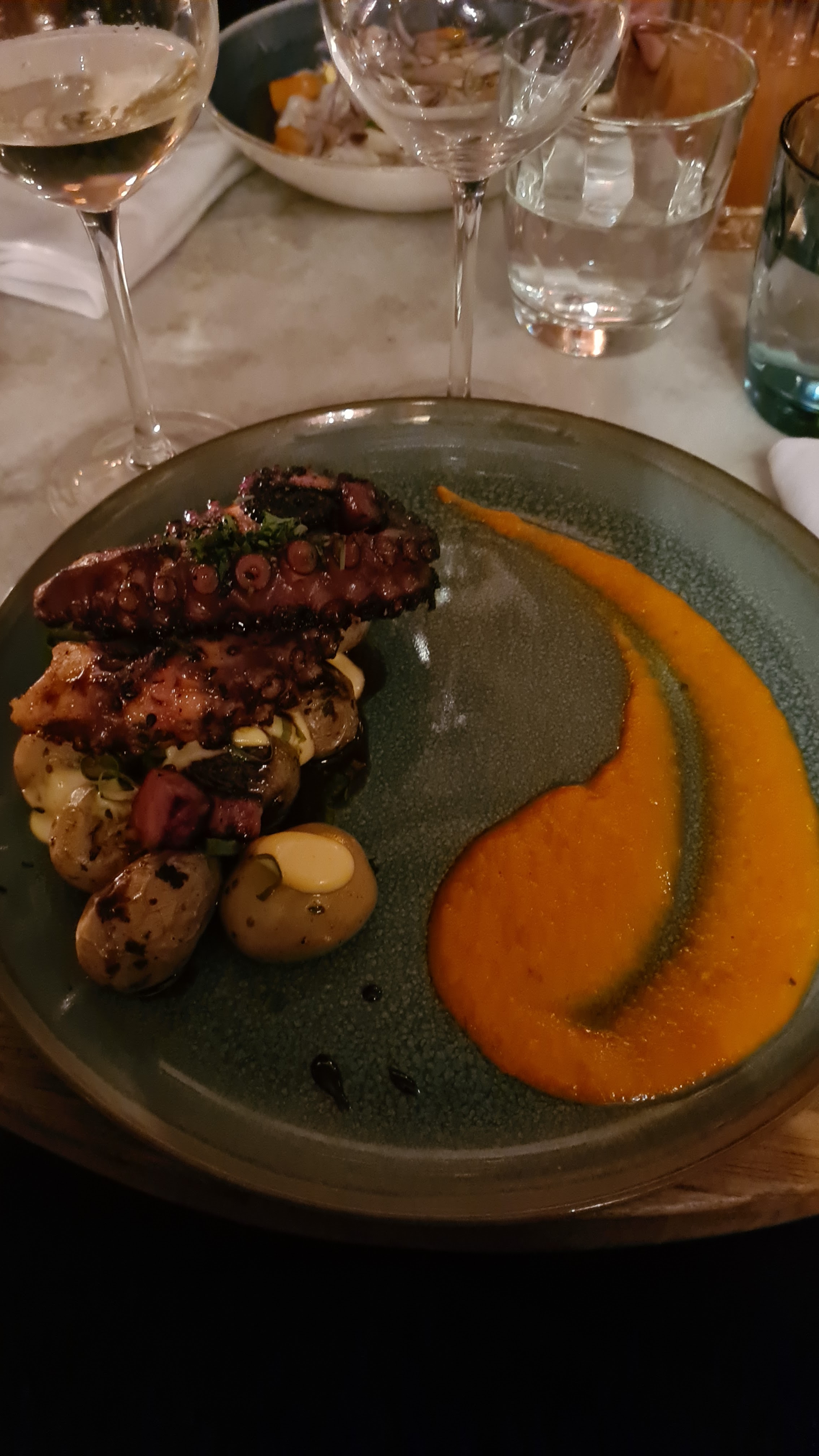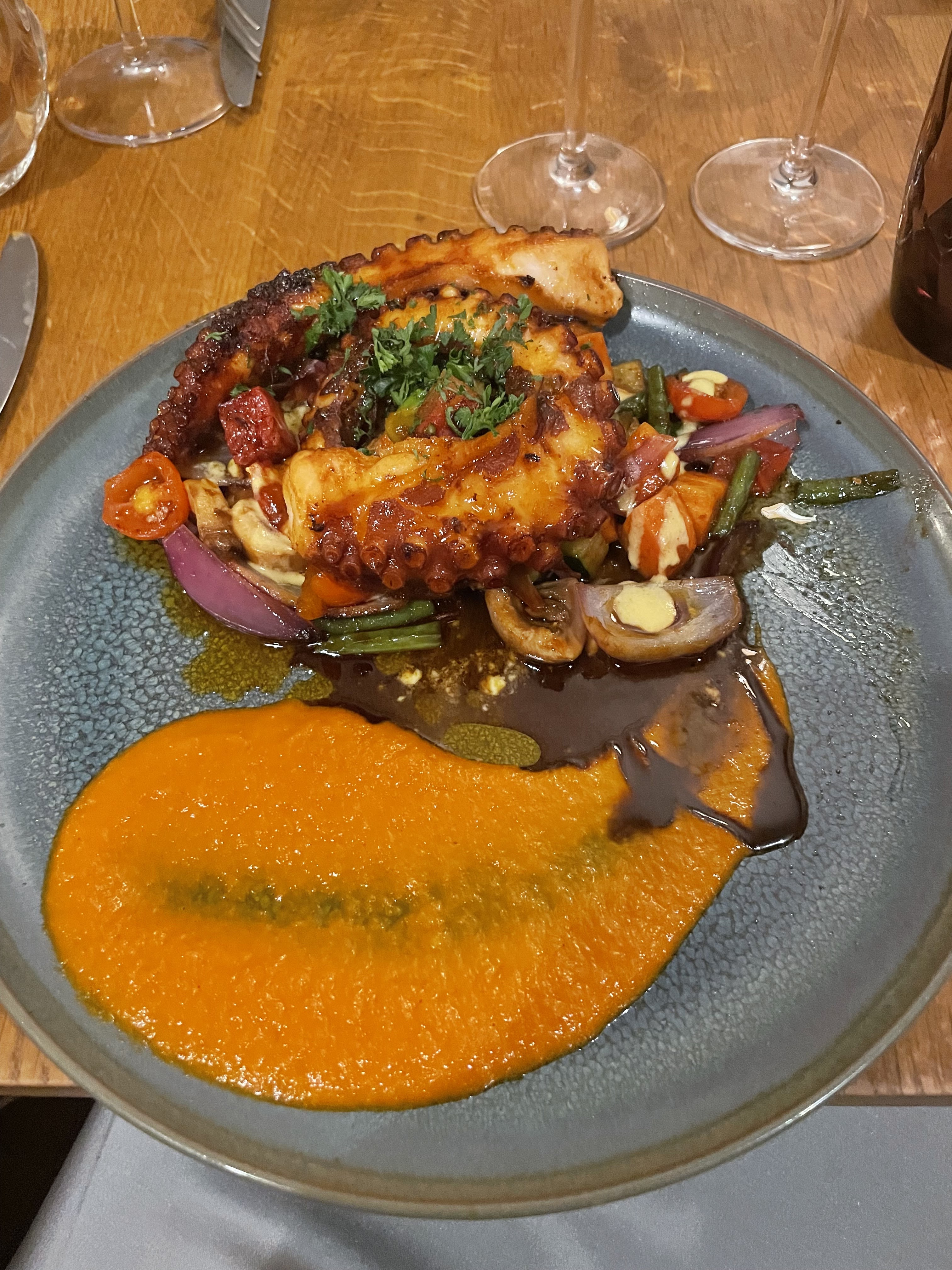 Très beau lieu, on plonge vraiment dans une atmosphère chaleureuse ! J'ai pris le poulpe, très bon quoi que un peu léger en garnitures. Restaurant assez cher quand même pour ce qui est des entrées et des desserts..
