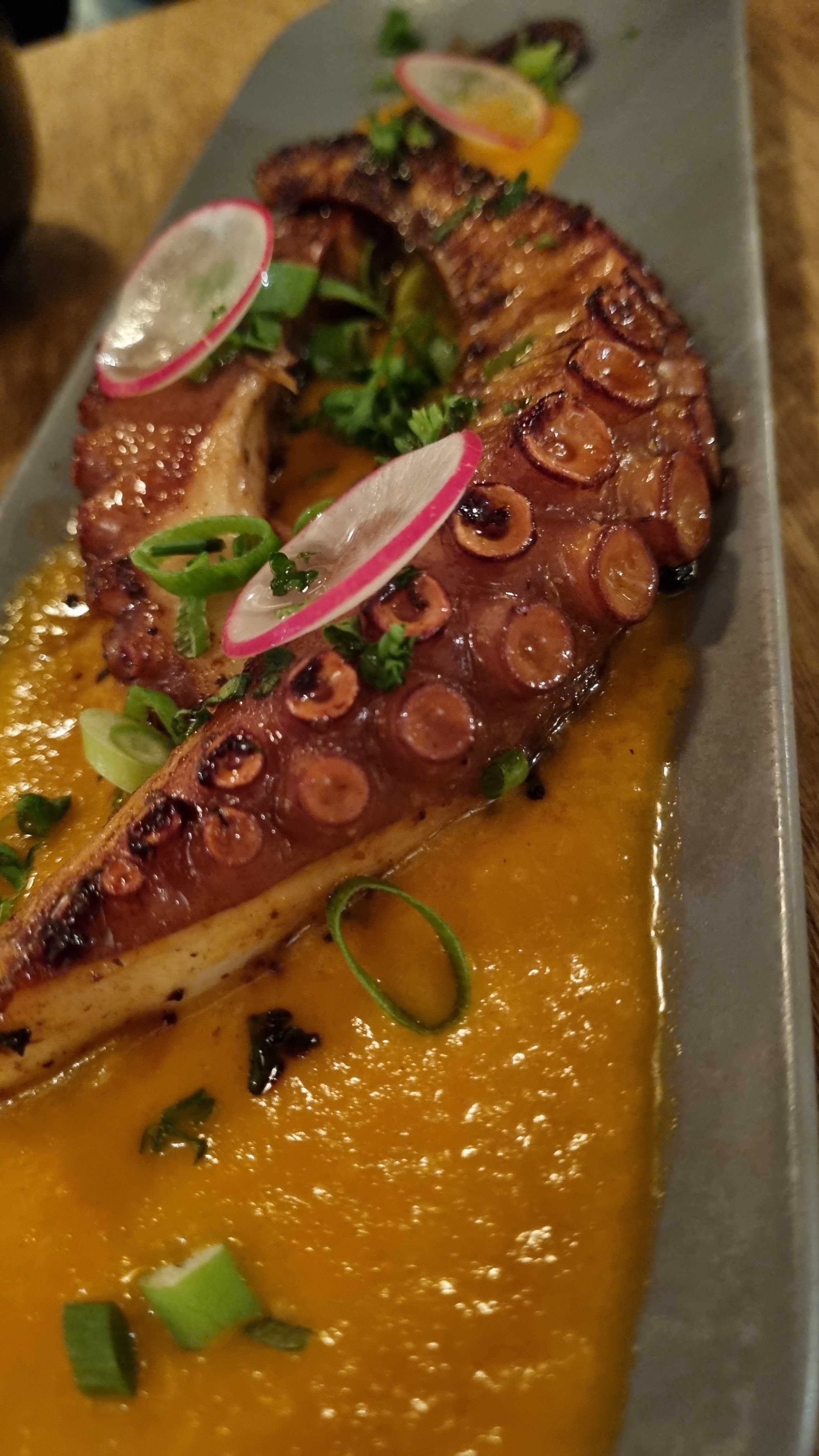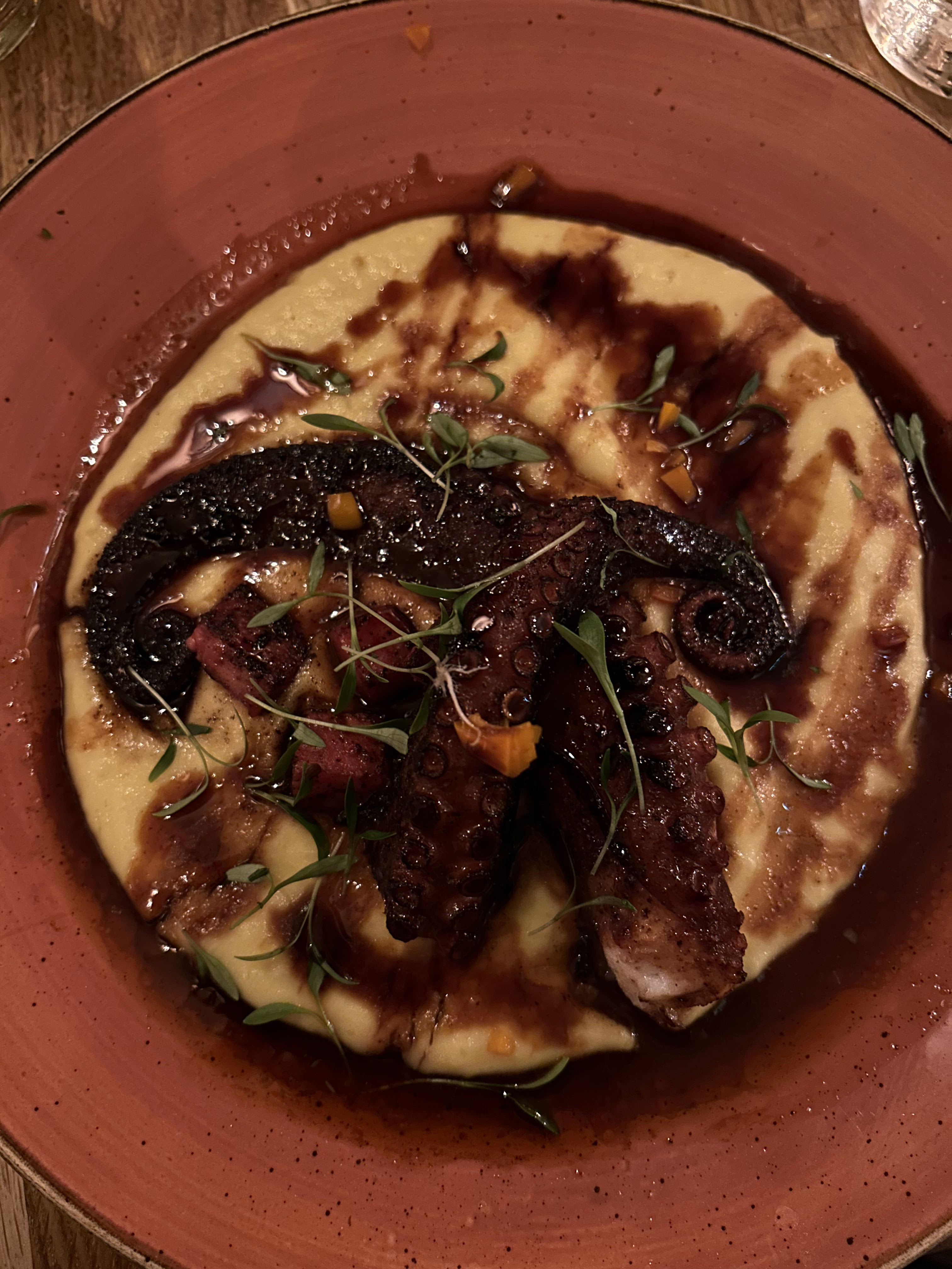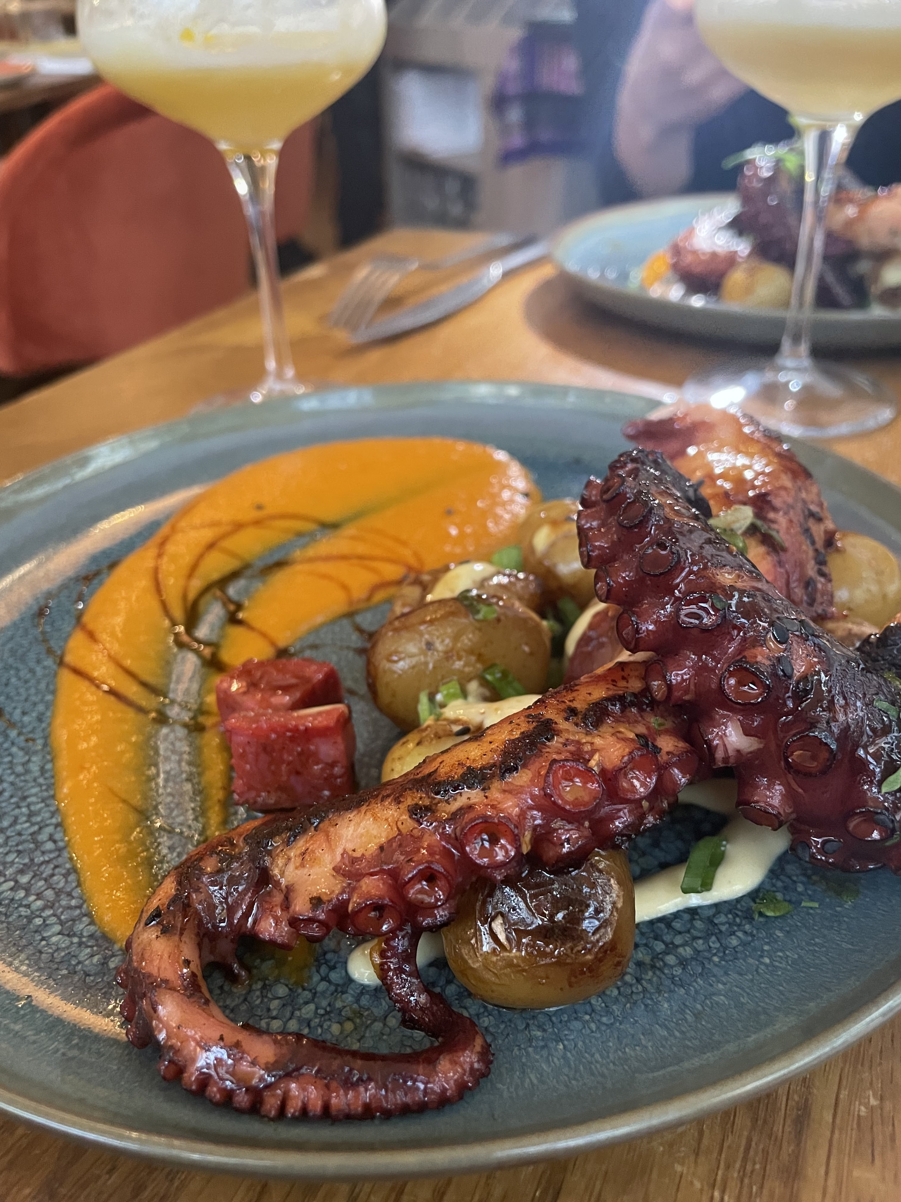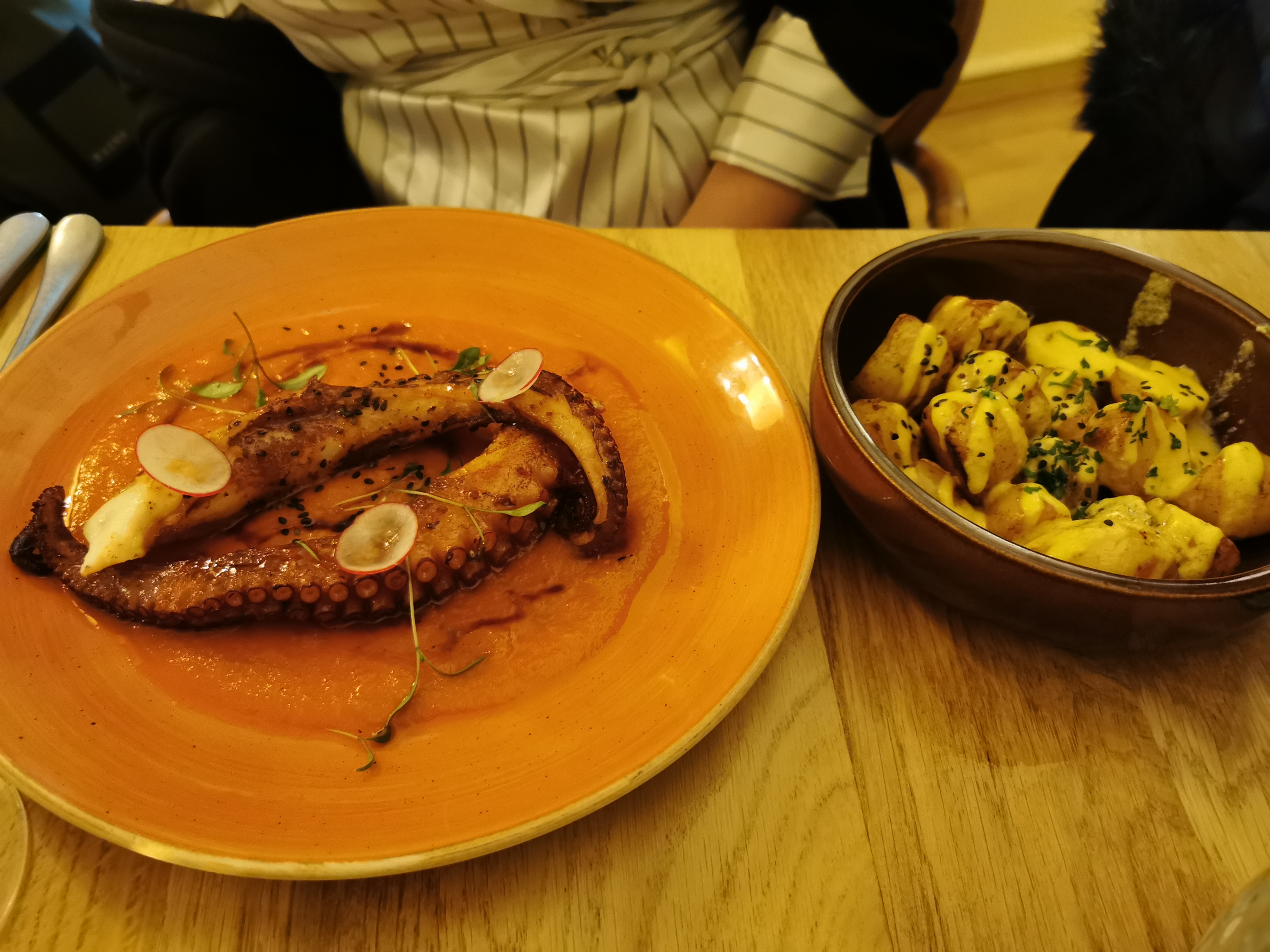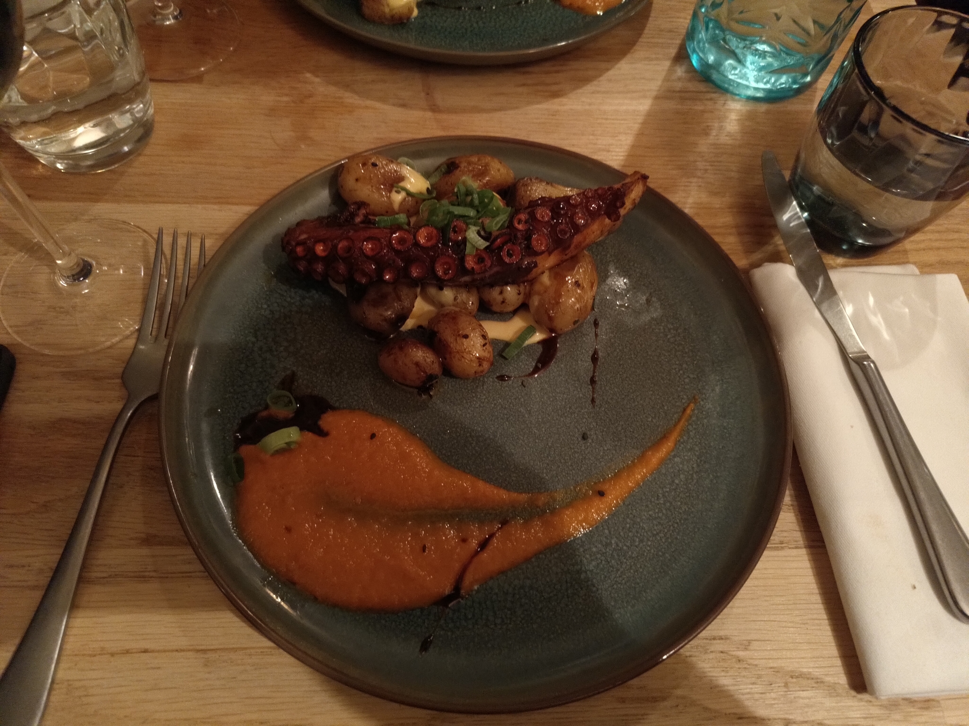 Très beau lieu, on plonge vraiment dans une atmosphère chaleureuse ! J'ai pris le poulpe, très bon quoi que un peu léger en garnitures. Restaurant assez cher quand même pour ce qui est des entrées et des desserts..