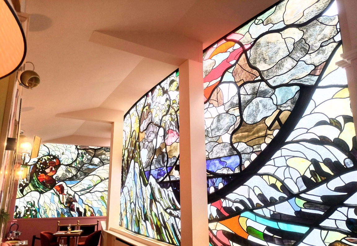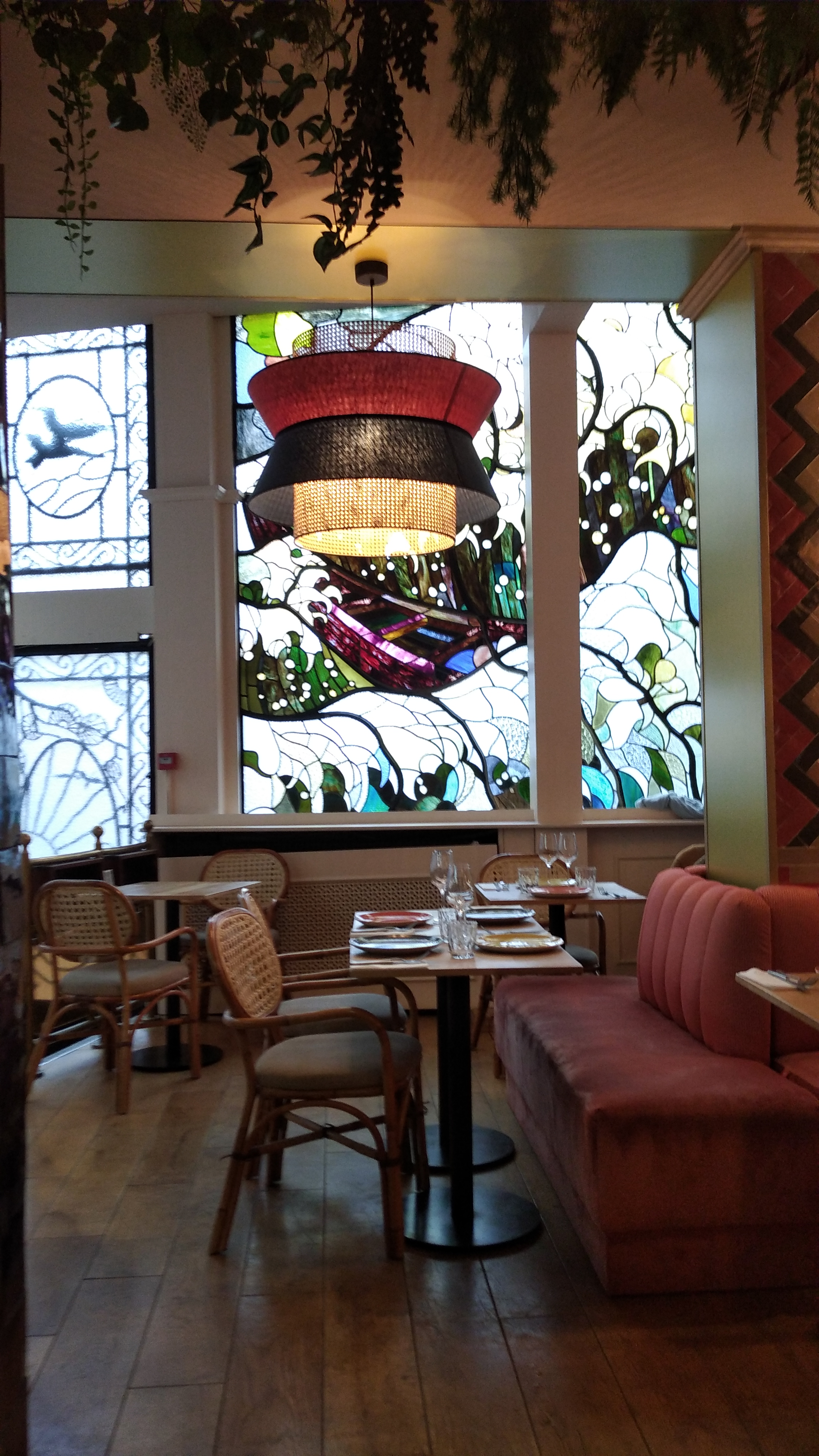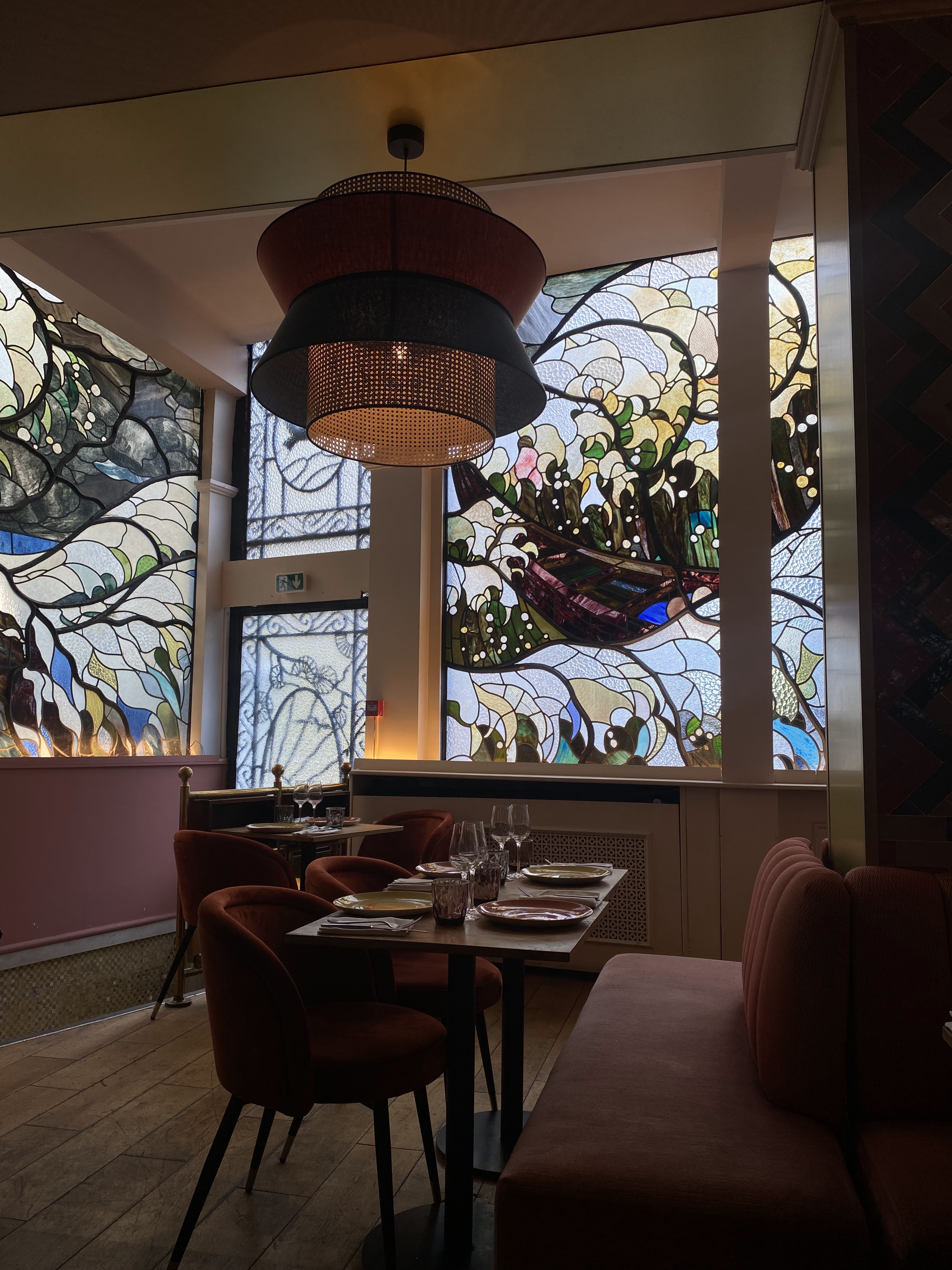 Nous étions face a des vitraux magnifiques, dans un coin tranquille du restaurant, les serveurs étaient très gentils, et les plats délicieux