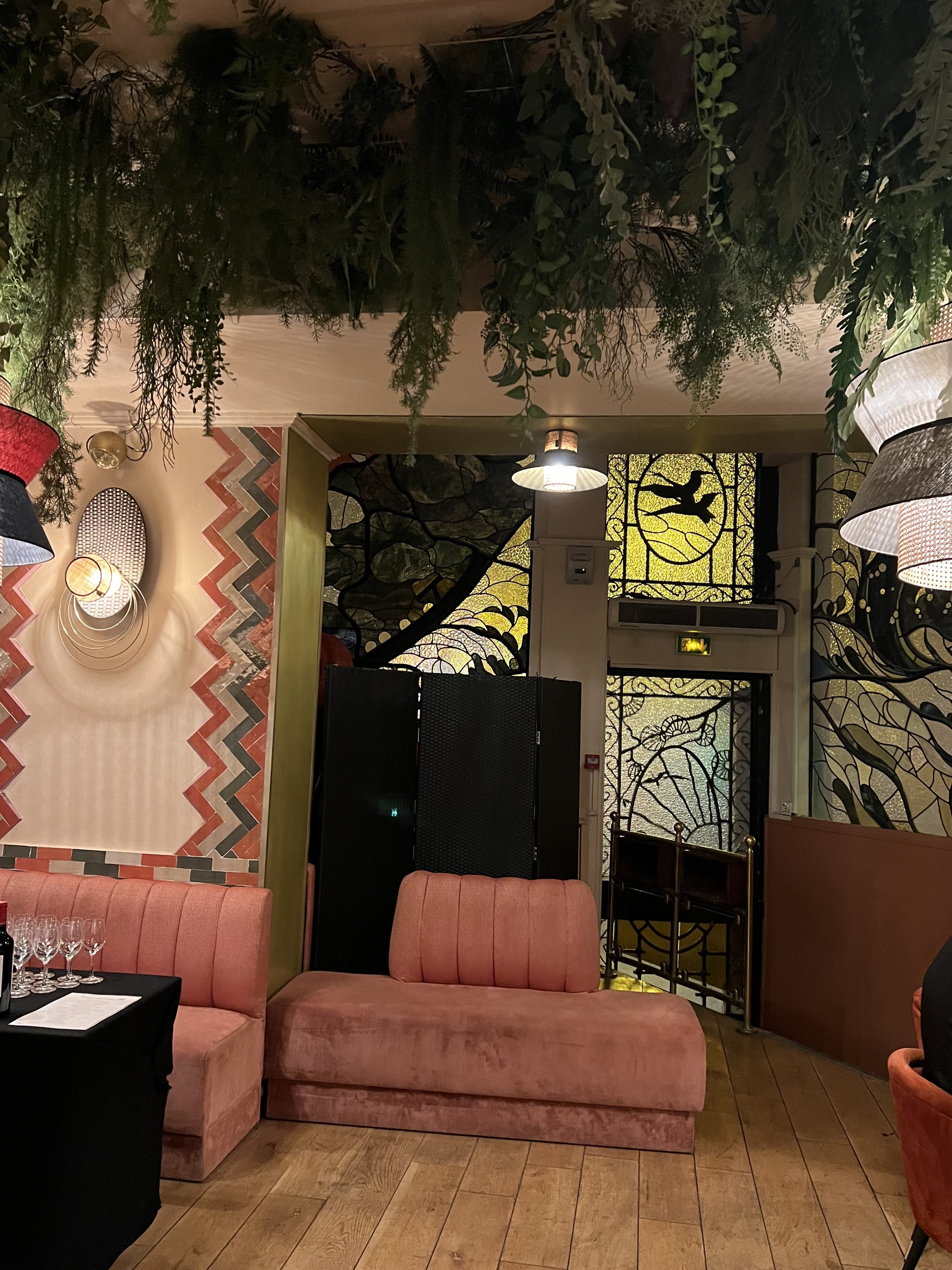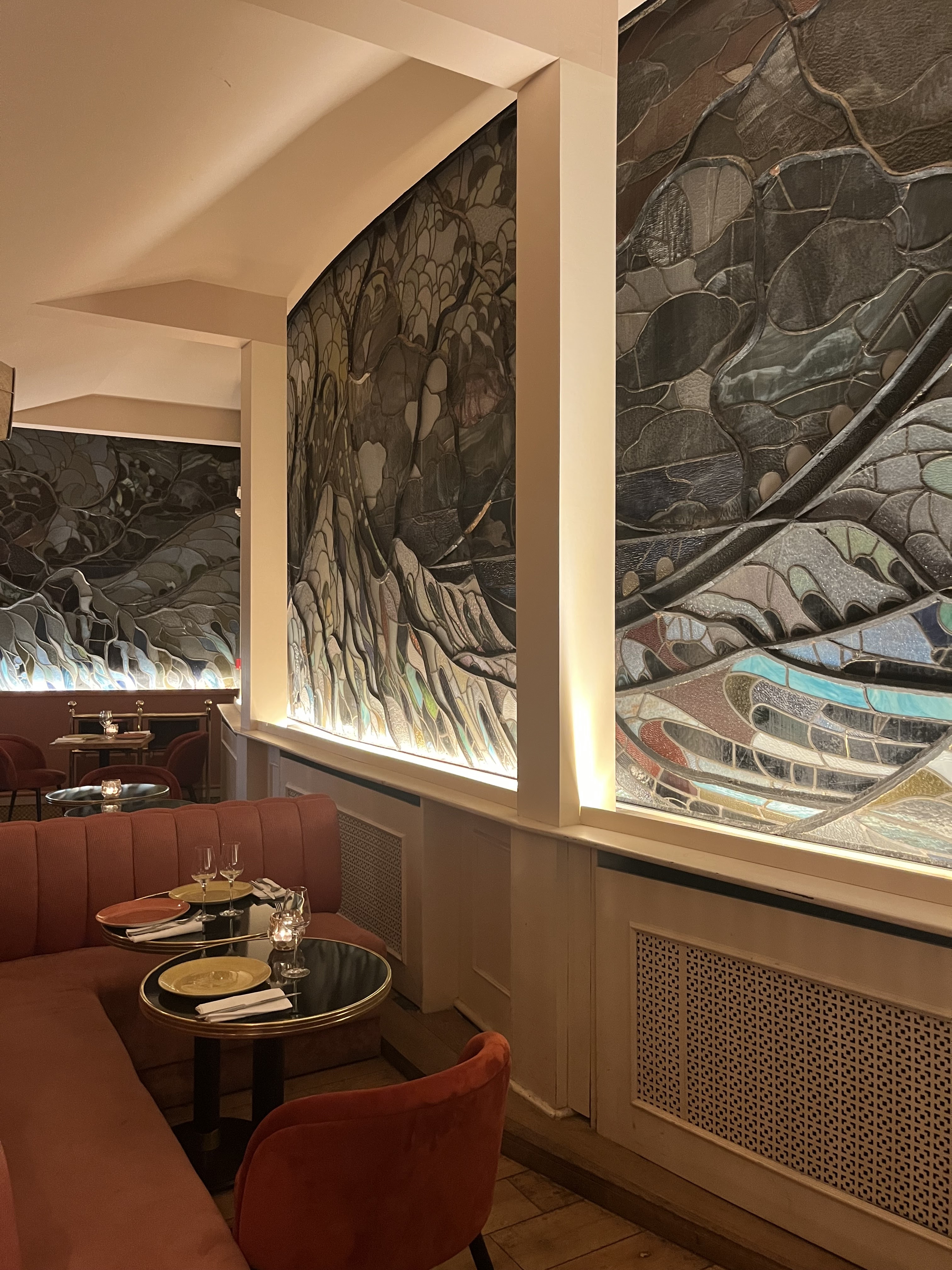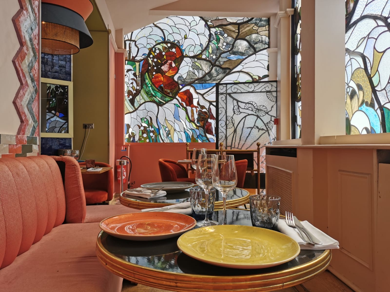 Nous étions face a des vitraux magnifiques, dans un coin tranquille du restaurant, les serveurs étaient très gentils, et les plats délicieux