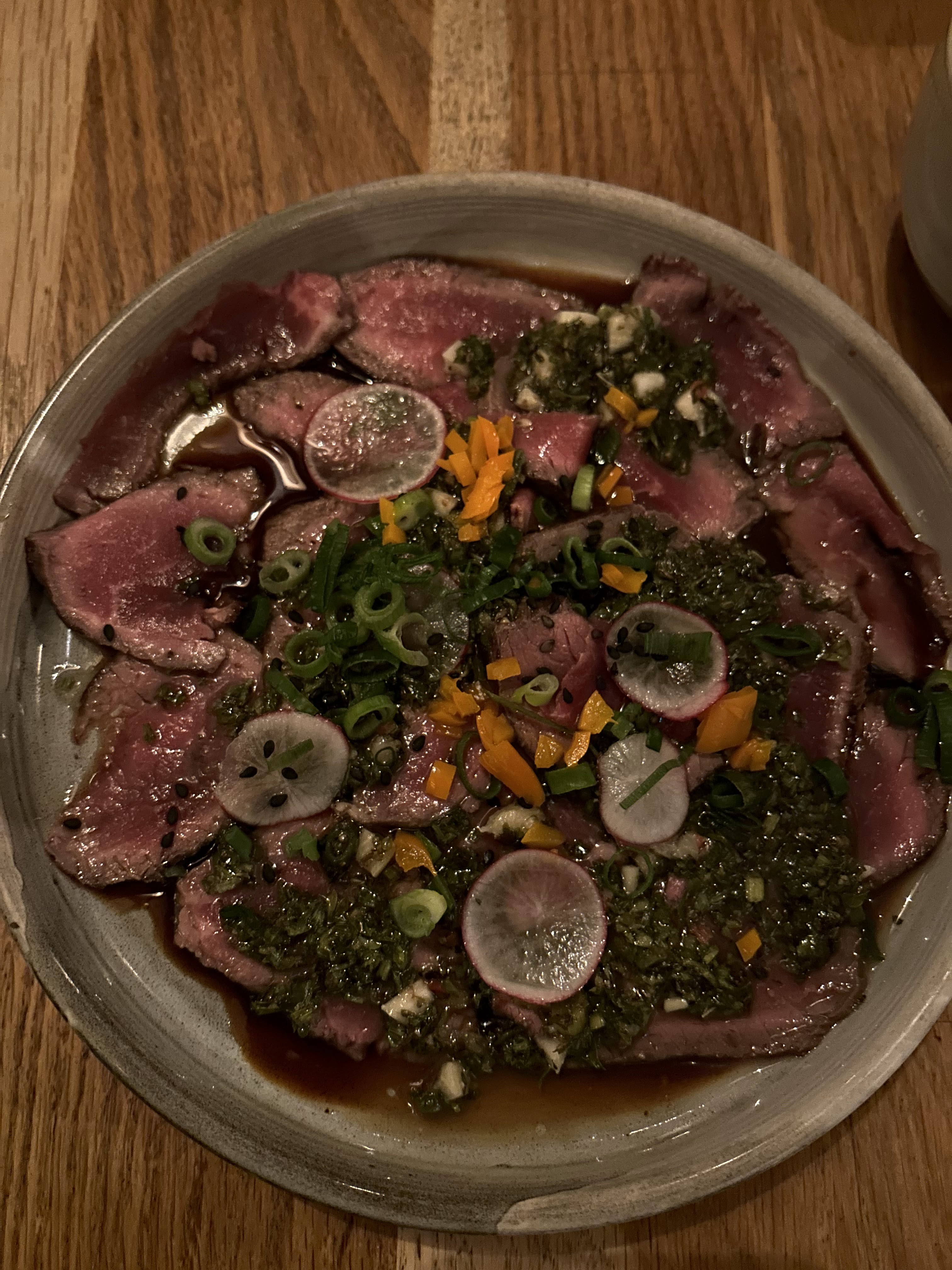 Le cadre est beau. Les plats sont bons mais pas incroyables, notamment au vu du prix. Nous n'avons en particulier pas trop aimé le morceau de bœuf choisi pour le tataki. Le service est sympathique pas très professionnel ni très efficace. Nous y étions un samedi et c'était très calme, alors nous aurions bien aimé avoir un peu plus d'animation.
