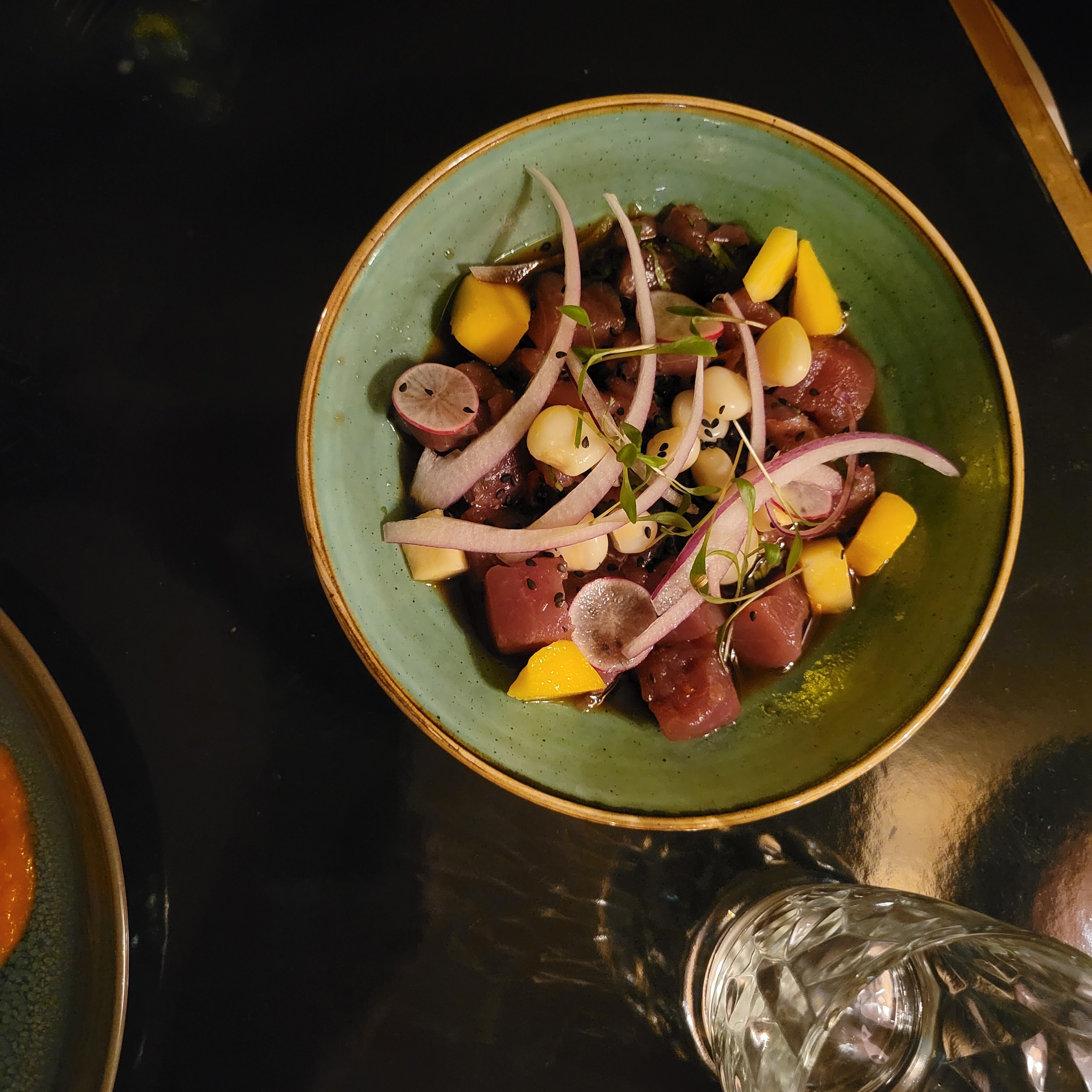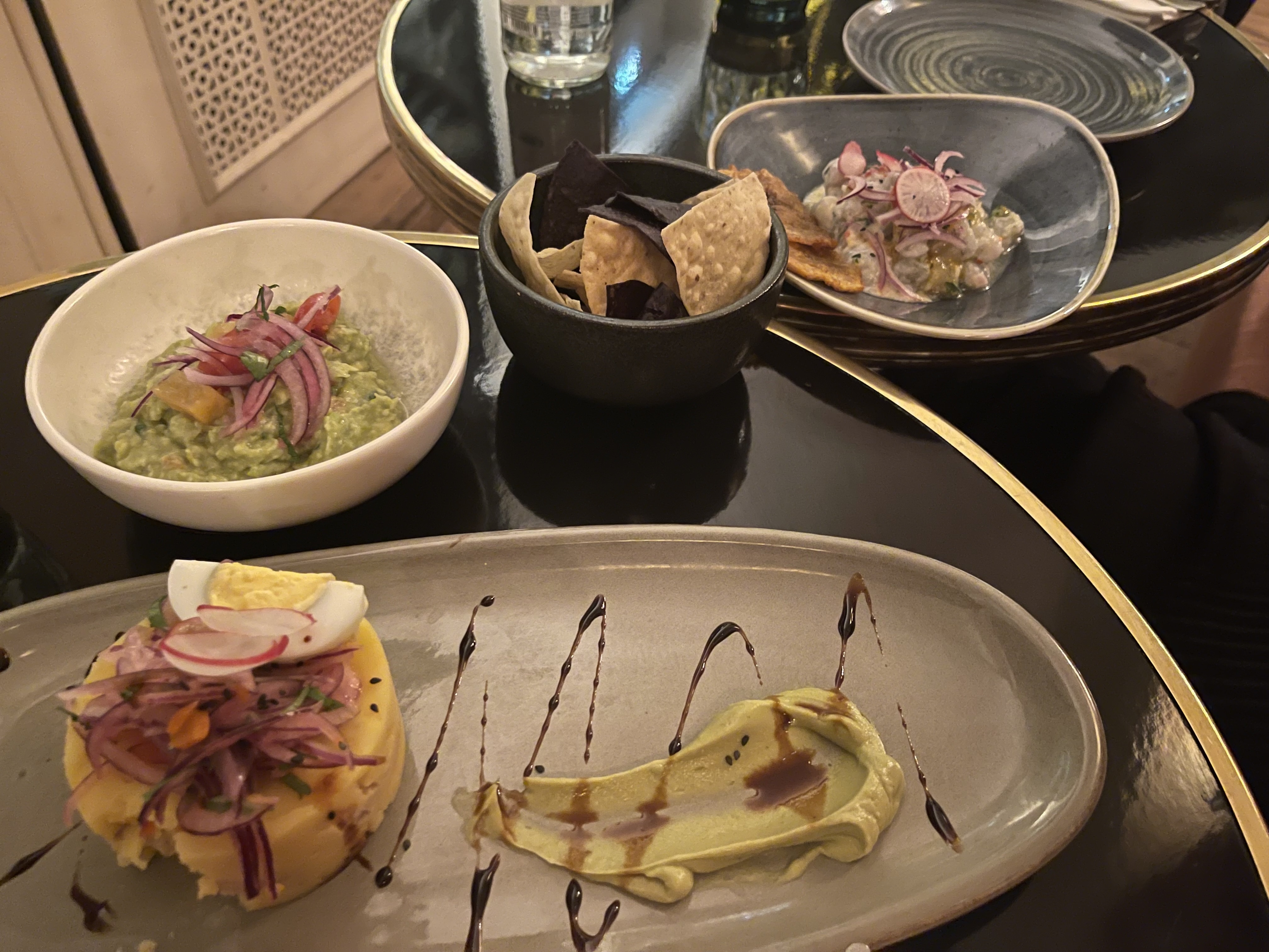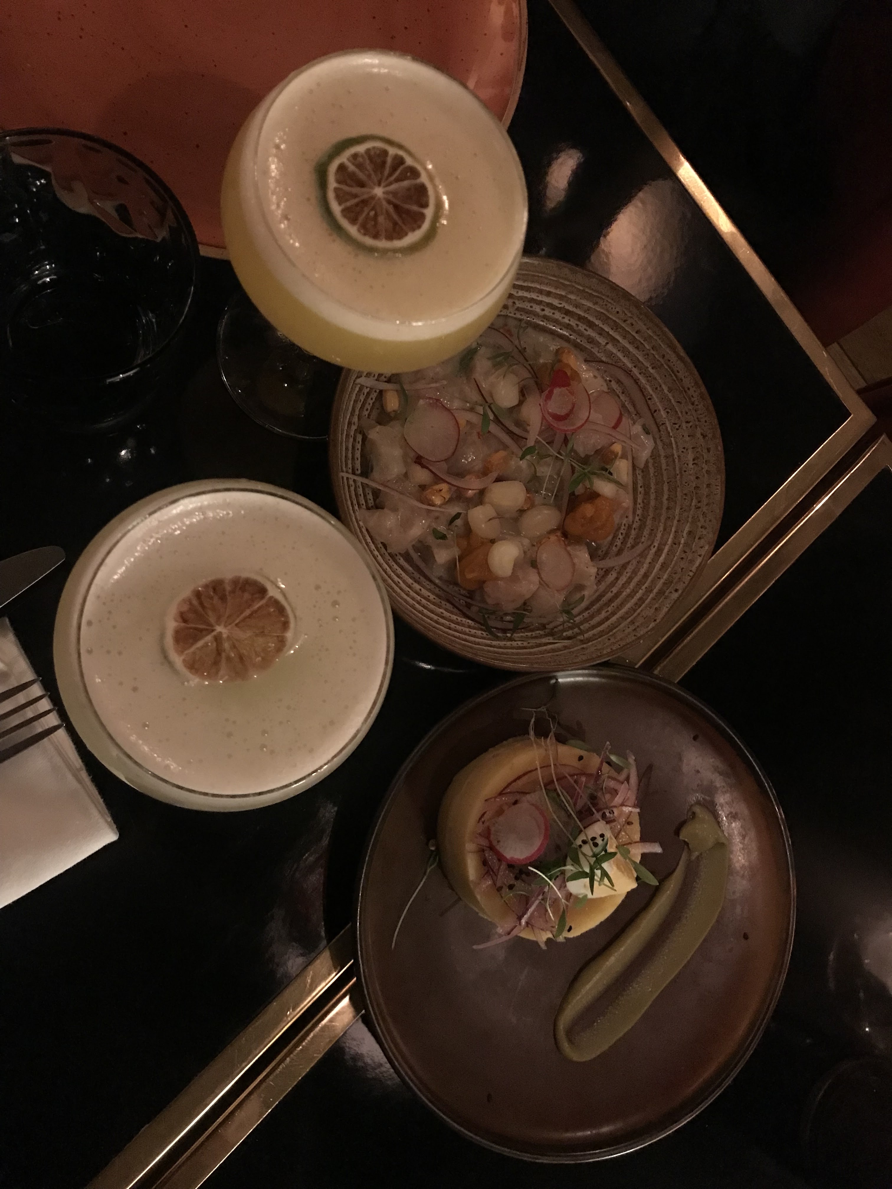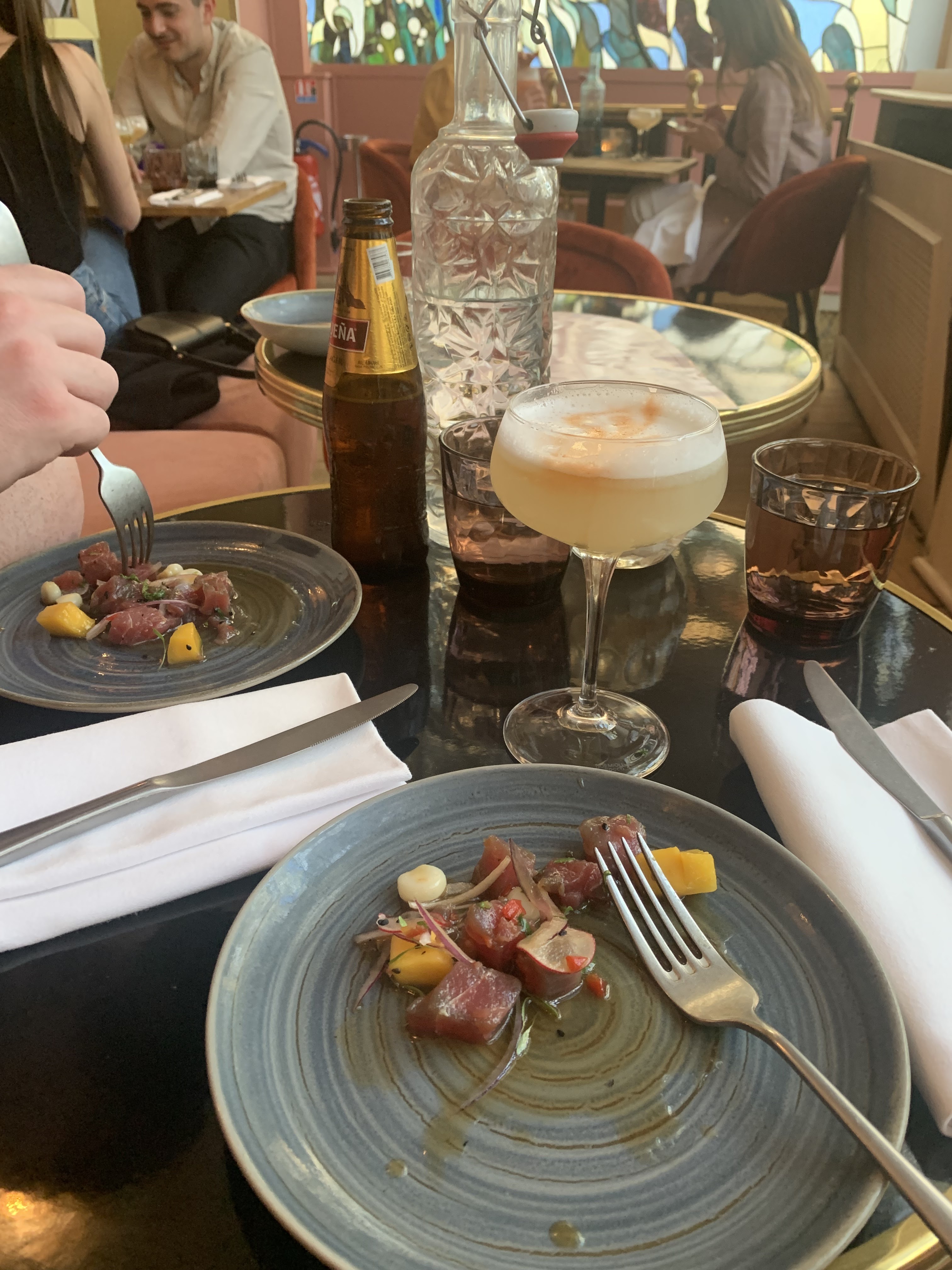 Nous sommes venus manger dans ce restaurant pour une occasion particulière. Déjà les cocktails étaient fantastiques et justifiaient leur tarif. Le negroni au mezcal infusé au café était un moment de dégustation intense. Nous avons enchaîné avec un tiraditos thon rouge dont la sauce était un délice gustatif. Chaque bouchée justifiait une extase culinaire. Ensuite le ceviche de daurade était très bon . Pour finir l'ambiance art déco avec les vitraux Hokusai, transporte dans une autre époque. A conseiller, super resto.