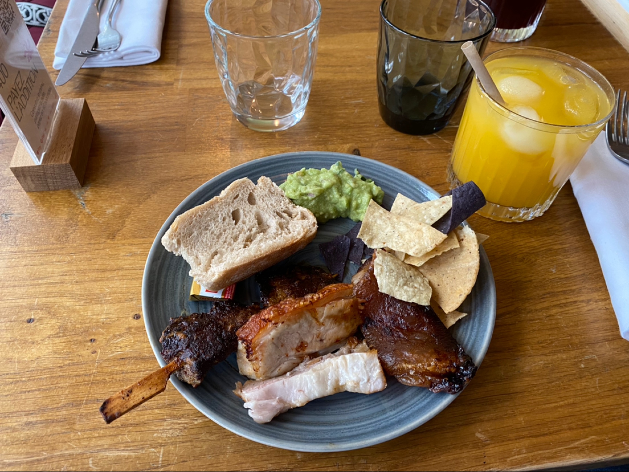 Restaurant bristronomique sympathique. Très bon guacamole La poitrine de porc était tendre et croustillant mais je m'attendais a un plat un peu plus épicé.