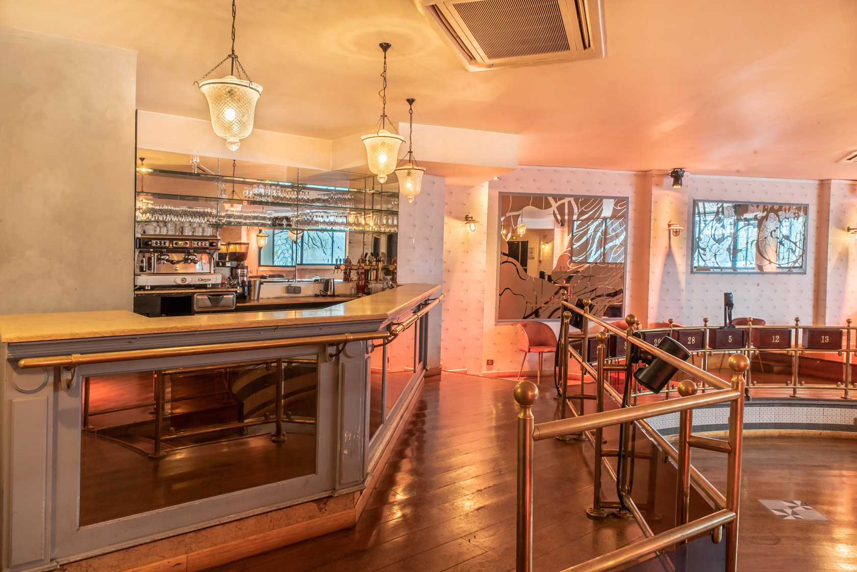 Lieu très original, un ancien cercle de jeu sulfureux, dont on a conservé l'ambiance des années 30. Cuisine sympathique et savoureuse et service vraiment adorable: notre serveuse connaît bien les plats et la carte des vins et nous a donné de très bons conseils pour choisir. En revanche, le gérant est très désagréable : refus de nous appliquer l'happy hour alors que nous étions 4 dans la salle. Au moment de payer, après 10 min d'attente à table, on a décidé de se lever pour aller régler au comptoir car il y avait vraiment trop de bruit (chanteuse qui met l'ambiance mais musique beaucoup trop forte). Là on a encore attendu debout pendant plus de 10 min pour payer . En venant vers nous, le gérant n'a pas eu un seul mot d'excuse, il a juste levé les yeux au ciel et a poursuivi en engueulant un serveur devant nous! Vu le montant de l'addition, on aurait aimé un peu plus de considération de sa part. Heureusement que les serveuses étaient sympa car elles ont bien remarqué qu'on patientait depuis vraiment trop longtemps.
